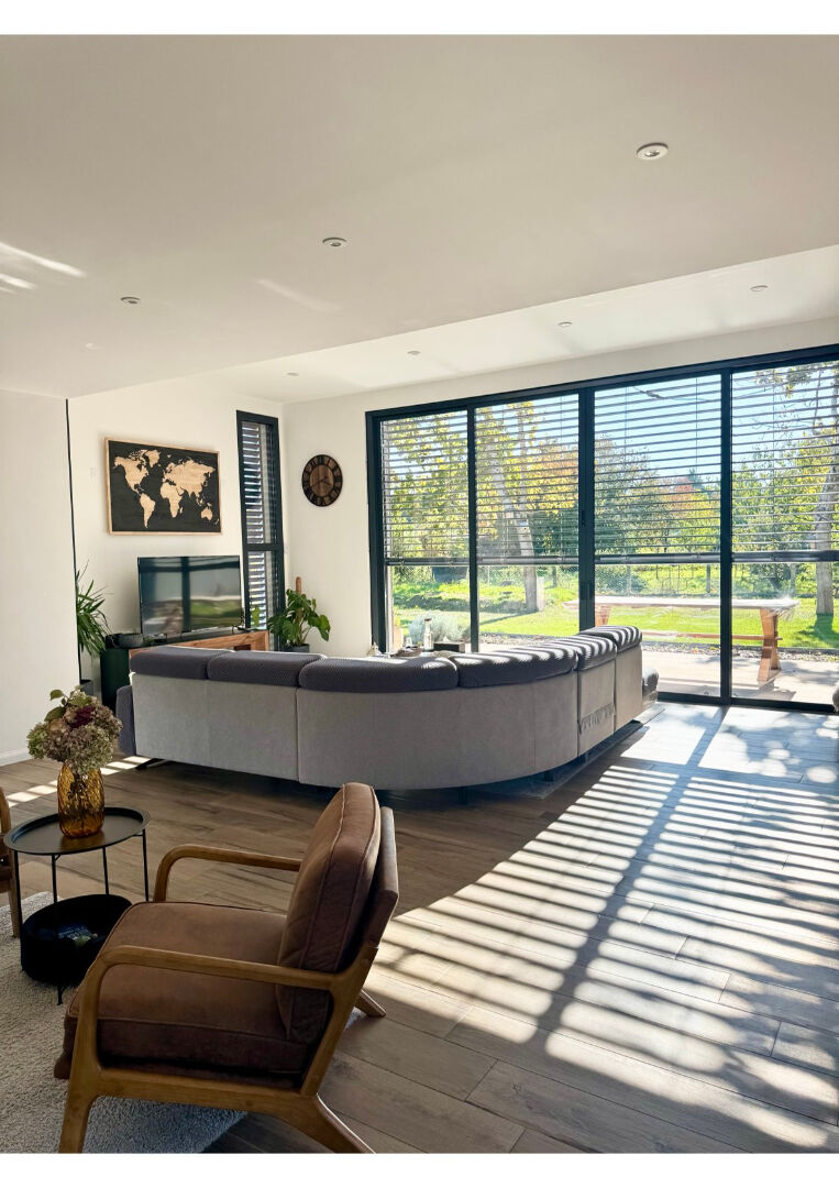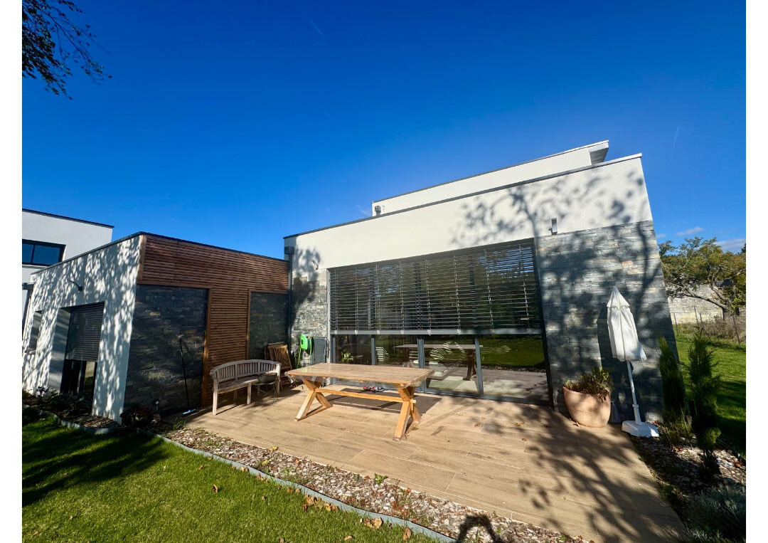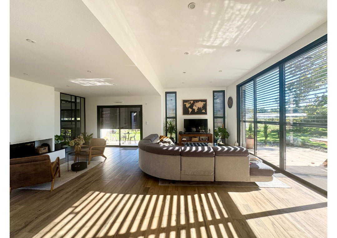 Située dans la commune prisée de Saint-Barthélemy-d'Anjou, à seulement 10 minutes en voiture du centre-ville d'Angers, venez découvrir cette magnifique maison contemporaine de 2024 d'une surface de 208 m², édifiée sur une parcelle arborée d'environ 900 m². Cette belle maison offre des volumes spacieux et lumineux, avec un vaste salon-séjour de plus de 50 m² entouré de grandes baies vitrées, ouvert sur le jardin paysagé et une grande terrasse en bois. Au rez-de-chaussée, une suite parentale comprend un dressing, une salle d'eau privative, ainsi qu'un accès direct au jardin par une baie vitrée et un second accès donnant sur un patio. Une grande cuisine aménagée et équipée de plus de 20 m², une buanderie/arrière-cuisine, un cellier et un WC complètent ce niveau. A l'étage, vous trouverez trois grandes chambres d'environ 15 m² chacune, une salle d'eau et un WC séparé. Un garage ainsi que cinq places de stationnement privatives à l'avant de la maison permettent de se garer en toute tranquillité. Le jardin arboré complète ce bien d'exception. Système de chauffage : pompe à chaleur avec plancher chauffant au rez-de-chaussée et à l'étage. Équipements : 12 panneaux solaires permettant de compenser une partie des consommations annuelles. Taxe foncière : environ 2 000 euros DPE : A / A Pour plus d'informations ou organiser une visite, vous pouvez me joindre au o6 84 89 04 24 Prix net vendeur : 650 000 euros Honoraires à la charge de l'acquéreur : 26 000 euros TTC Les informations sur les risques auxquels ce bien est exposé sont disponibles sur le site Géorisques : www.georisques.gouv.fr (4.00 % honoraires TTC à la charge de l'acquéreur.)