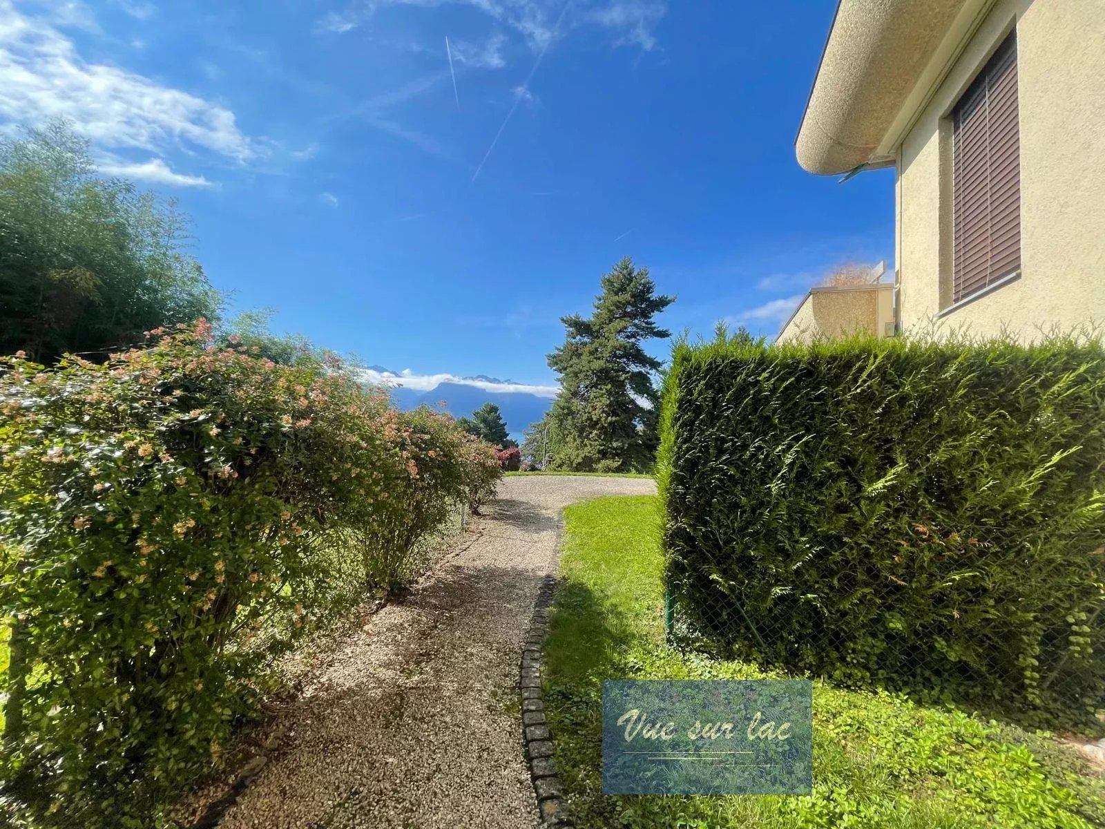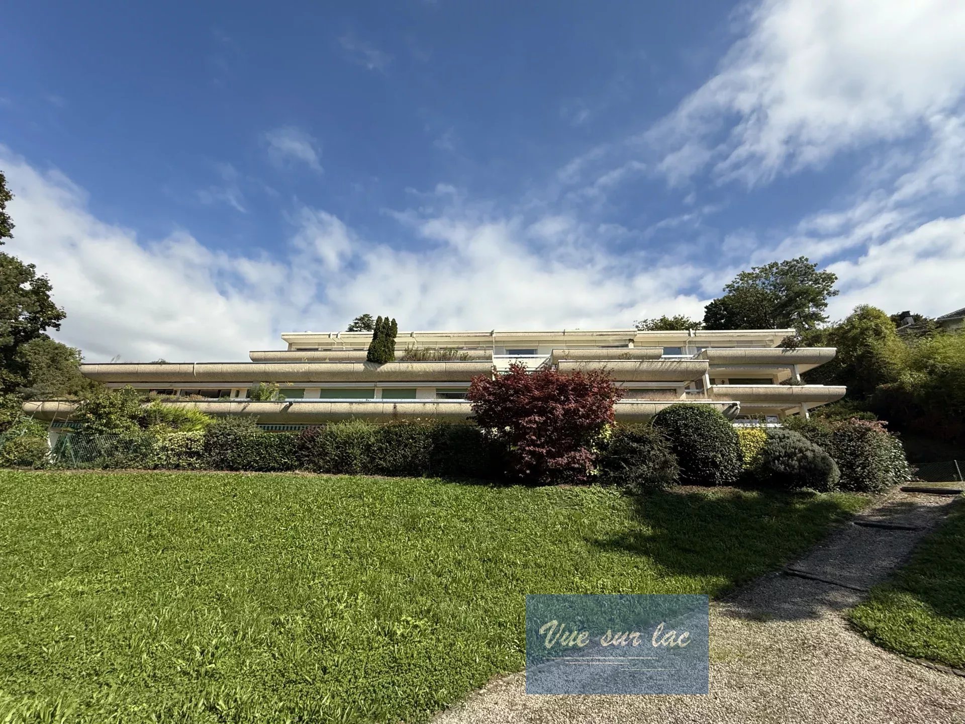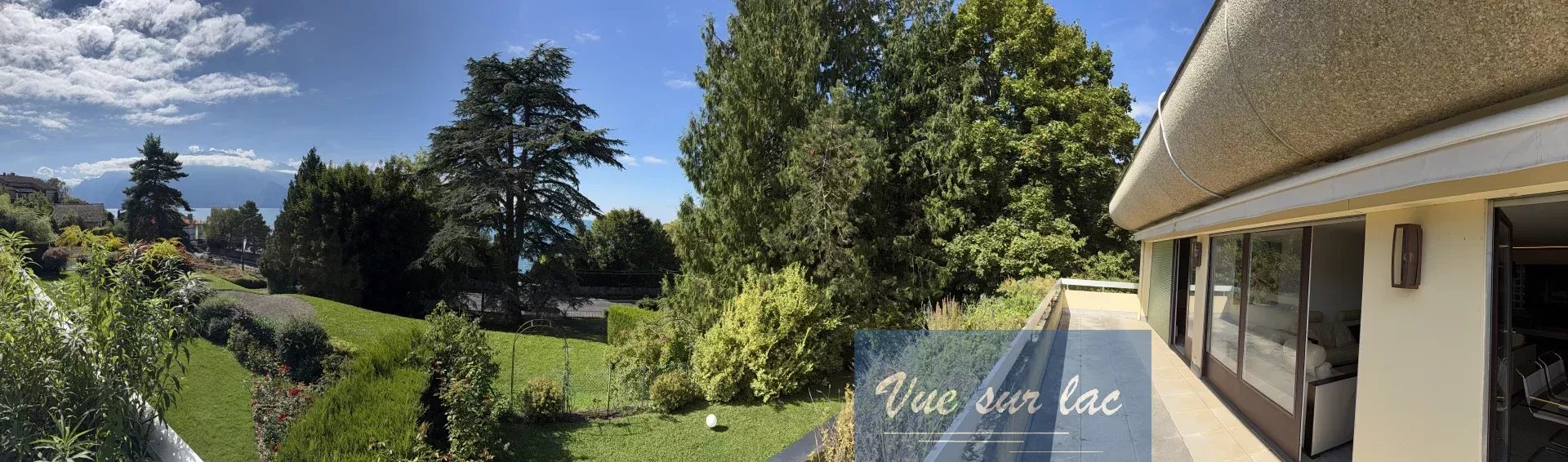 Un beau et grand jardin de près de 4'000m2 procure un cadre de verdure très apaisant et élégant à la copropriété ainsi qu'un accès piétons direct vers bord du lac, au Sud.