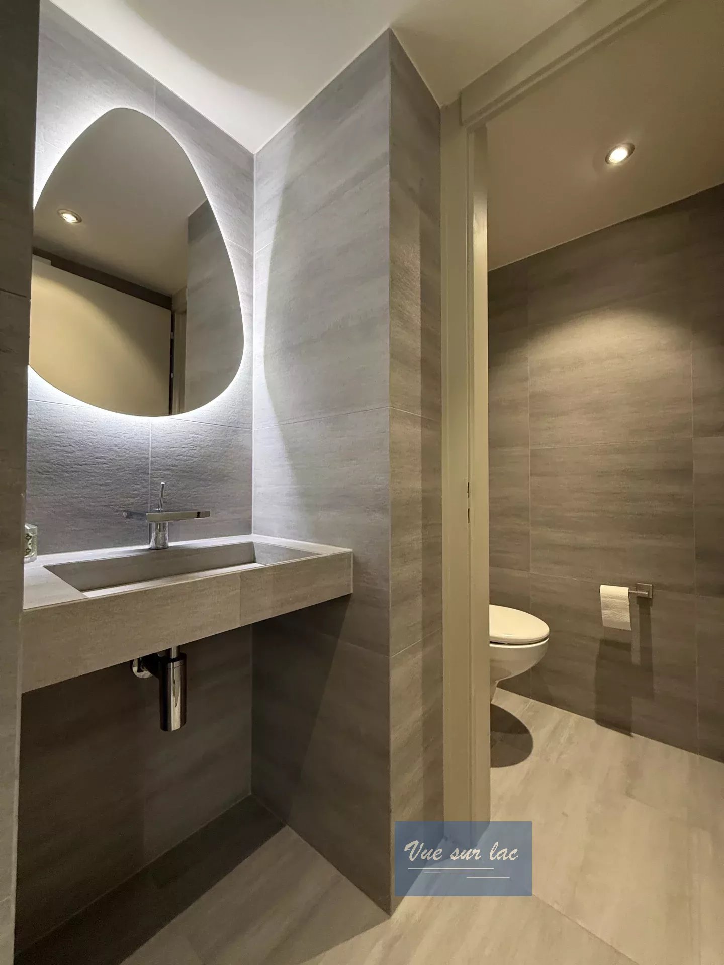 - L'entrée propose un espace de rangement ainsi qu'un élégant coin lavabo et un WC séparés.