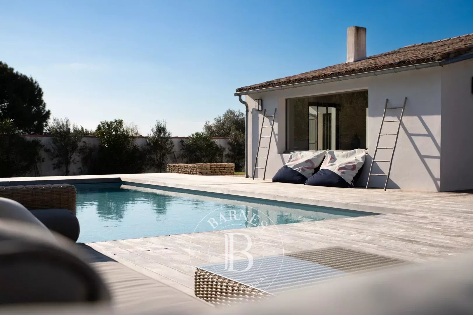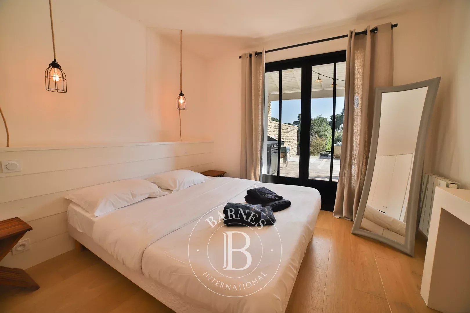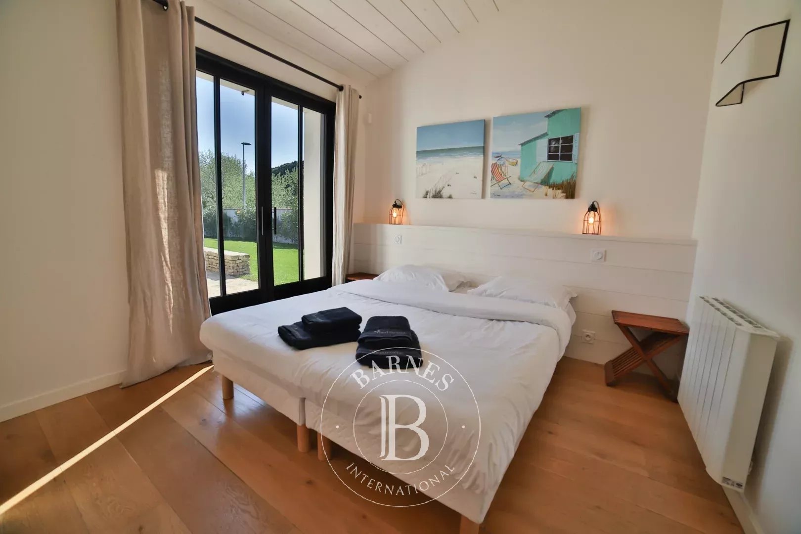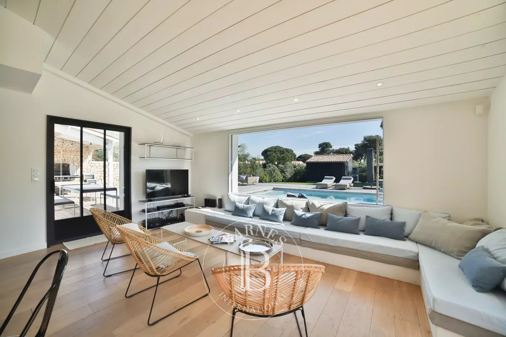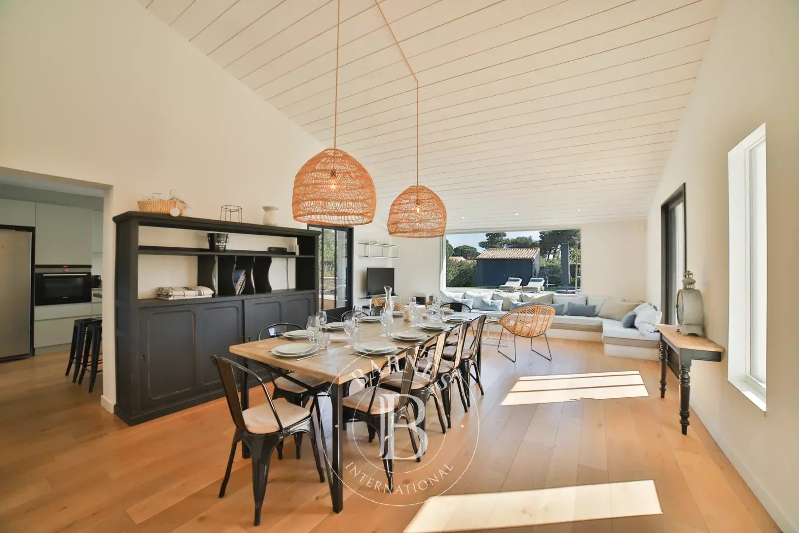 Cette maison possède un spacieux salon / salle à manger très lumineux grâce à ses grandes baies vitrées qui donnent, plein sud, sur la piscine. Sa terrasse est idéale aussi bien pour les petits-déjeuners au soleil que les apéros après la plage.