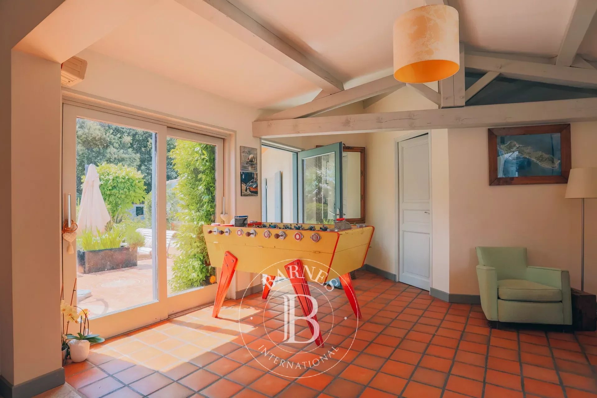 Vous pourrez également retrouver les touches artistiques tant à l’extérieur de la villa Foulquier avec ses grandes allées arborées et fleuries, sa piscine en mosaïque, qu’à l’intérieur avec son sol en tomette dans le grand salon salle à manger. De plus, avec ses 9 chambres, dont 3 suites spacieuses allant de 30m² à 70m², cette villa peut accueillir confortablement les grandes familles ou les groupes d'amis.