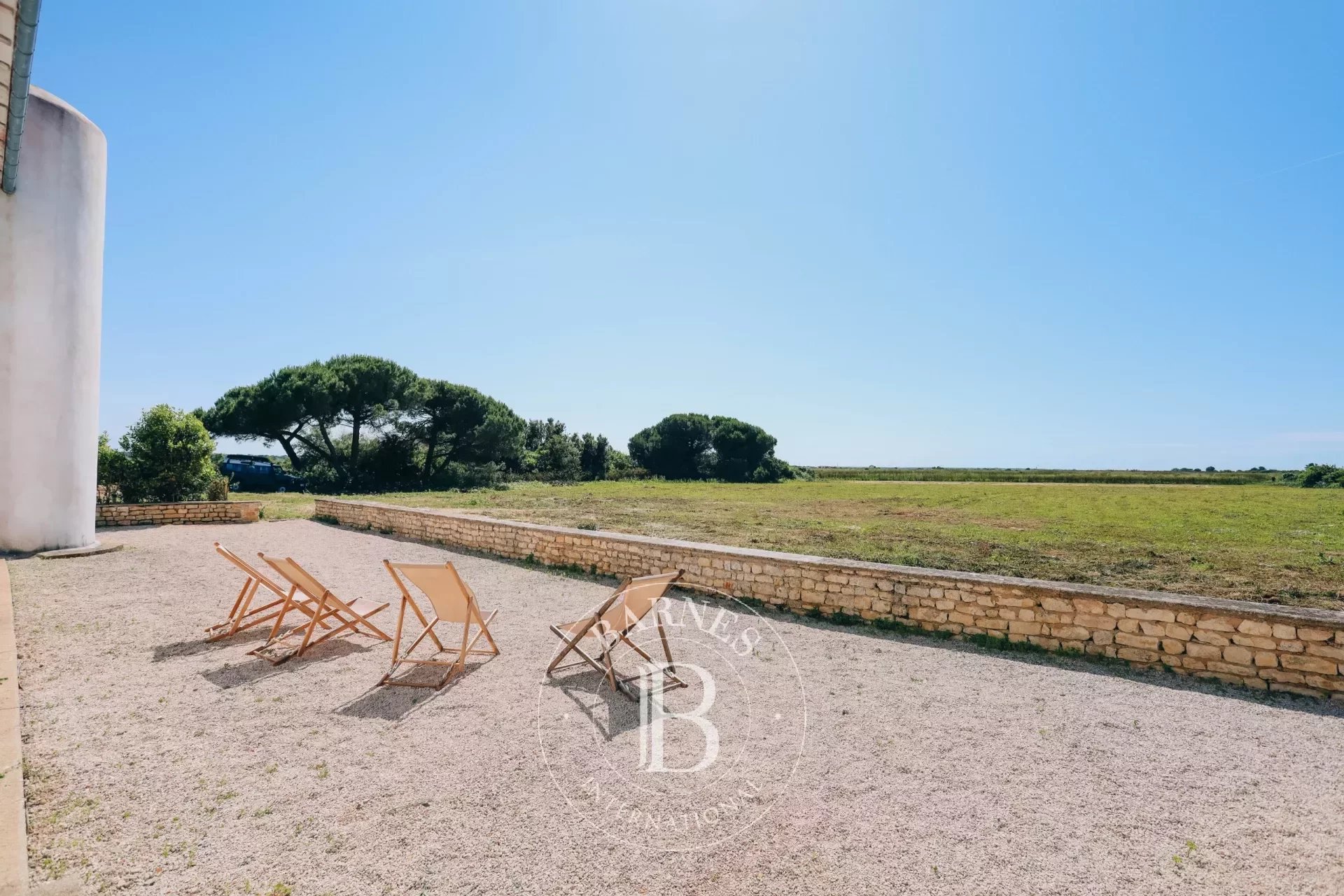Le Domaine des Tours est situé à proximité des marais salants et des prairies, sans voisins immédiats et le port de Loix à seulement 300 mètres. Il y a une piste cyclable très pratique située juste devant la maison. Les clients peuvent profiter de la promenade directement de la maison dans la campagne et explorer les plages voisines.