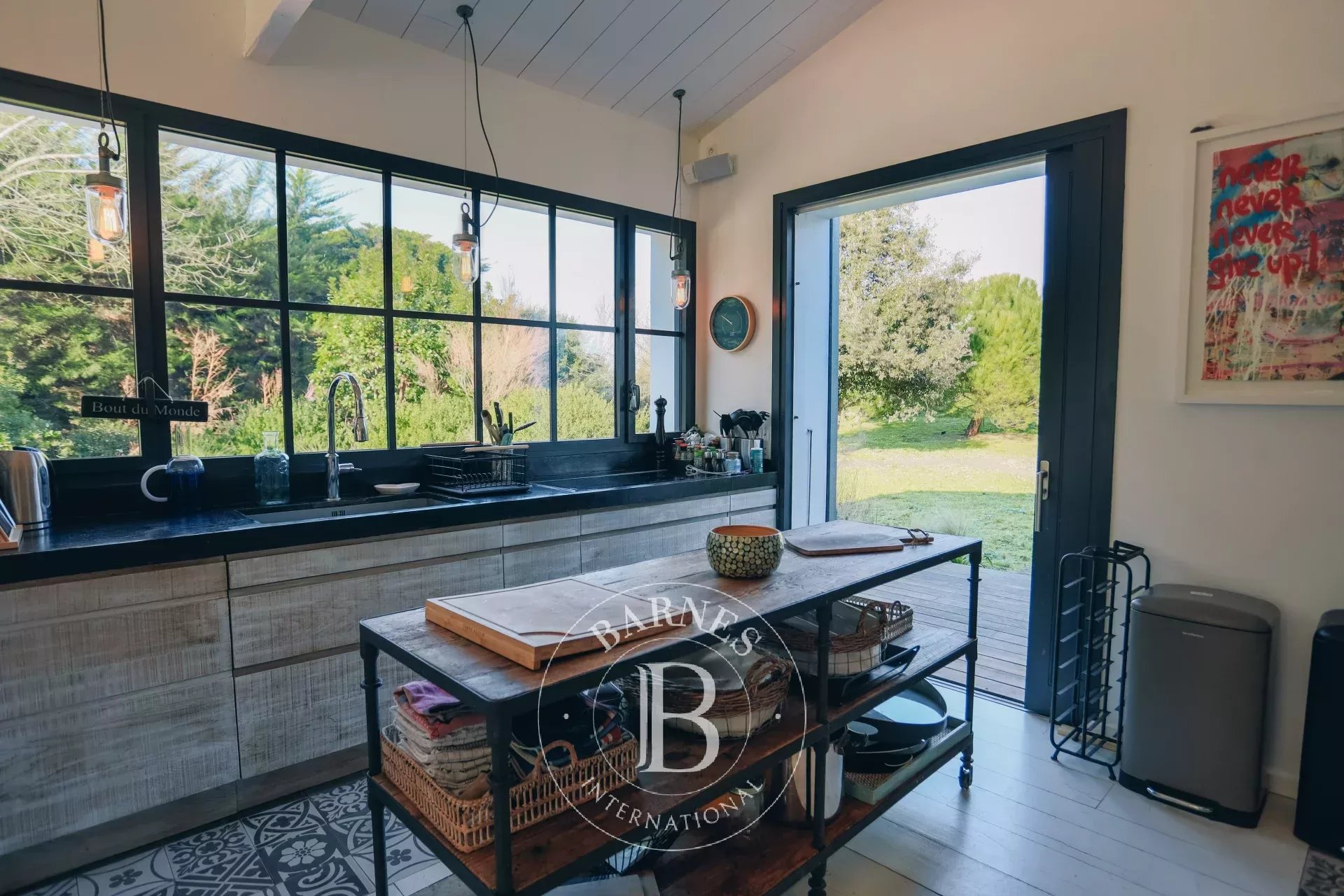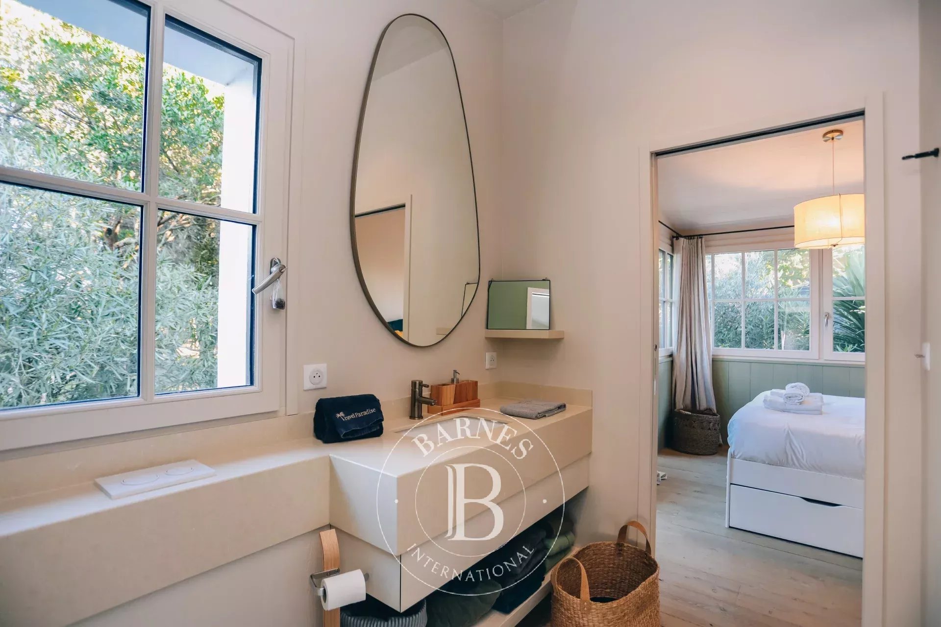 Dès votre arrivée, vous serez séduit par ses 8 chambres spacieuses, permettant d’accueillir jusqu’à 18 personnes. La villa se compose de multiples espaces de vie, incluant une maison principale, une annexe, une dépendance et un studio dédié au personnel de service si besoin. Trois cuisines entièrement équipées, dont une cuisine d’été avec un espace repas extérieur, vous permettront de partager des moments conviviaux en toute liberté.