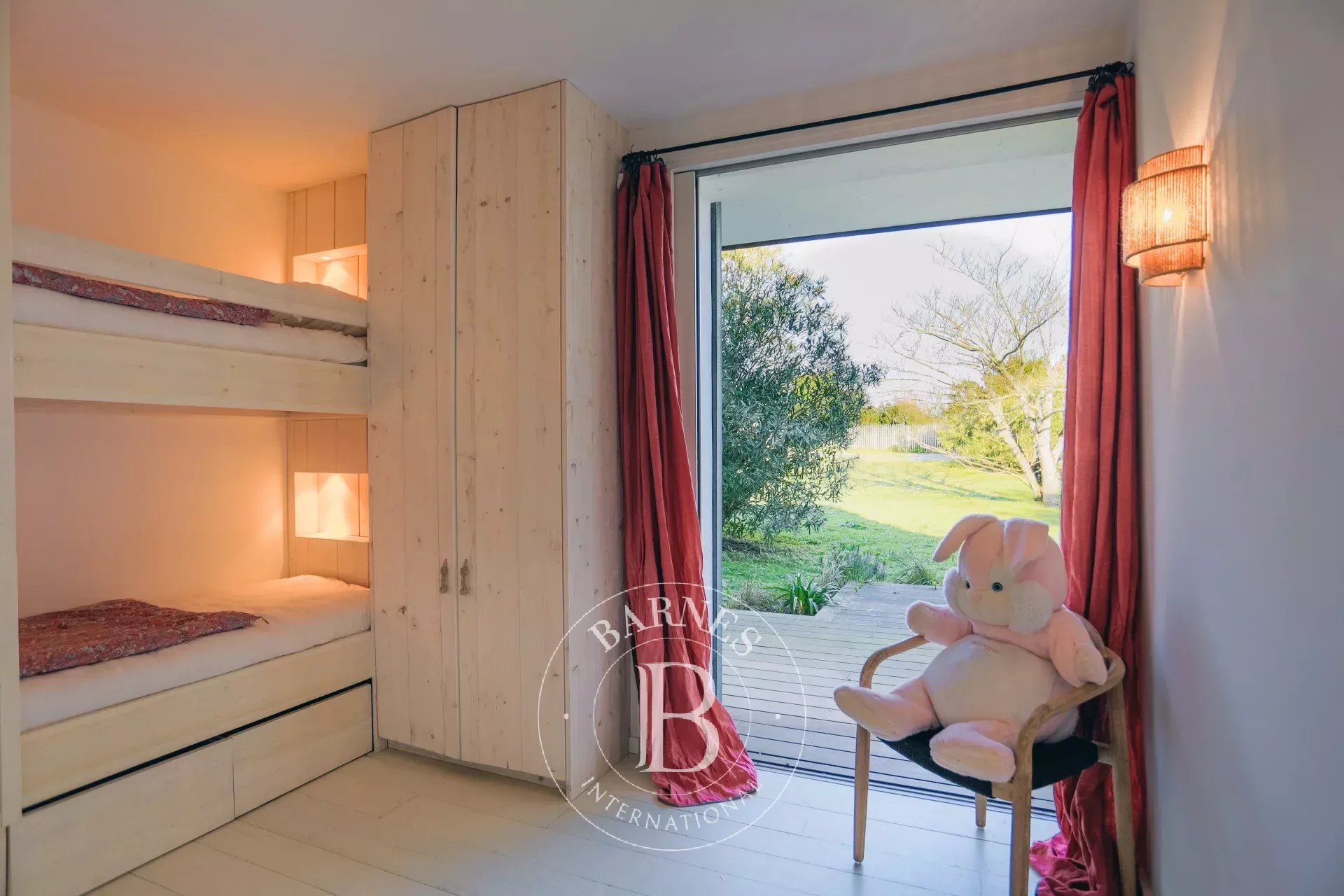 Située aux Portes-en-Ré, dans un environnement naturel préservé, la villa Grand Marchais vous ouvre ses portes pour une expérience unique alliant modernité, élégance et authenticité. Agrandie en 2024, cette demeure d’exception mêle avec raffinement le charme des pierres apparentes et des équipements haut de gamme, offrant un cadre idéal pour se ressourcer.