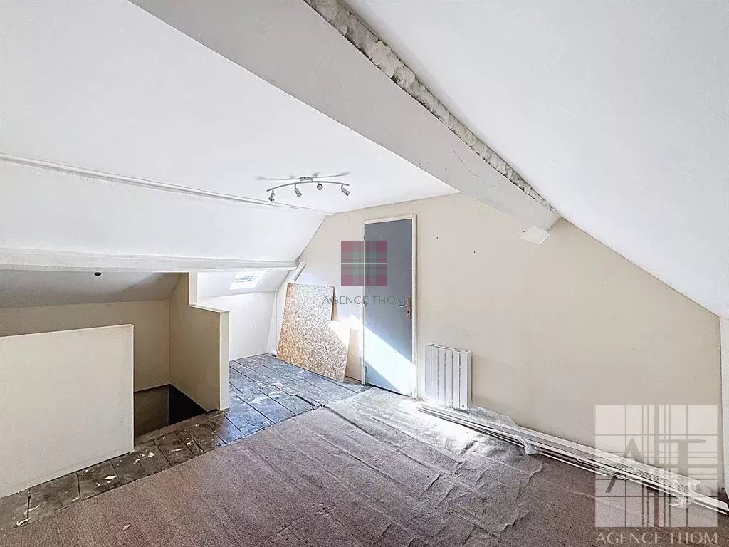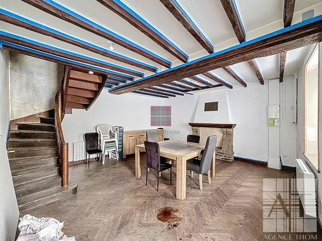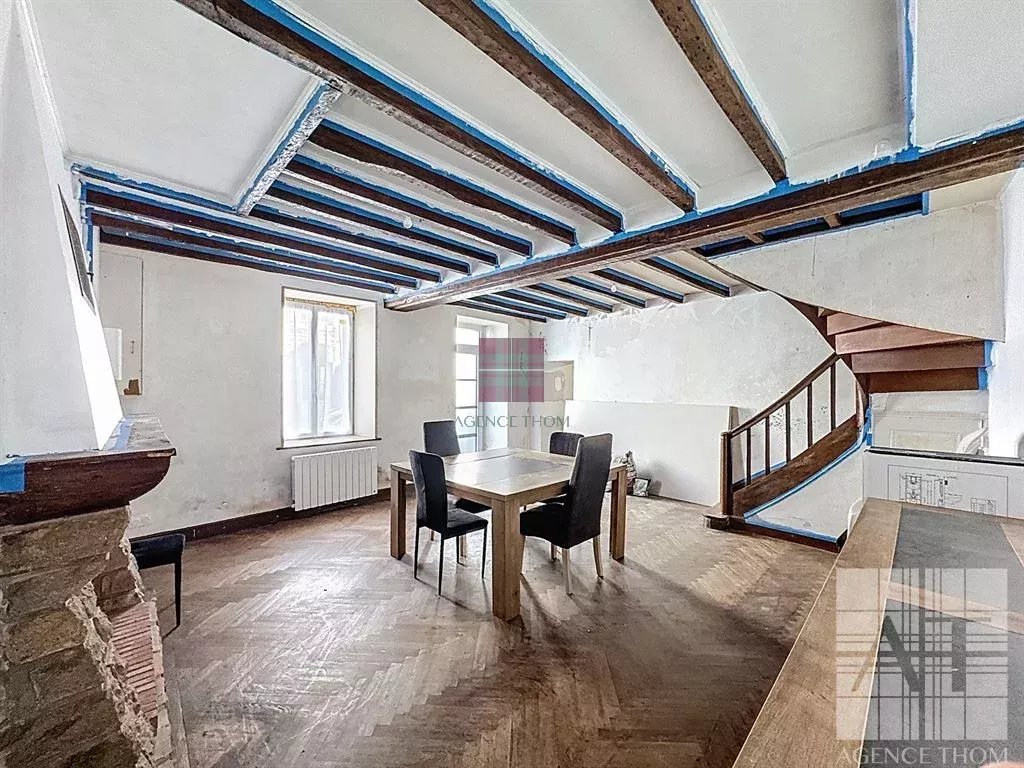 EXCLUSIVITE - Agence THOM vous propose à la vente, en exclusivité, cette charmante maison mitoyenne de 117 m², nichée au cur du village de Saint-Hilaire-du-Maine. À deux pas des commerces locaux, la propriété offre un cadre idéal pour un refuge de vacances ou une résidence principale, avec un fort potentiel locatif. Érigée avec des matériaux classiques, dont des murs en pierres et une couverture en ardoises, la propriété est équipée de lassainissement collectif, de la fibre optique, de menuiseries en PVC double vitrage (sauf une porte dentrée), une nouvelle installation électrique et les radiateurs électriques. La maison est sur quatre étages, au rez-de-chaussée vous trouverez, une entrée, une belle cuisine / salle à manger aménagée de 18,5 m², une buanderie, et un séjour accueillant de 26,2 m² avec une cheminée idéale pour linstallation dun poêle à bois ou à granulés. Le premier étage comprend deux chambres de tailles confortables, un espace bureau (7m²) actuellement aménagé en chambre denfant, et une salle de bains avec WC. Au deuxième étage, vous pourrez profiter dun côté, dune chambre avec une partie comble et de lautre côté, dun grenier aménageable. La maison bénéficie aussi dune cave sous le séjour et dun garage double non attenant. Le bien ne possède pas despace extérieur. Des rénovations partielles ont été réalisées sur la propriété, notamment au niveau de lisolation et de lélectricité, mais le bien nécessite encore des améliorations à prévoir. Des emplacements de stationnement sont disponibles devant la maison et aux alentours. Cette propriété est idéale et a beaucoup de potentiel !