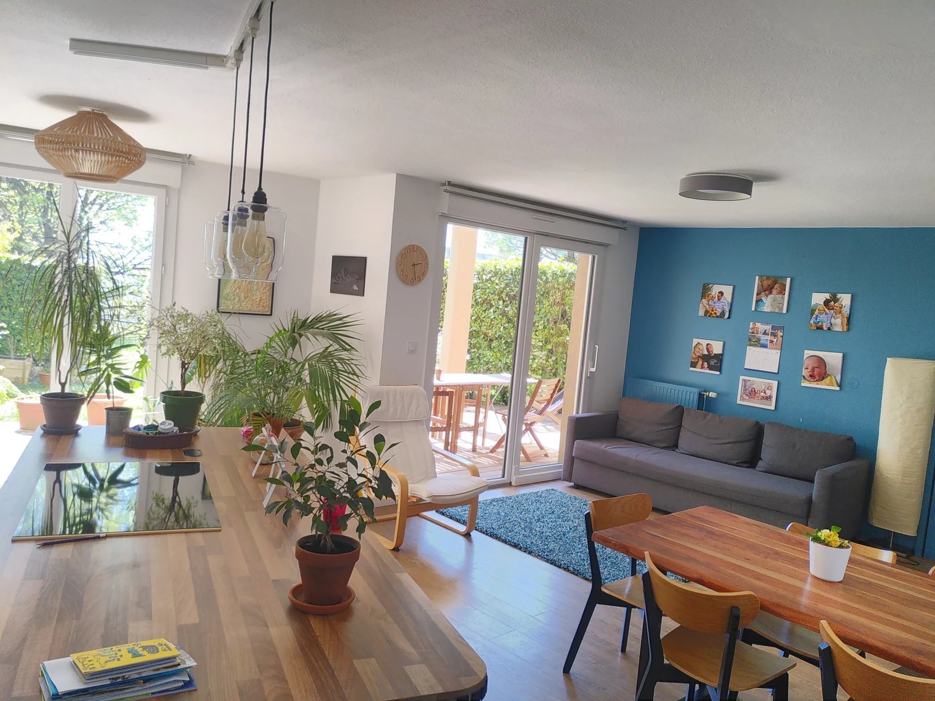 Le séjour et la chambre ouvrent sur une terrasse et le jardinet clôturé privatif (env. 50 m²).