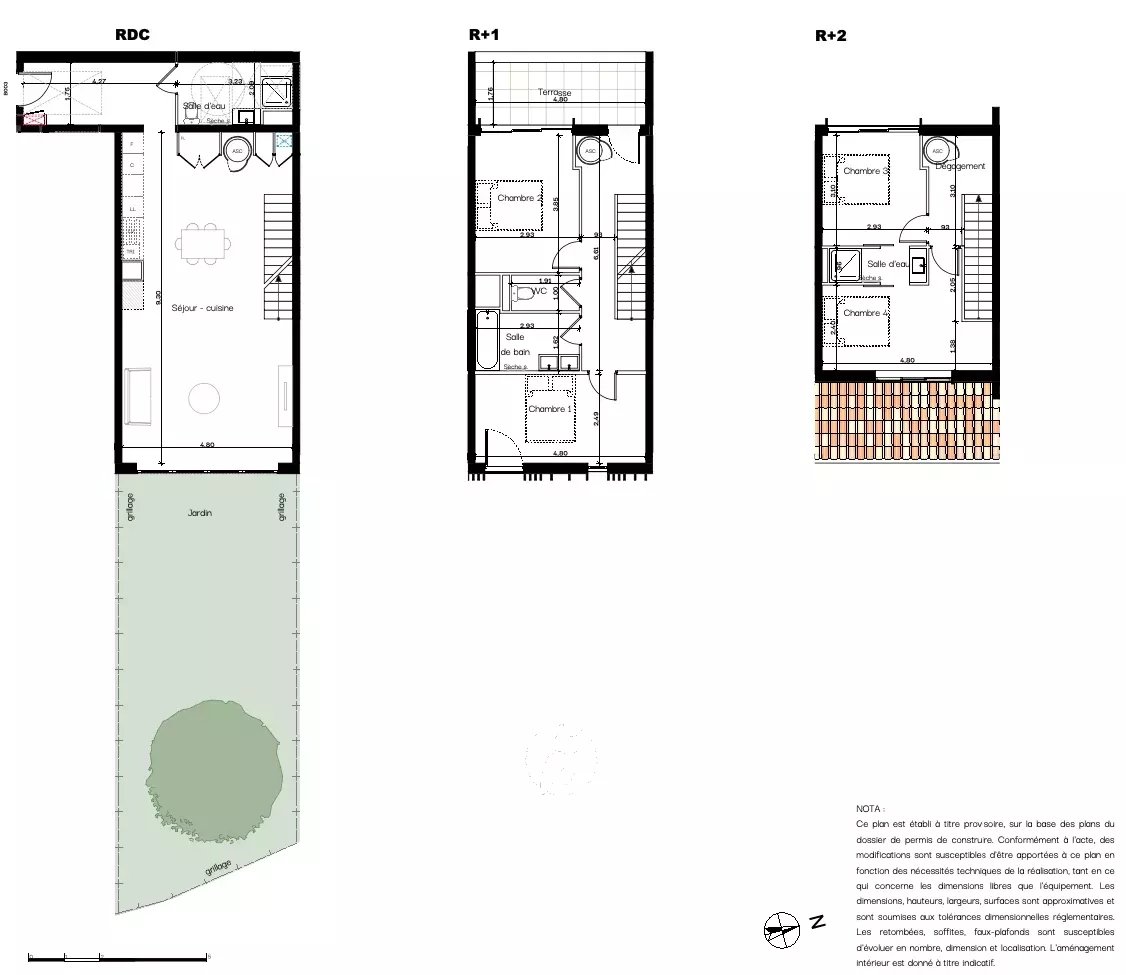 Le rez-de-jardin comprend un séjour avec cuisine ouverte donnant accès directement au jardin de 57m2. Une salle d'eau avec toilettes.