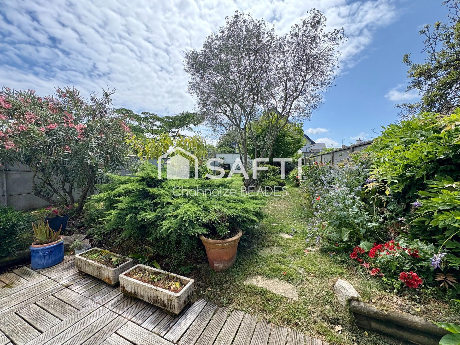 Derrière sa façade sobre, elle offre d'abord un sas d'entrée pratique, qui distribue la buanderie, un dégagement menant au grand garage assez vaste pour deux véhicules et surtout, qui ouvre sur un jardin magnifique. Un jardin exposé idéalement, arboré, sans vis-à-vis direct, où l'on imagine déjà des petits-déjeuners d'été au calme, bercés par la lumière du matin.