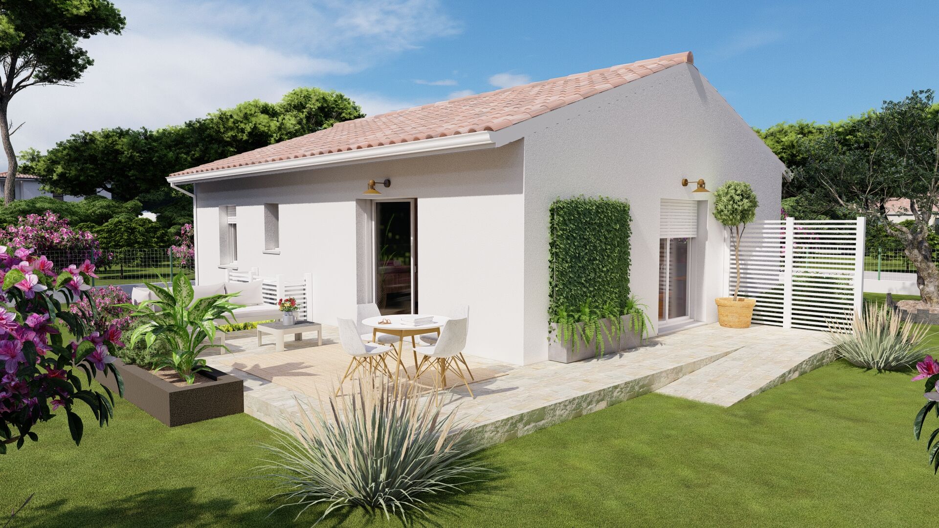 Maison + terrain + frais de notaire + terrassement + raccordements à partir de 168 000 euros. Dommages-ouvrage et garanties de parfait achèvement et de livraison à prix et délais convenus incluses.