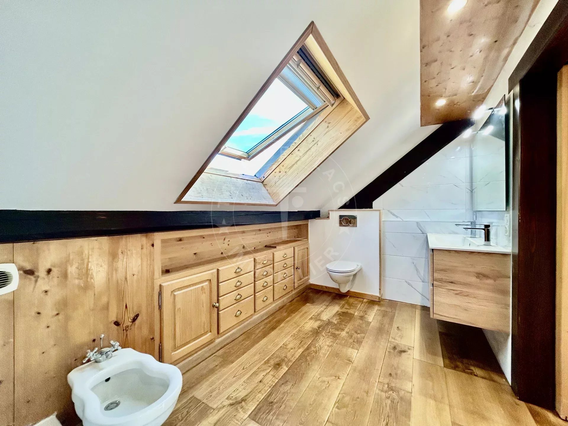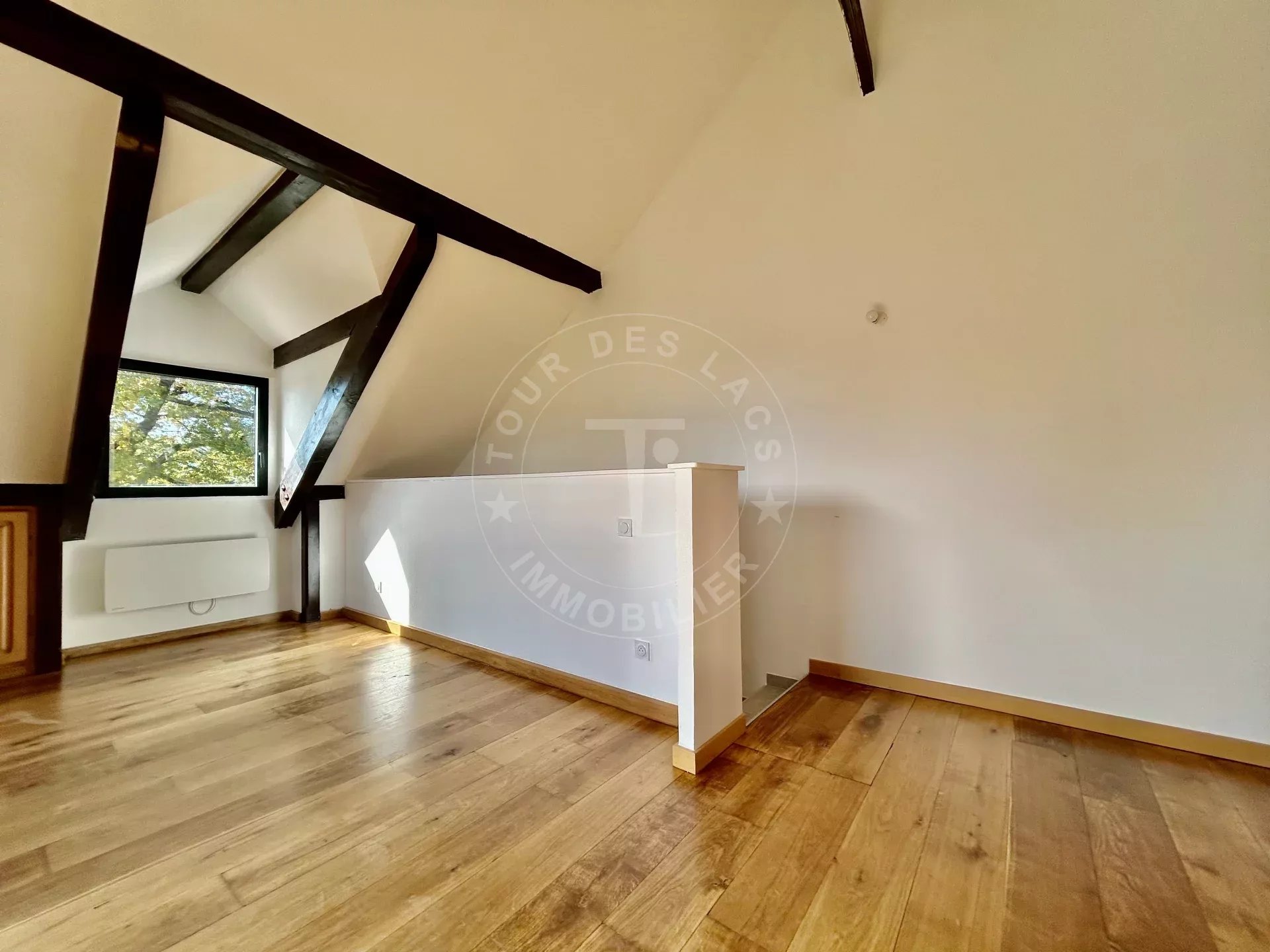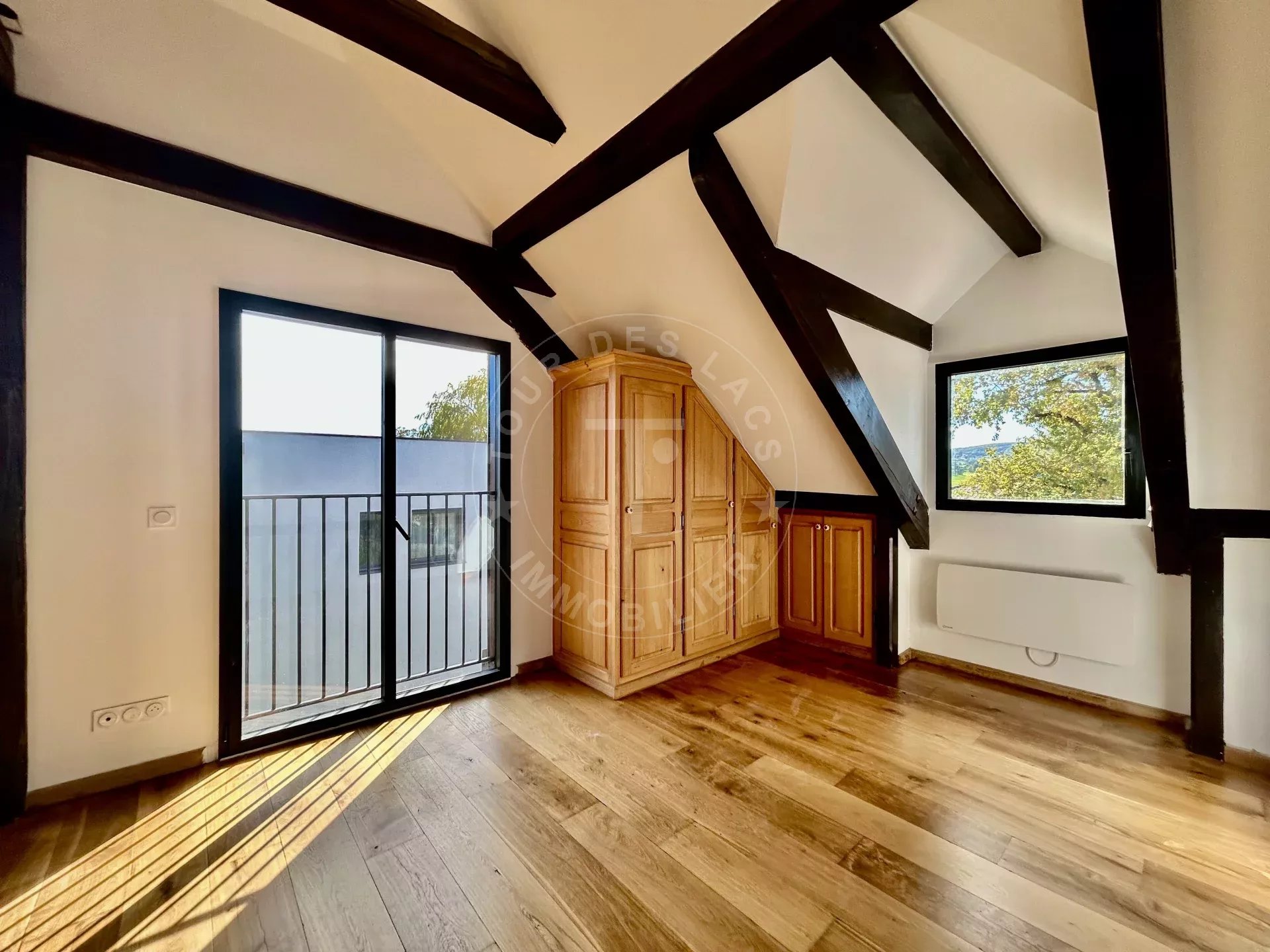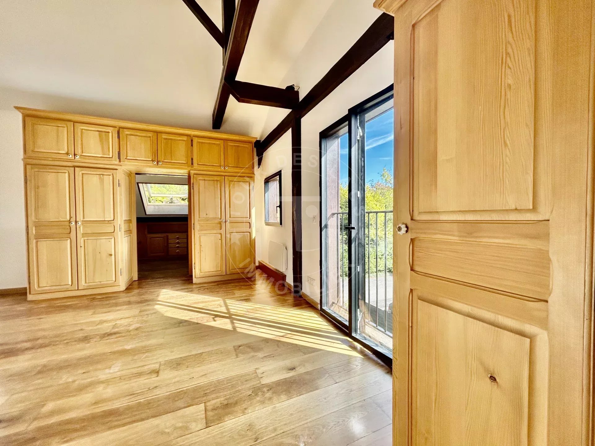Au troisième et dernier étage, une grande chambre avec de nombreux rangements, une très belle salle de bains et un WC.