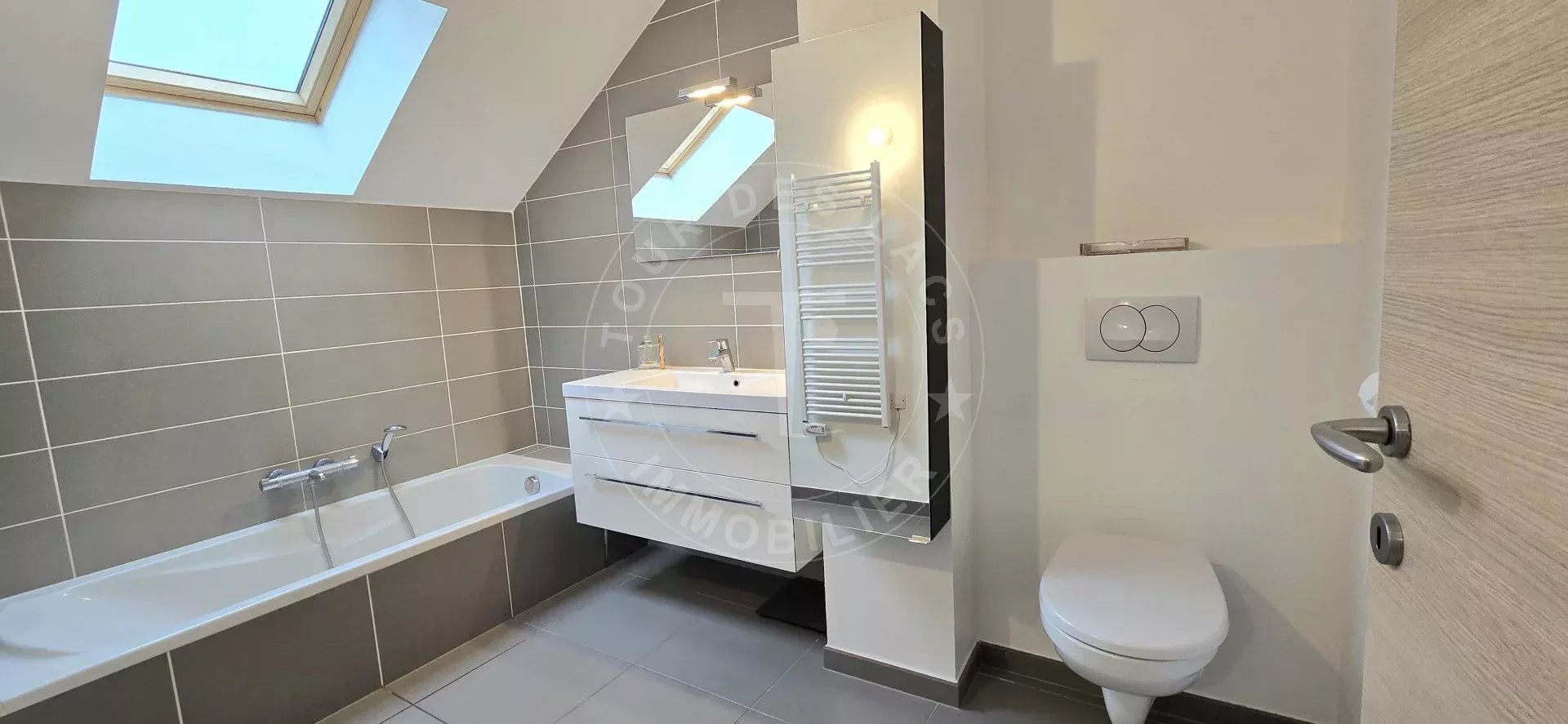 A l'étage, 3 chambres lumineuses avec placards, une chambre avec balcon, une grande salle de bains avec WC et de nombreux rangements vous offrent modernité et confort.