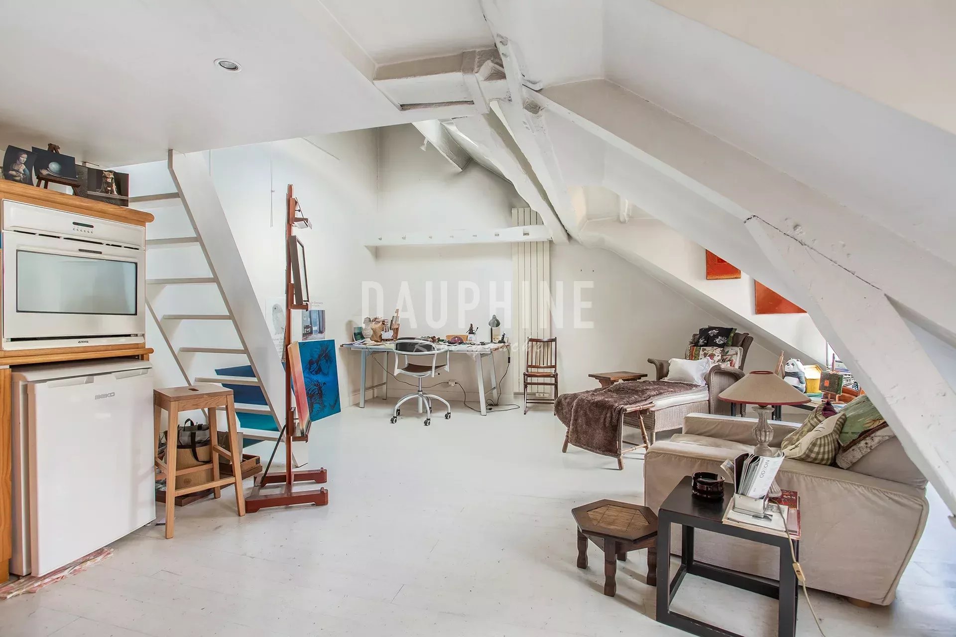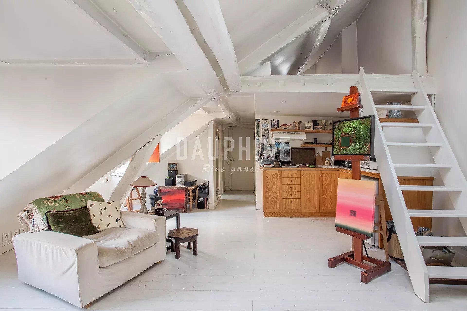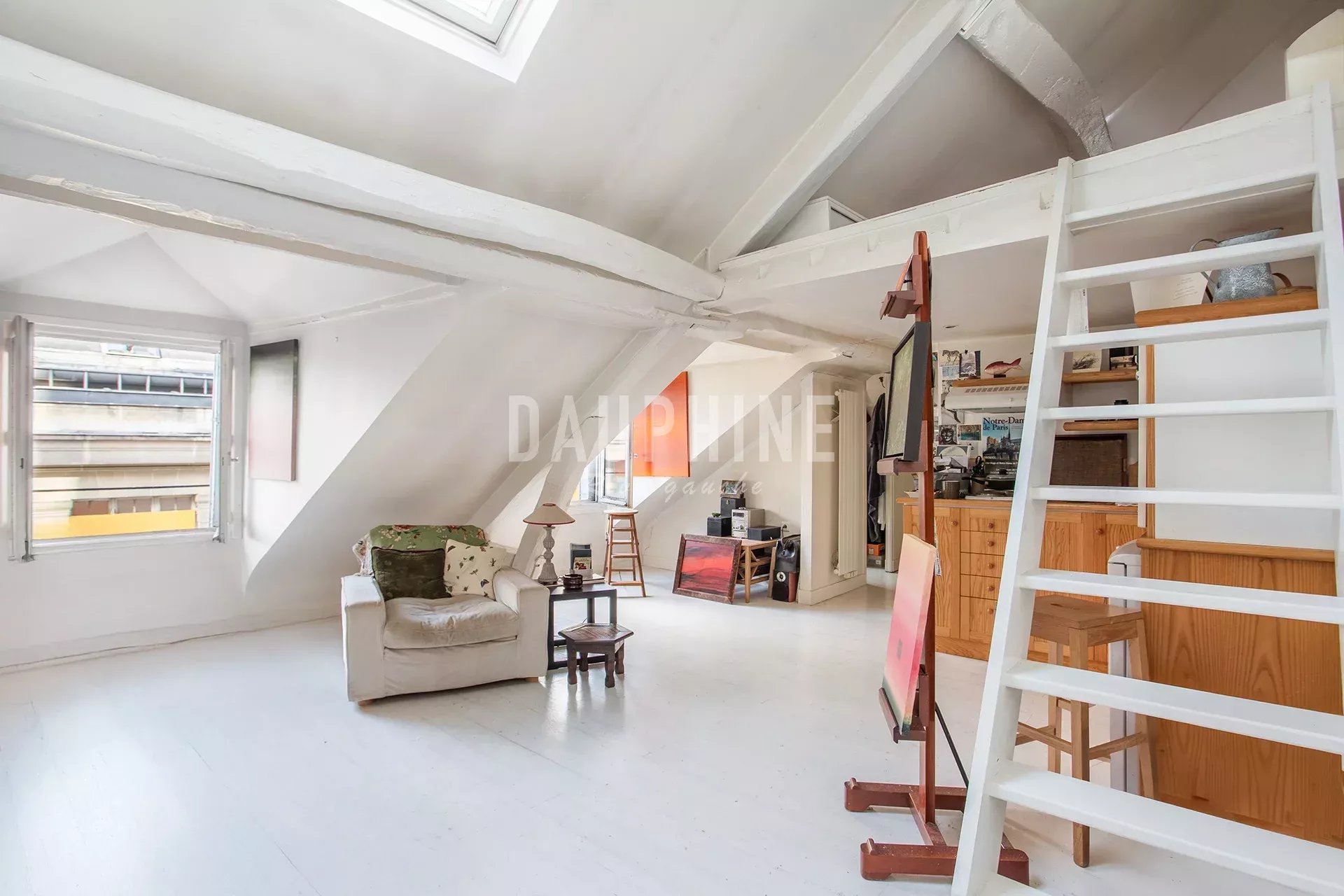 Situé au 4ème et dernier étage d'un immeuble ancien, un appartement de 31,33 m2 loi Carrez et 50,18 m2 au sol comprenant une entrée, un bureau, un séjour avec une cuisine ouverte, en mezzanine sous les combles un coin couchage. Une salle de bains avec wc. Une cave. Cet appartement vous séduira par sa situation recherchée, son coté atypique, tout proche du jardin du Luxembourg et du théâtre de l'Odéon. Calme et clair, belle hauteur sous plafond.