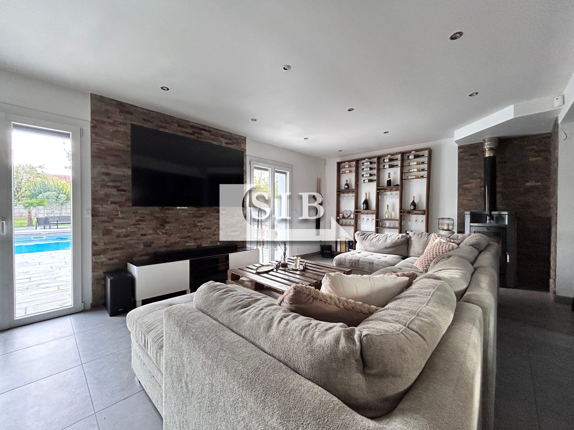 Les + de cette maison : climatisation au rez-de-chaussée, poêle à bois, stationnements multiples, double vitrage PVC avec volets roulant électrique et portail électrique.