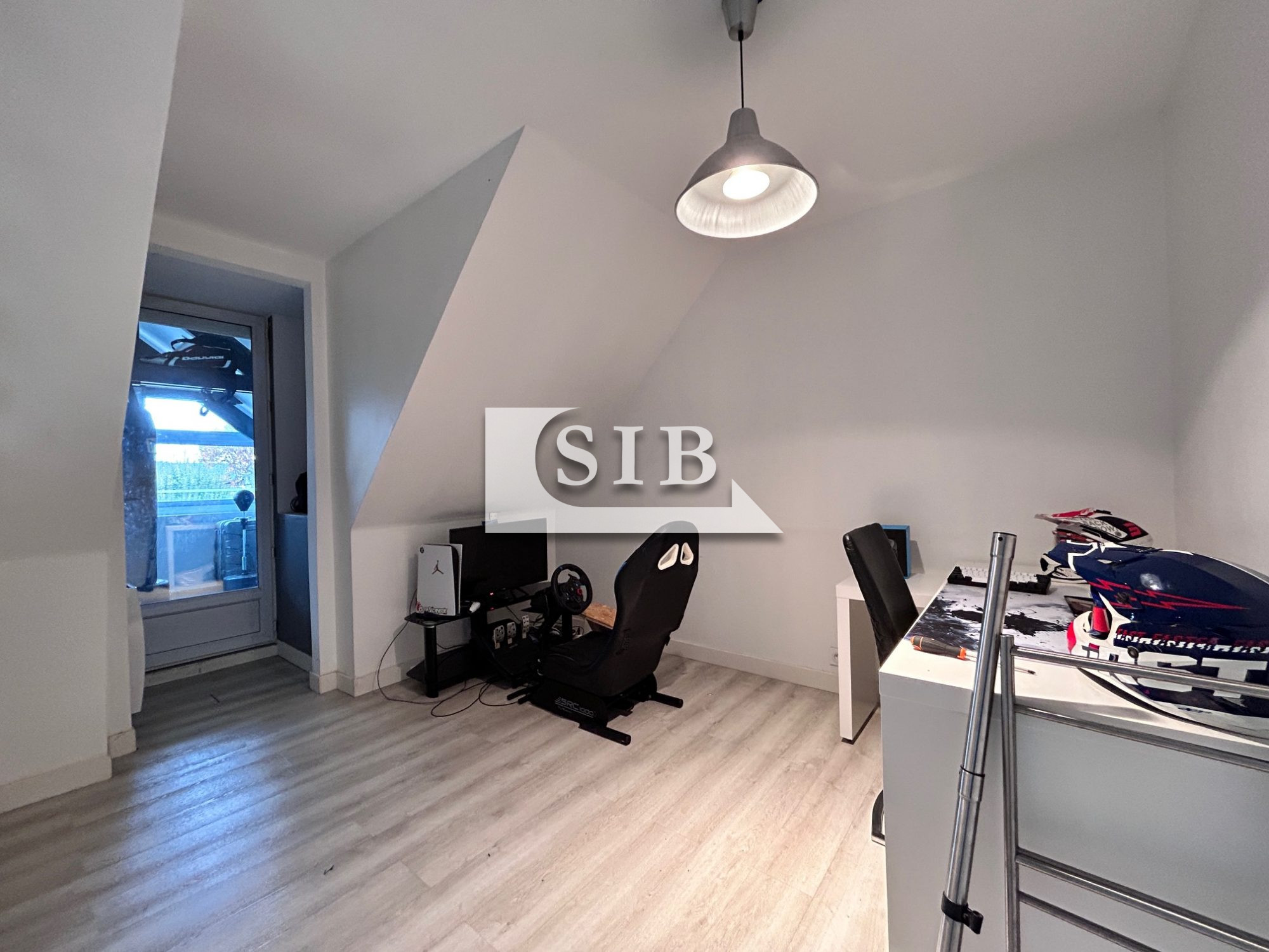 À l'étage, un palier dessert 2 chambres, une troisième chambre est possible (actuellement bureau), une salle de sport et une salle de bains avec wc.