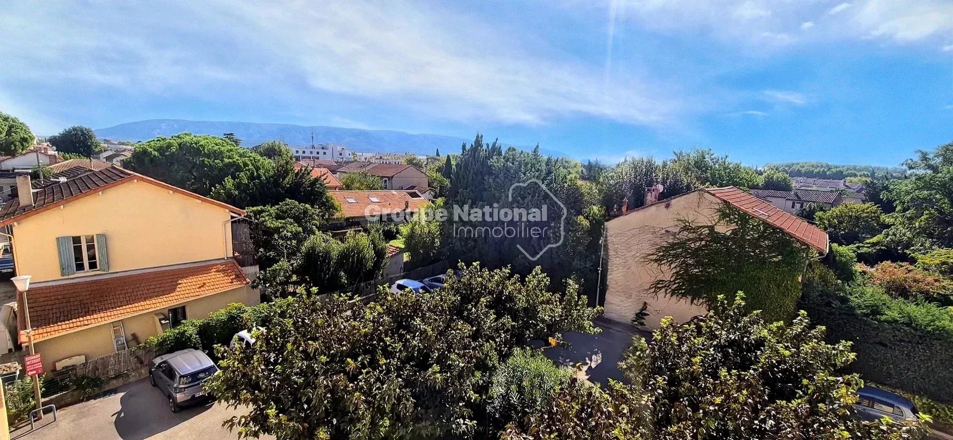 Le vaste salon-séjour de près de 30 m² s’ouvre sur un balcon offrant une vue panoramique sur le Luberon. Sa configuration permet aisément la création d’une chambre supplémentaire ou d’un espace bureau.