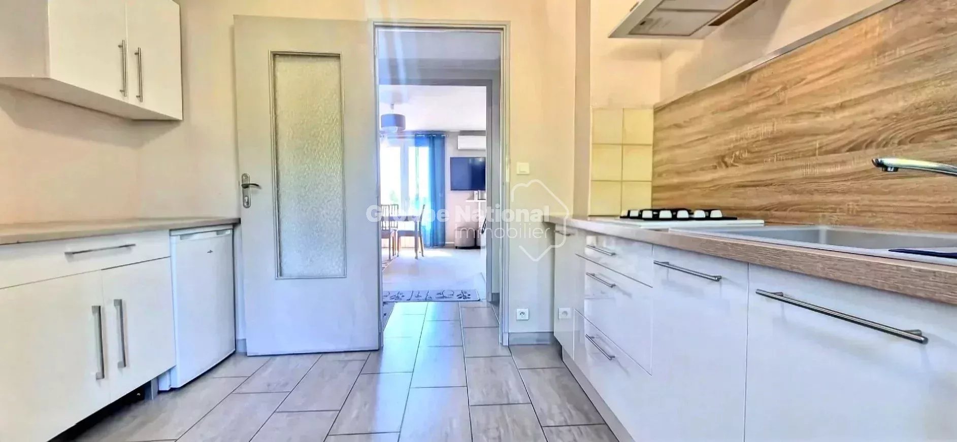 La cuisine indépendante, fonctionnelle et conviviale, dispose de nombreux rangements et d’un coin repas. Un cellier attenant vient compléter cet espace pratique.