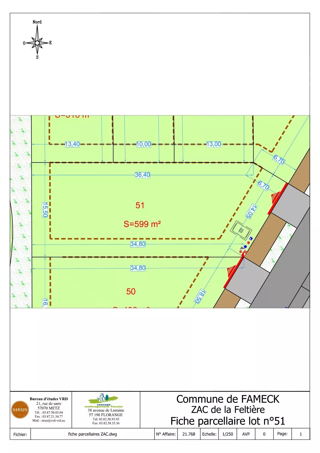 Découvrez ce magnifique terrain de 599 m² situé dans la charmante commune de Fameck. Ce lot est idéal pour bâtir la maison de vos rêves dans un environnement paisible et bien desservi. La parcelle est située dans la zone résidentielle de la ZAC de La Feltière, bénéficiant d'un cadre agréable et convivial.