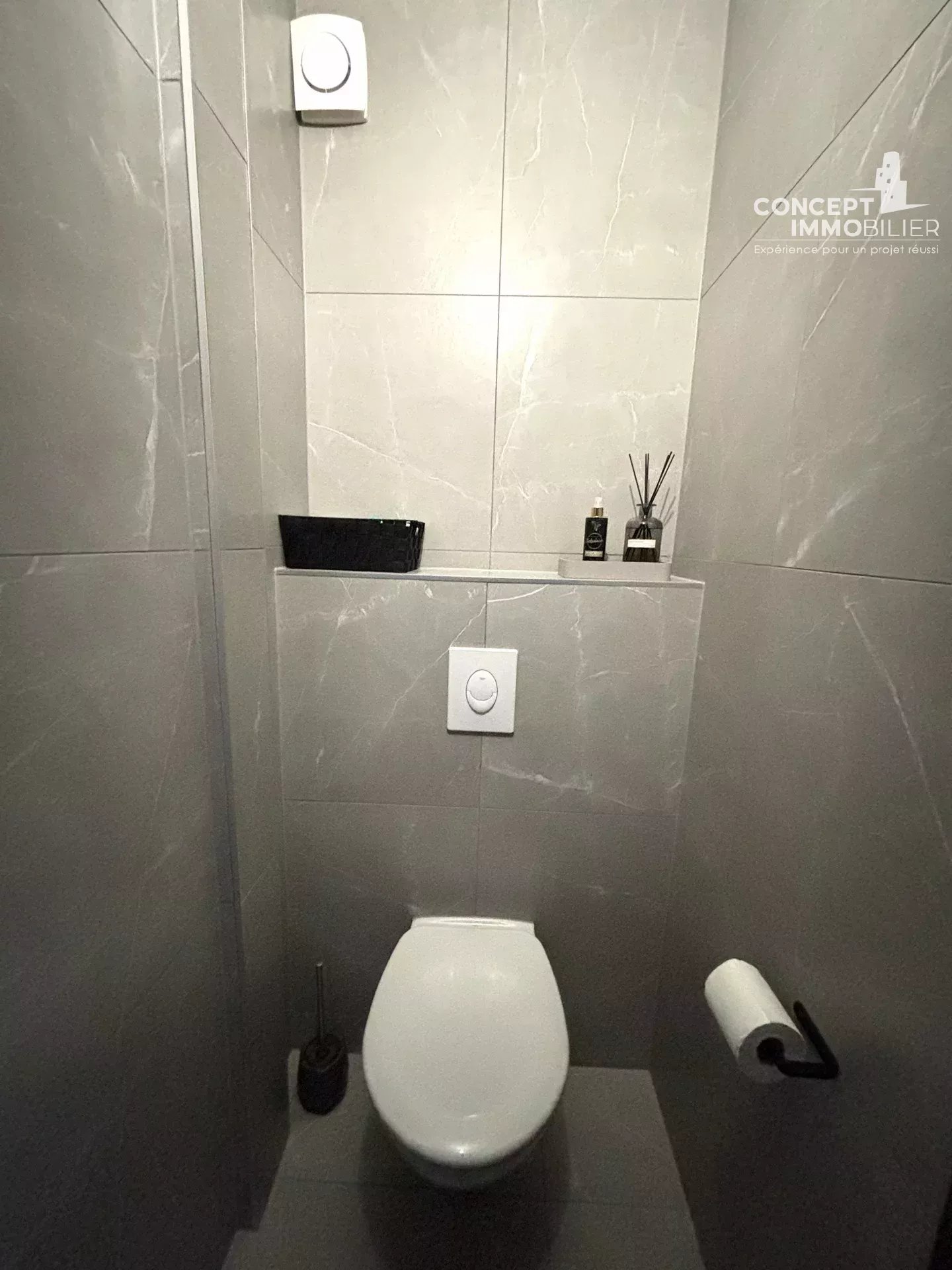 Entièrement rénové en avril 2025, ce bien se distingue par la qualité de ses prestations et la cohérence de son agencement. Le premier niveau accueille un vaste séjour lumineux ainsi qu'une cuisine moderne avec tout l'équipement nécessaire et une salle à manger conviviale. Une salle de bain design ainsi que des toilettes séparées complètent ce niveau. Le séjour et la cuisine disposent chacun d’un accès direct au balcon, offrant un espace extérieur agréable et bien exposé.