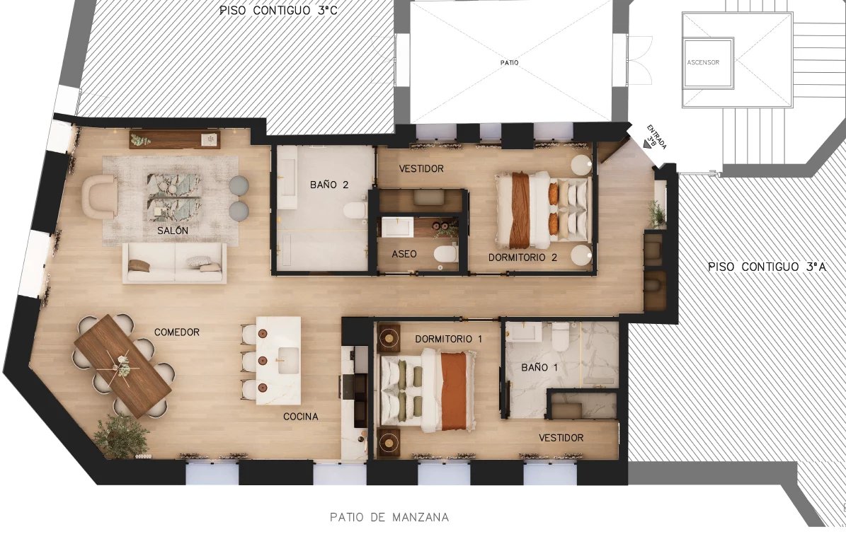 Veraltia presents a fantastic apartment of 127 m² cadastral, located on the third floor with elevator, in the neighborhood of Salamanca - Lista. The property has 2 bedrooms, 2 bathrooms and a fully equipped kitchen, with communal heating and air conditioning, which guarantees comfort throughout the year. In addition, it has energy certificate in force and is delivered fully furnished with style. This property is ideal for those looking for a modern and well located option, with great potential both to live and to invest in a high demand area.