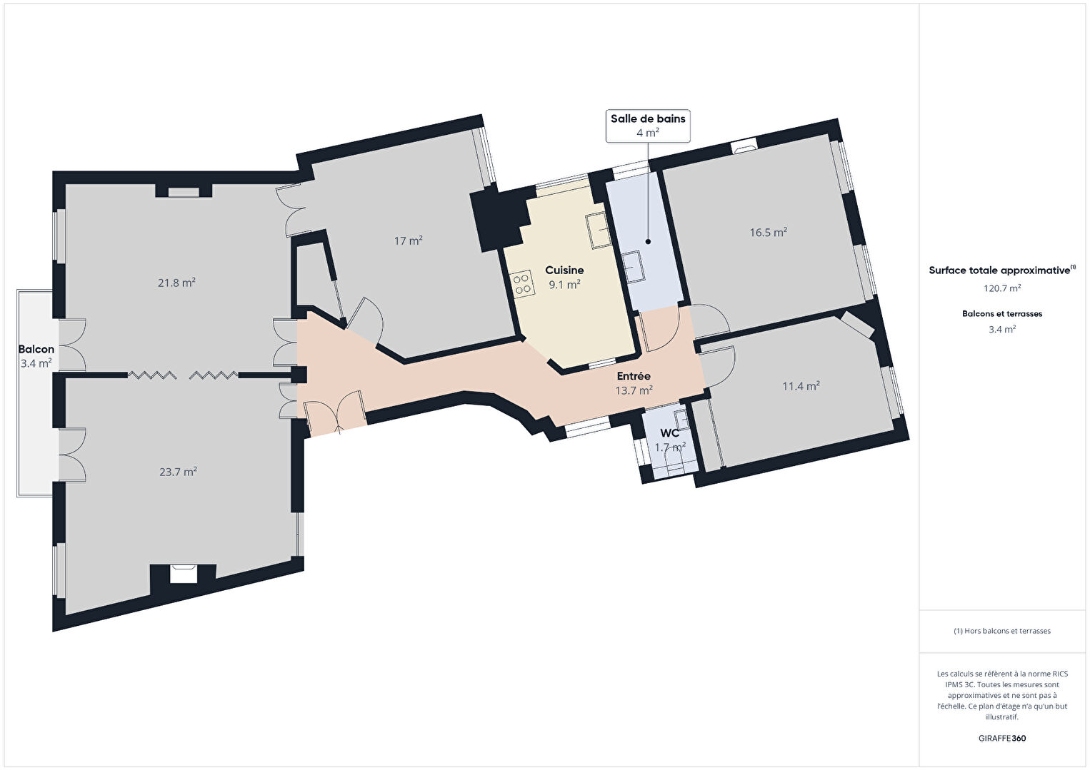 A louer, superbe appartement 5 pièces de 120 m² situé Quai Claude le Lorrain, Nancy dans une petite copropriété de quatre lots. Idéalement situé au 2ème étage sur trois d'un bel immeuble de caractère, à deux pas de la gare de Nancy et du centre-ville. Il se compose d'une entrée spacieuse desservant un vaste double séjour lumineux de plus de 45 m², avec balcon, cheminées décoratives, moulures, et parquet massif d'origine. La cuisine séparée, aménagée offre un espace fonctionnel et convivial. L'appartement comprend également trois grandes chambres (de 12 à 18 m²), une salle de bains, et un WC indépendant. L'ensemble bénéficie d'une belle hauteur sous plafond (3,15 m) et d'une luminosité exceptionnelle grâce aux nombreuses fenêtres et à une exposition agréable. Caractéristiques principales: Surface habitable : 120,01 m² Étage : 2ème (sans ascenseur) Chauffage et eau chaude individuels au gaz Balcon Double séjour avec cheminées décoratives --- Localisation: -Gare SNCF (5 min à pied) -Commerces, transports, écoles, et facultés -Centre historique et Place Stanislas accessibles à pied -Un emplacement idéal pour profiter d'un cadre de vie urbain et dynamique, tout en restant au calme. Disponibilité : immédiate Atouts du bien: Le cachet de l'ancien : parquet, moulures, cheminées Le double séjour avec balcon et lumière traversante Le secteur privilégié à deux pas de la gare et du centre Le chauffage individuel et les beaux volumes