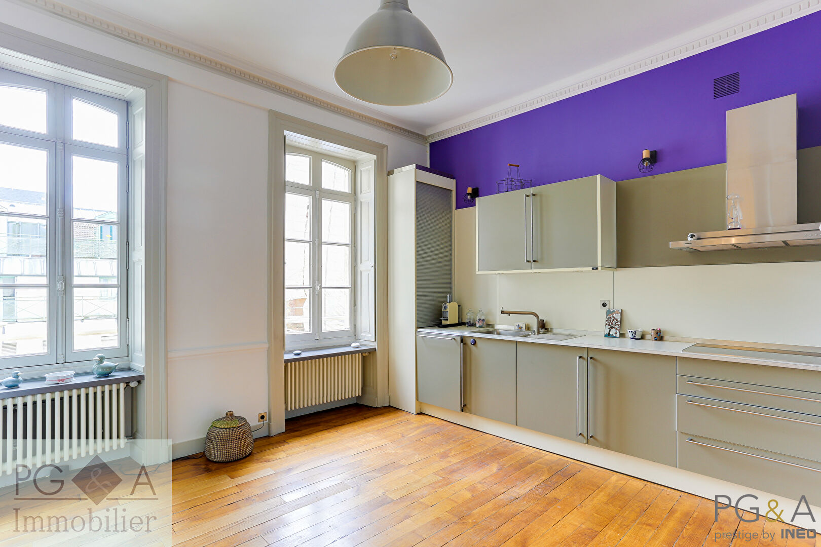 RENNES Les Quais - Dans un bel immeuble avec ascenseur, appartement de grand standing avec triple pièce de réception sur parquet et vue sur la Vilaine. Ce magnifique appartement comprend: Entrée, vaste séjour/salle à manger de 46m², salon transformable en une 4eme chambre, cuisine aménagée et équipée Bulthaup, 3 chambres de 14 à 20m², 2 salles d'eau, buanderie. Grenier et cave. Ce bien de grande qualité, a conservé ses parquets massifs et cheminées et tout le charme de l'ancien. Parking sur Arsenal en abonnement. (3.66 % honoraires TTC à la charge de l'acquéreur.) Copropriété de 30 lots. Charges annuelles : 2740 euros.