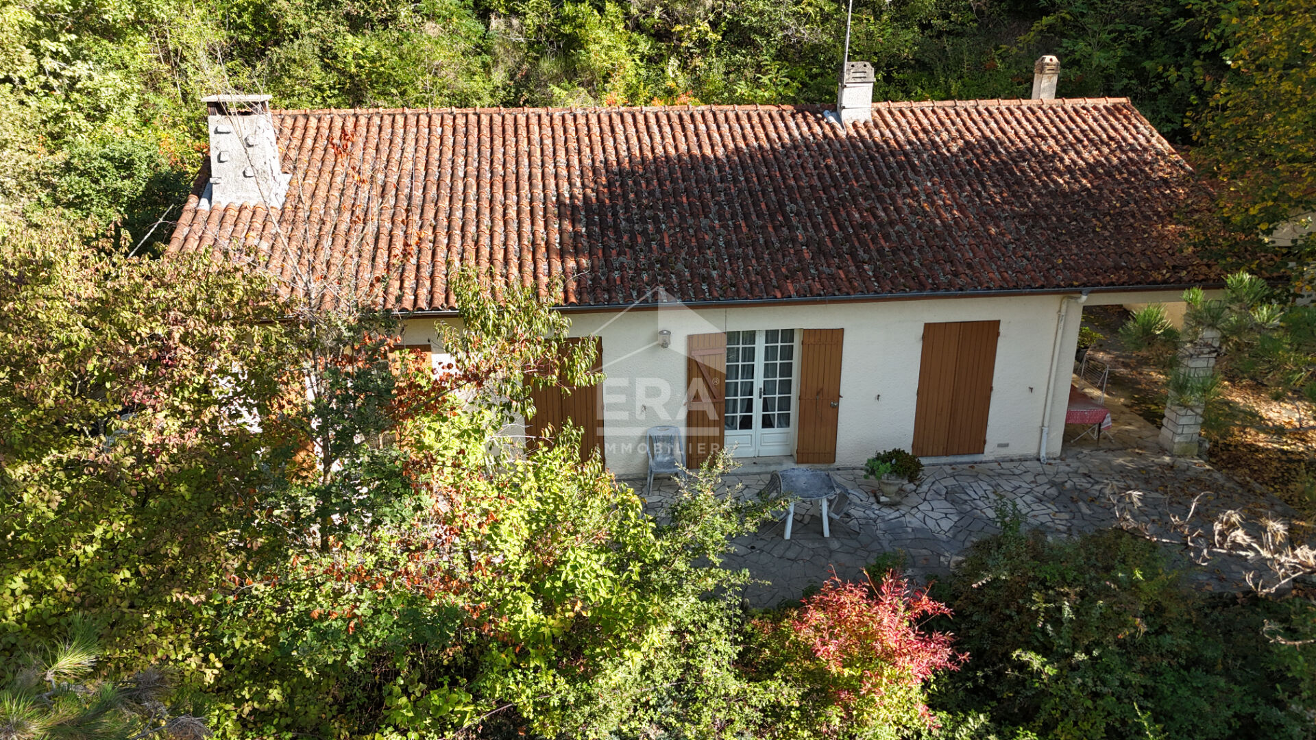 Située dans un environnement calme et verdoyant, cette jolie maison de 100 m² à rénover offre un cadre de vie exceptionnel, à seulement quelques minutes des commodités et du centre du village. Elle se compose d'une entrée, d'une cuisine indépendante, d'un spacieux séjour exposé plein sud baigné de lumière, de trois chambres confortables, d'une salle de bains, d'un WC indépendant et d'un cellier. Un grand garage vient compléter ce bien. Édifiée sur un terrain agréable mêlant prairie et partie boisée, cette propriété offre un fort potentiel d'aménagement pour créer un véritable cocon familial ou une charmante résidence secondaire. Ses atouts : exposition idéale, environnement calme, vue dégagée, beau potentiel de rénovation.
