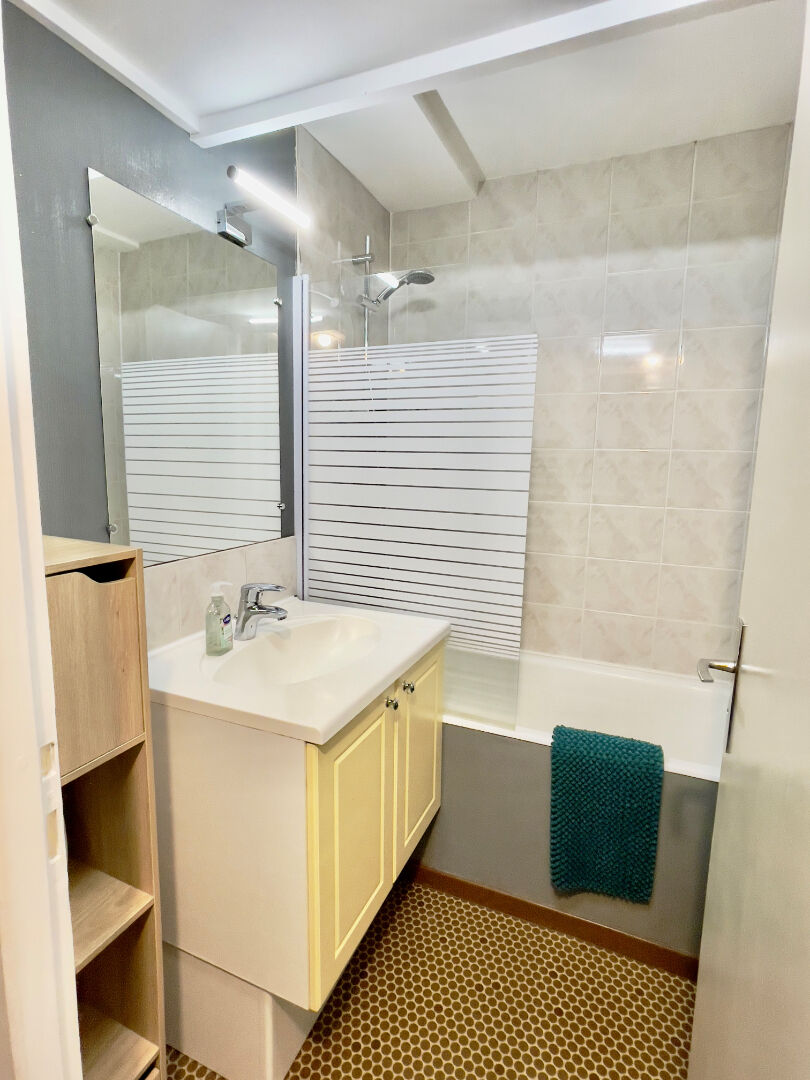 Métabief, résidence Belle Etoile, un appartement en RDC de type F2 meublé comprenant : une entrée avec coin kitchenette équipé, une pièce de vie et une terrasse, une petite chambre, une salle de bains et WC. + un casier à skis et parking extérieur et intérieur. Chauffage et eau chaude : électrique. Disponible fin novembre.