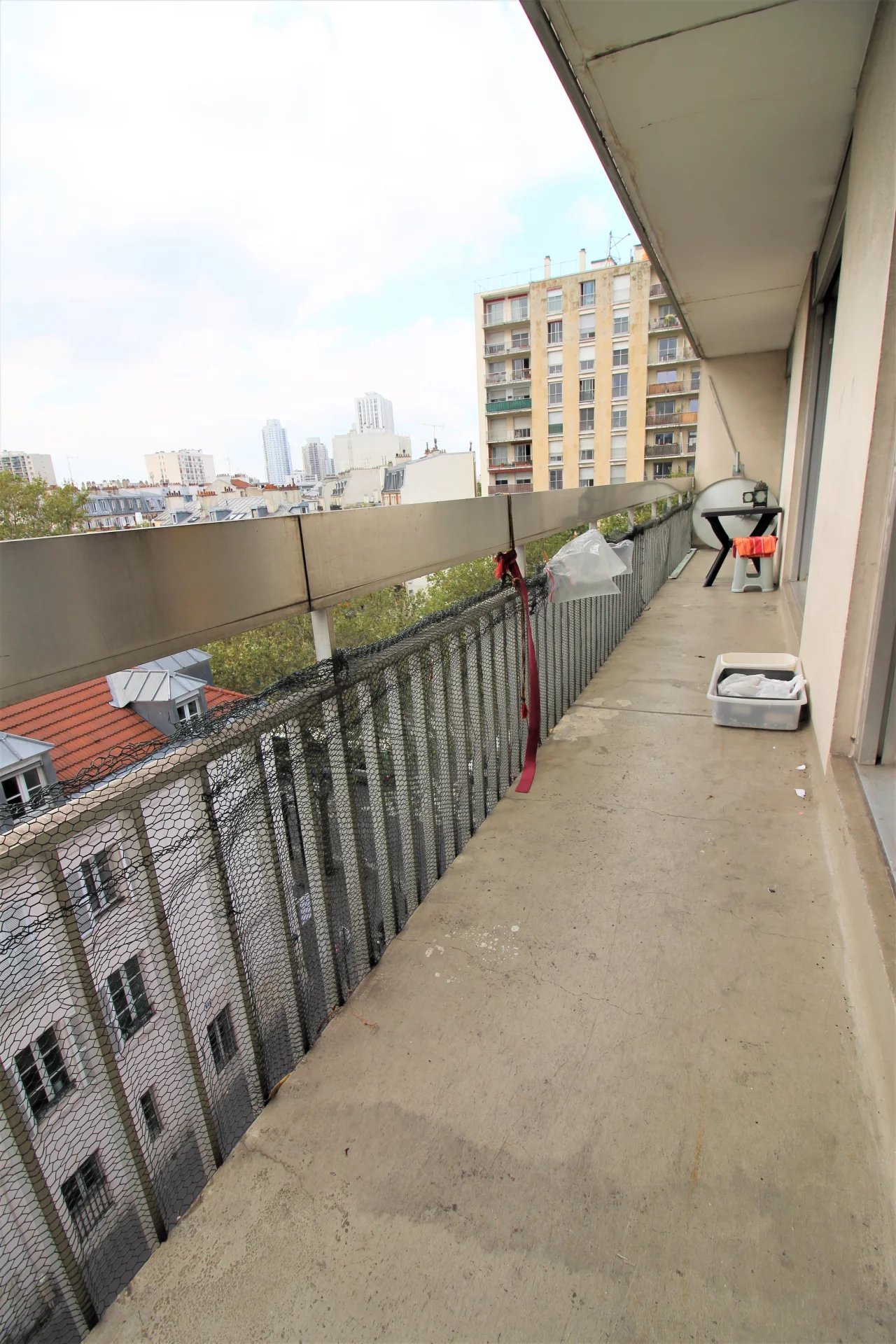 Entre Laumiere et Ourcq, au 5eme étage avec ascenseur dans un immeuble de bon standing des années 70, un appartement de 4 pièces de 87m², composé d'une petite entrée, un salon avec balcon exposé sud ouest sans vis à vis, une cuisine séparée ouvrable sur le séjour, trois chambres dont deux avec balcon, un dressing, une salle d'eau des WC séparés et quelques rangements intégrés. Une cave et un parking. Gardiennage. Travaux à prévoir.