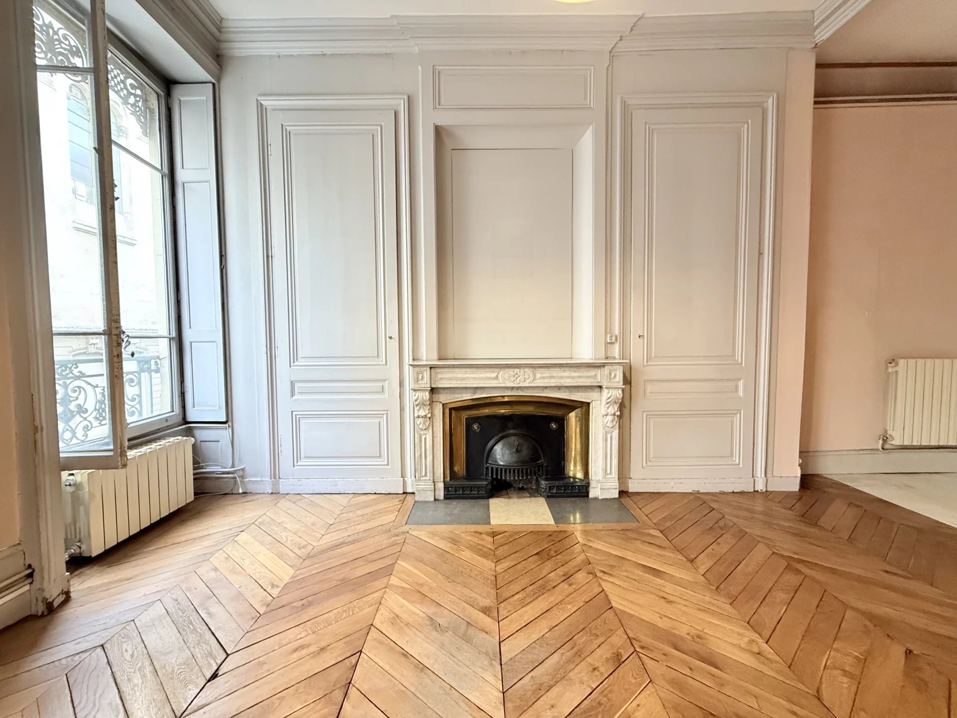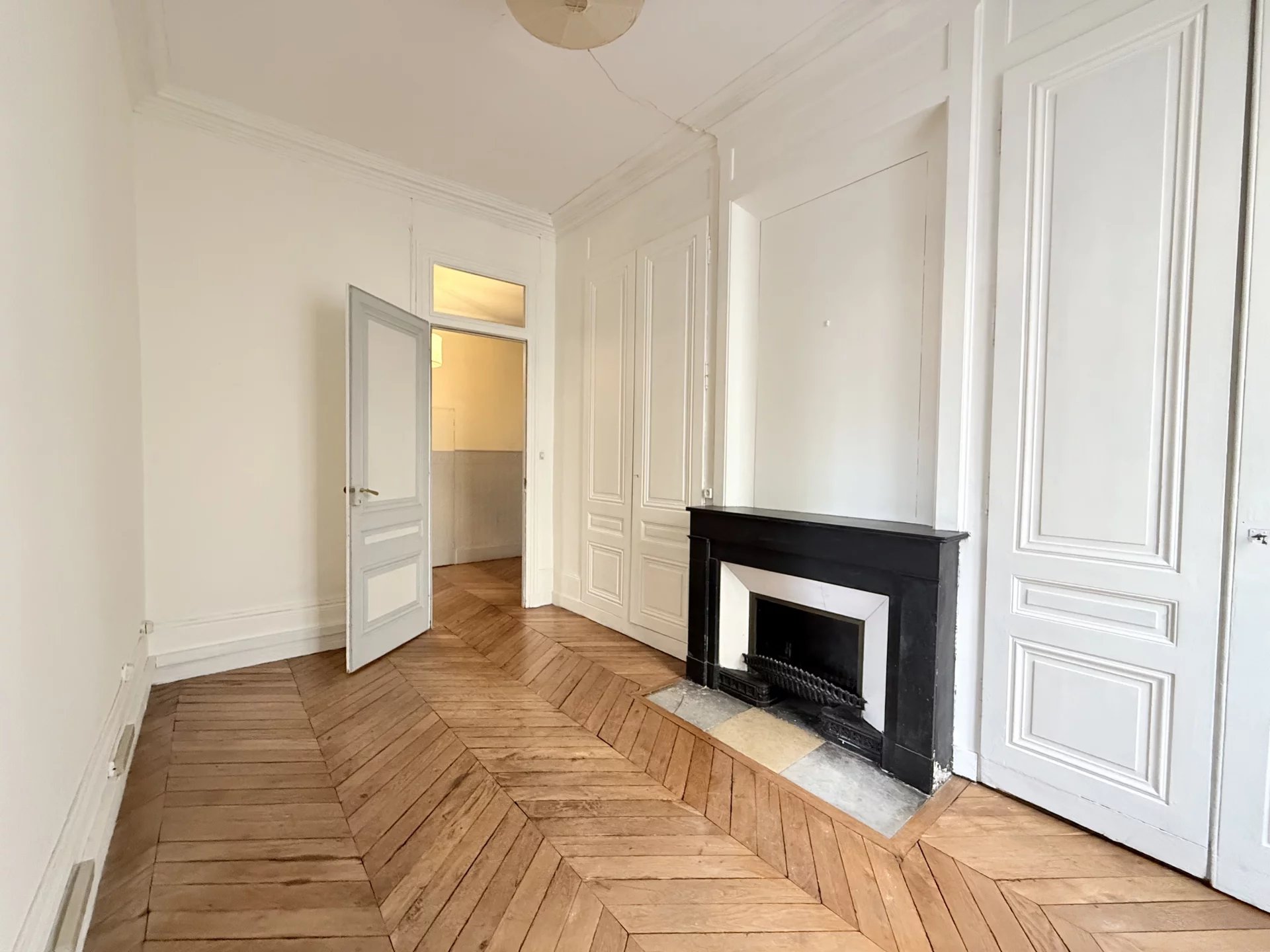 ✨ Ce bien a conservé tous les attraits de l’ancien : parquet massif en point de Hongrie, boiseries et cheminées dans toutes les pièces principales.