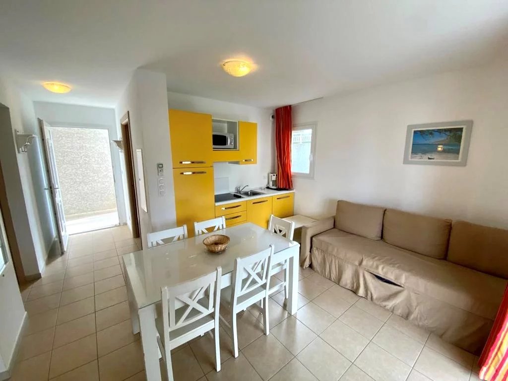 T3 de 40m² en rez-de-jardin, il est composé d’un séjour climatisé avec cuisine américaine équipée donnant sur une terrasse de 15m², deux chambres avec placards , une salle d’eau, un w-c indépendant.