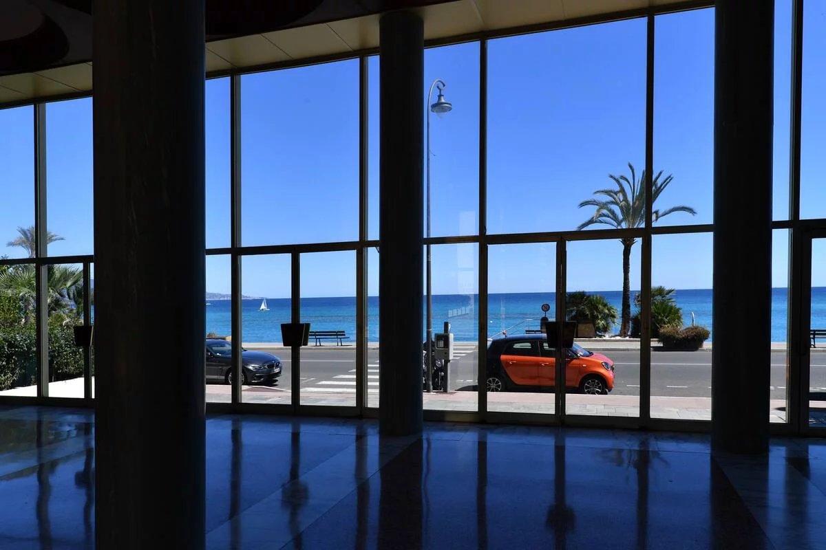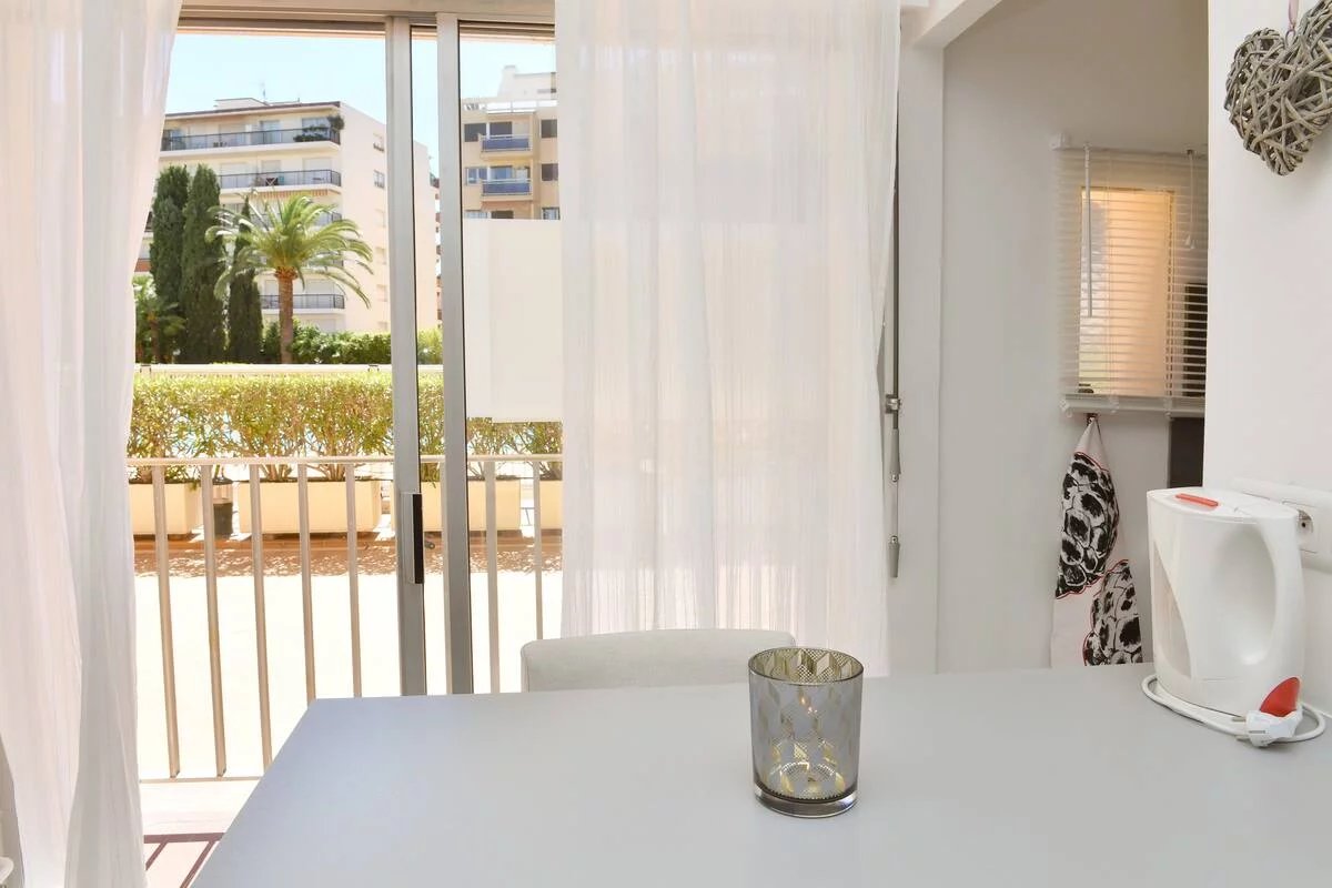 Il est situé au rez-de-chaussée d'un bel immeuble en front de mer donnant sur une grande cour et la piscine (25 m) de la residence. Il y a également un pool house avec table de ping-pong dans la cour.