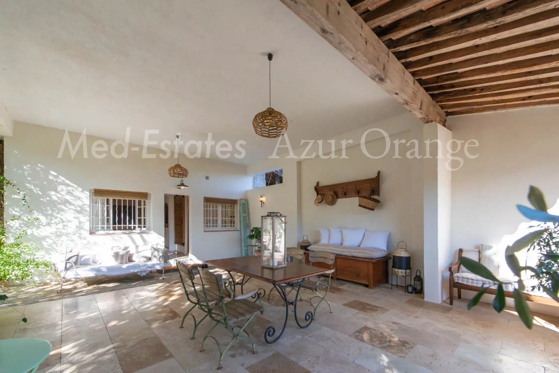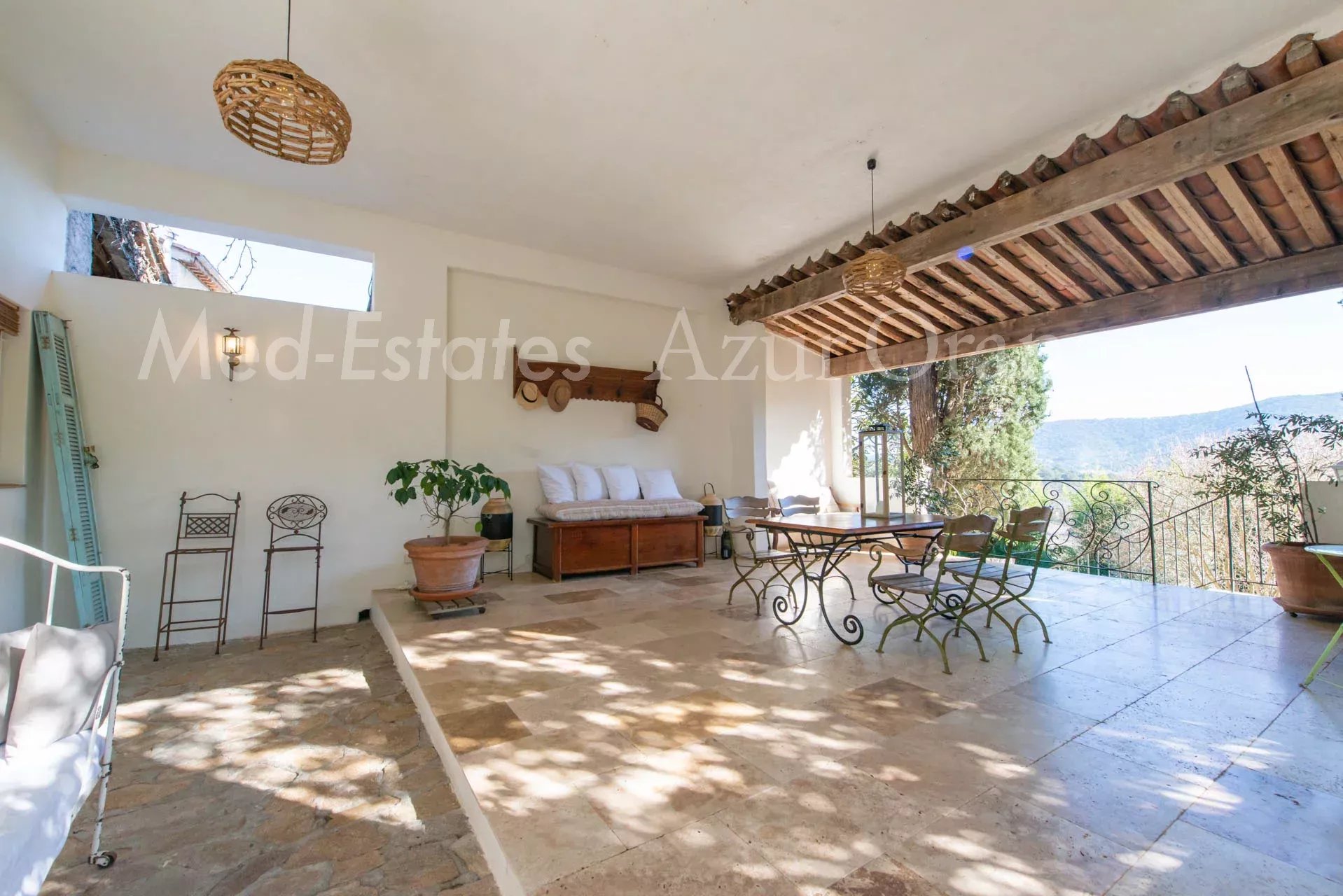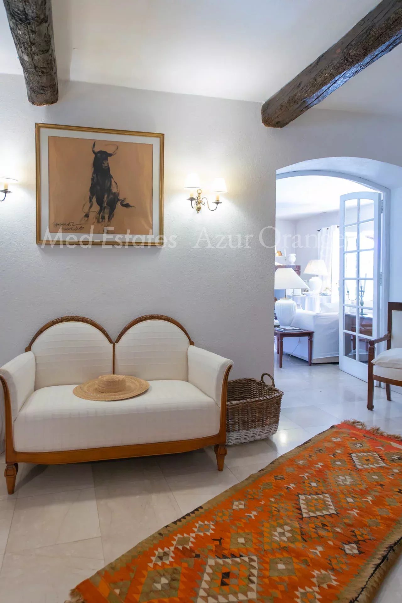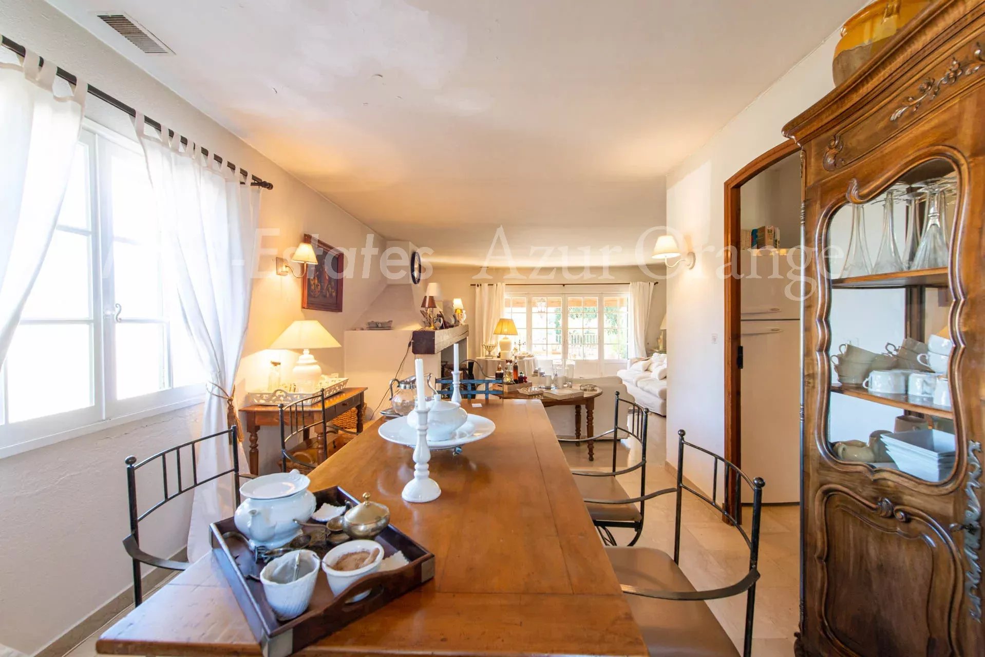 COGOLIN | EN PLEINE CAMPAGNE | MAISON DE CHARME AVEC GITE INDEPENDANT ET DEPENDANCES - VUE IMPRENABLE SUR LES ENVIRONS Charmante propriété entourée des vignes, pins, chênes-lièges sur une terrain d'environ 1689m²,... à 3 km du centre du village de Cogolin et des plages. La propriété se compose d'une maison principale de deux étages et d'un gîte, d'une surface habitable d'environ 200 m². Décoration particulièrement soignée et raffinée ! Une oasis de calme, à proximité immédiate des plages, du centre ville, de St. Tropez (12 km), des sublimes plages de Pampelonne. La maison Rez-de-chaussée : grand séjour avec très grande cheminée, exprimant le caractère à la fois rustique et raffiné de la propriété. Cuisine lumineuse. Accès à la terrasse.La terrasse extérieure d'environ 48 m², couronnée d'un auvent, surplombe le panorama du Massif des Maures.Niveau inférieur : 3 chambres avec une salle de bains ou une salle d'eau. Accès à l'étage du gîte. Le gîte : Entrée indépendante par le jardin. Une grande cuisine d'été couverte (+/- 60 m²). Rez-de-chaussée : espace de vie avec une très belle vue. Cuisine et cellier, ouverts sur le salon/salle à manger avec accès au jardin. Une salle voûtée, avec sol en marbre. La chambre, équipée d'une salle de douche et de toilettes indépendantes, s'ouvre sur la terrasse couverte. A l'étage : une pièce très lumineuse. Une grande salle de bains. Vue intime sur le jardin. Annexes : une cave voûtée, un bûcher, une pièce et un hangar (+/- 60 m ² sur deux niveaux).Possibilité de construire une piscine..