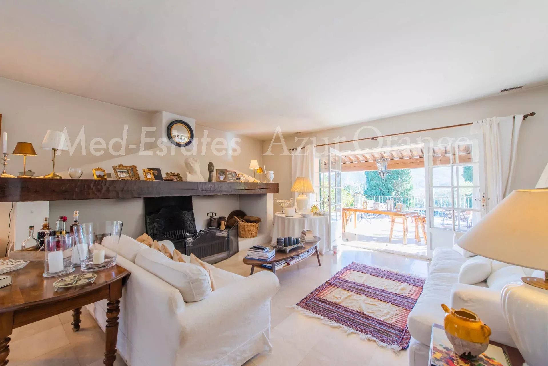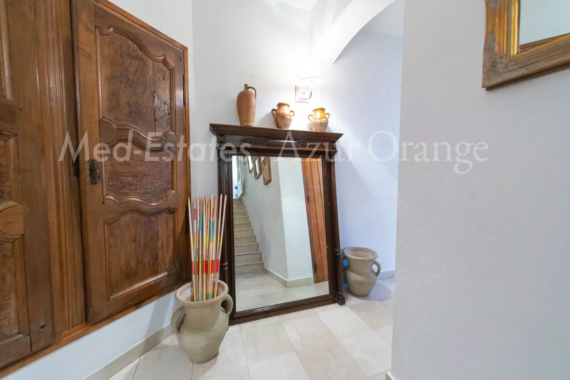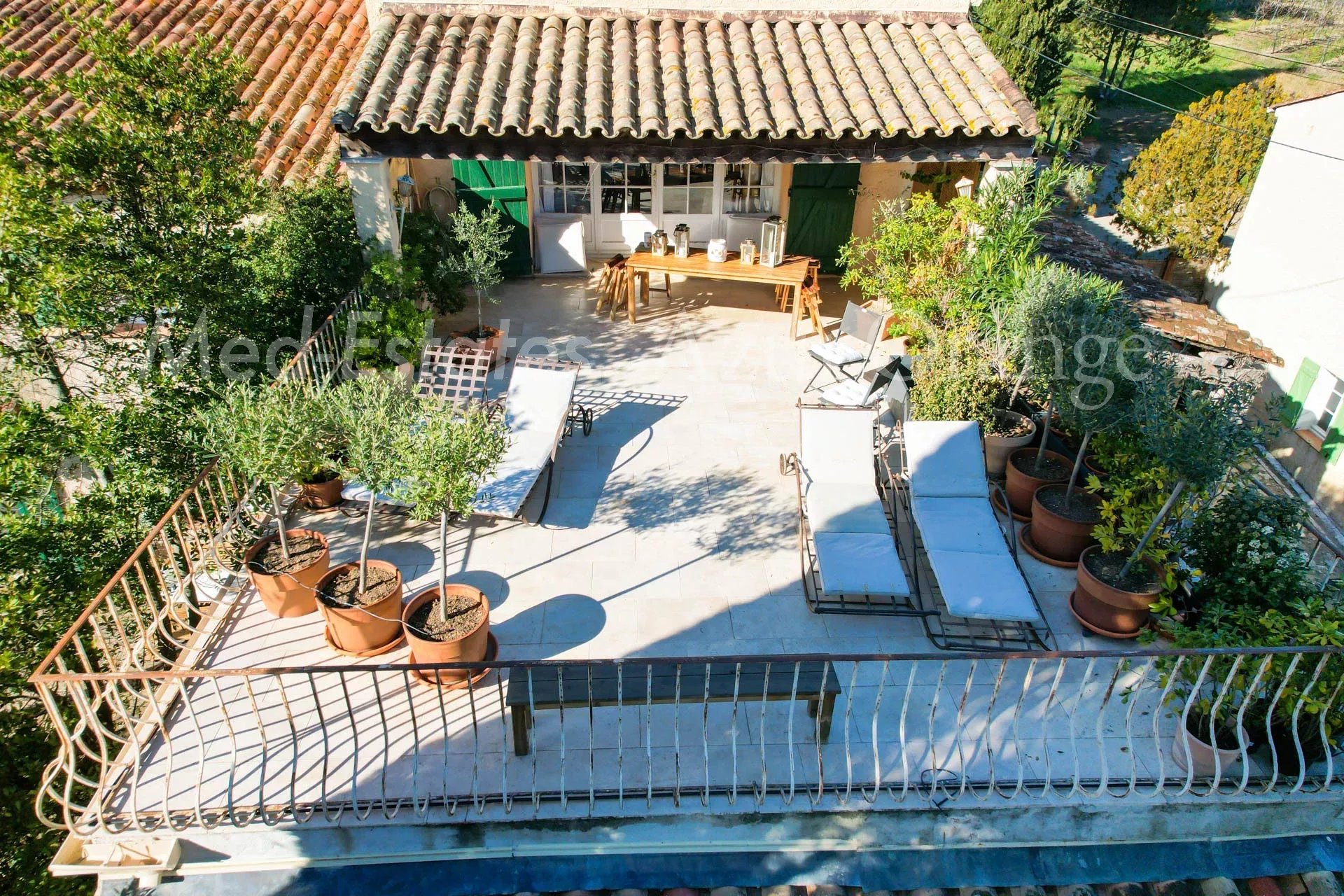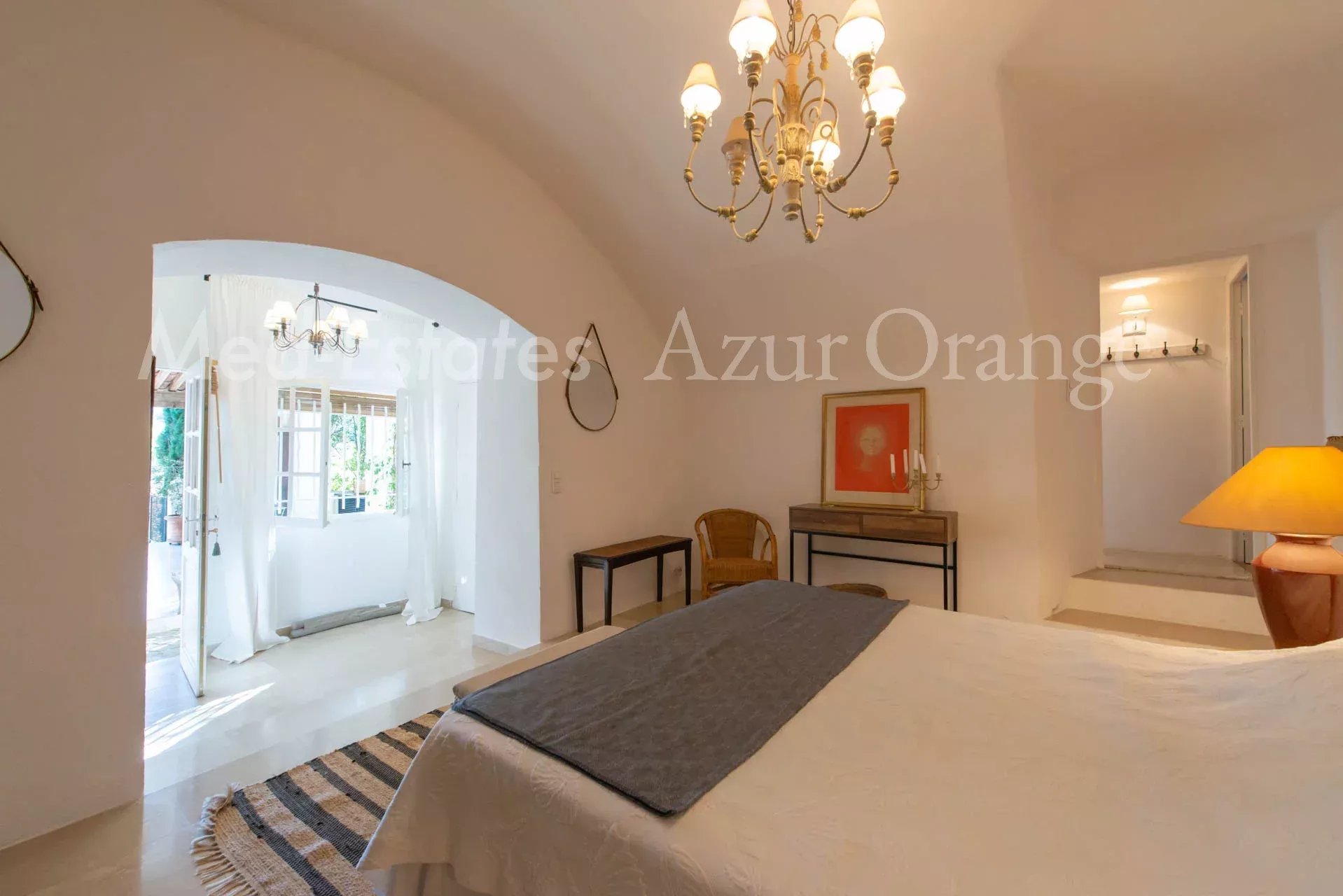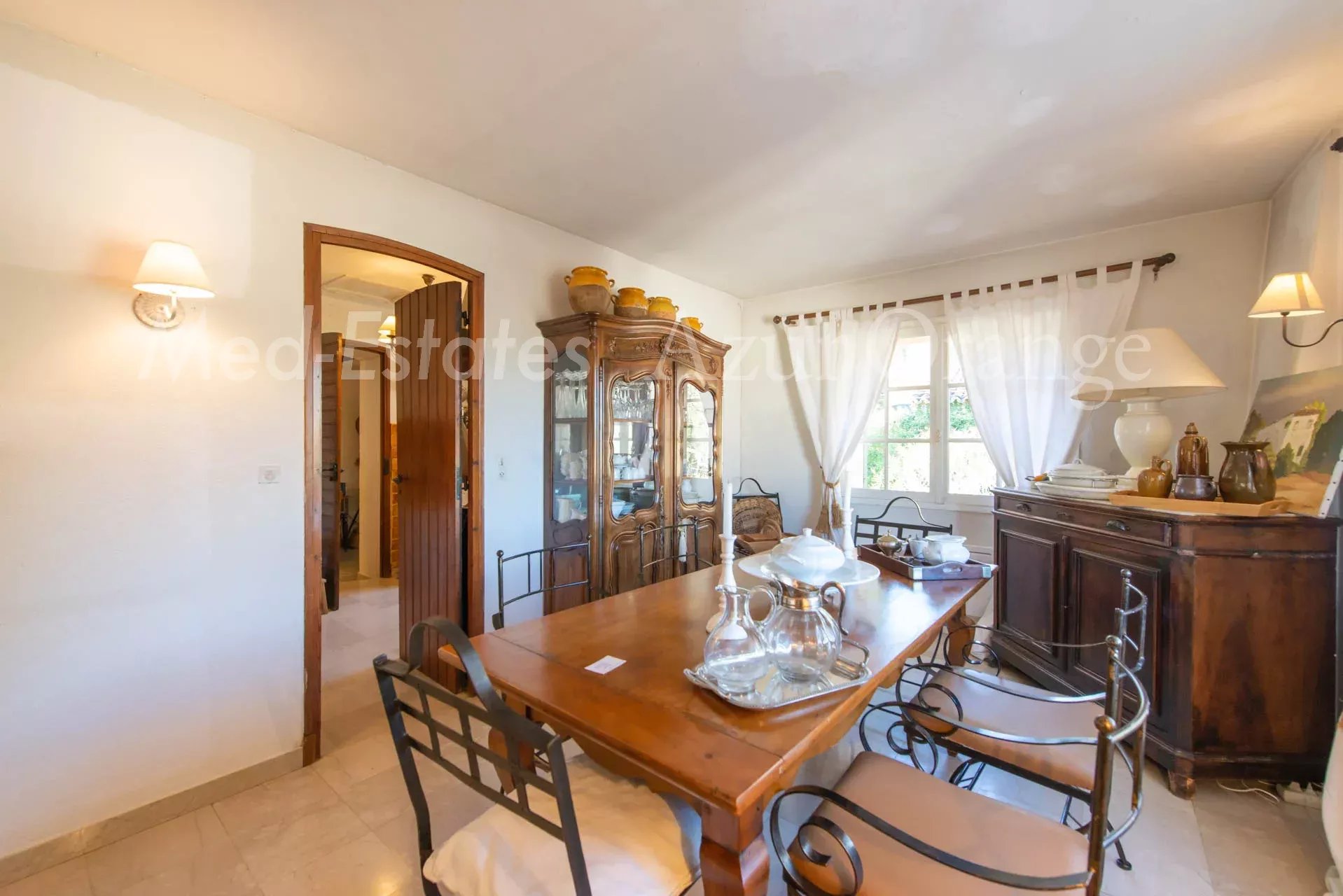 COGOLIN | EN PLEINE CAMPAGNE | MAISON DE CHARME AVEC GITE INDEPENDANT ET DEPENDANCES - VUE IMPRENABLE SUR LES ENVIRONS Charmante propriété entourée des vignes, pins, chênes-lièges sur une terrain d'environ 1689m²,... à 3 km du centre du village de Cogolin et des plages. La propriété se compose d'une maison principale de deux étages et d'un gîte, d'une surface habitable d'environ 200 m². Décoration particulièrement soignée et raffinée ! Une oasis de calme, à proximité immédiate des plages, du centre ville, de St. Tropez (12 km), des sublimes plages de Pampelonne. La maison Rez-de-chaussée : grand séjour avec très grande cheminée, exprimant le caractère à la fois rustique et raffiné de la propriété. Cuisine lumineuse. Accès à la terrasse.La terrasse extérieure d'environ 48 m², couronnée d'un auvent, surplombe le panorama du Massif des Maures.Niveau inférieur : 3 chambres avec une salle de bains ou une salle d'eau. Accès à l'étage du gîte. Le gîte : Entrée indépendante par le jardin. Une grande cuisine d'été couverte (+/- 60 m²). Rez-de-chaussée : espace de vie avec une très belle vue. Cuisine et cellier, ouverts sur le salon/salle à manger avec accès au jardin. Une salle voûtée, avec sol en marbre. La chambre, équipée d'une salle de douche et de toilettes indépendantes, s'ouvre sur la terrasse couverte. A l'étage : une pièce très lumineuse. Une grande salle de bains. Vue intime sur le jardin. Annexes : une cave voûtée, un bûcher, une pièce et un hangar (+/- 60 m ² sur deux niveaux).Possibilité de construire une piscine..