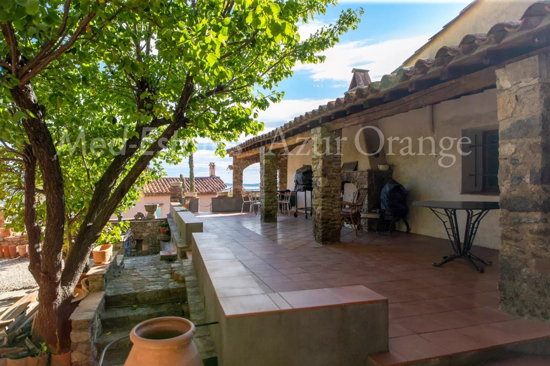 Dans le centre historique de Grimaud, rare maison pleine de charme d'environ 400 m² avec une très belle vue sur la mer et le golfe de Saint-Tropez. Cour intérieure, caves, garage. Cette maison familiale ancienne, sur 2 niveaux, se compose de :