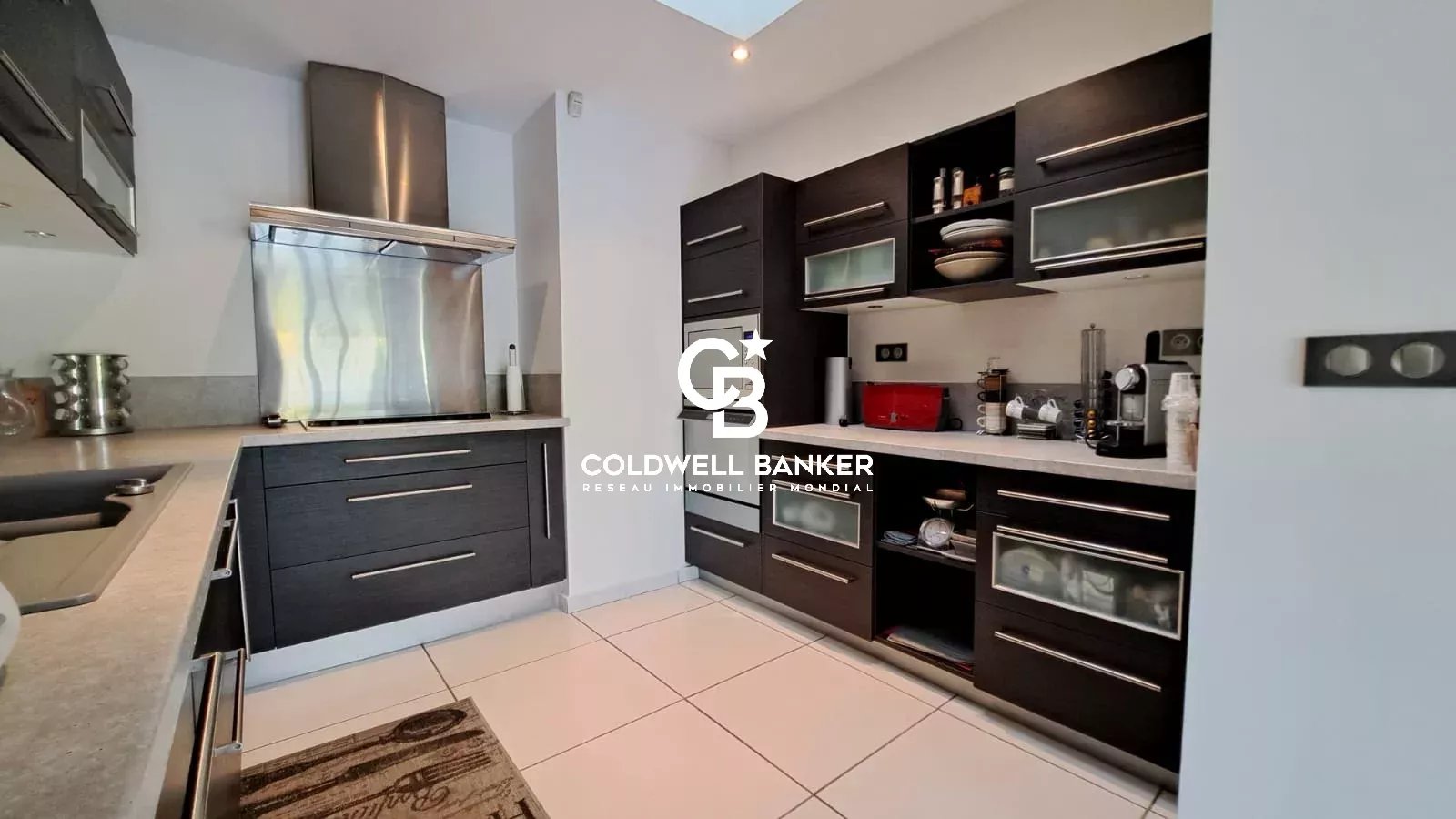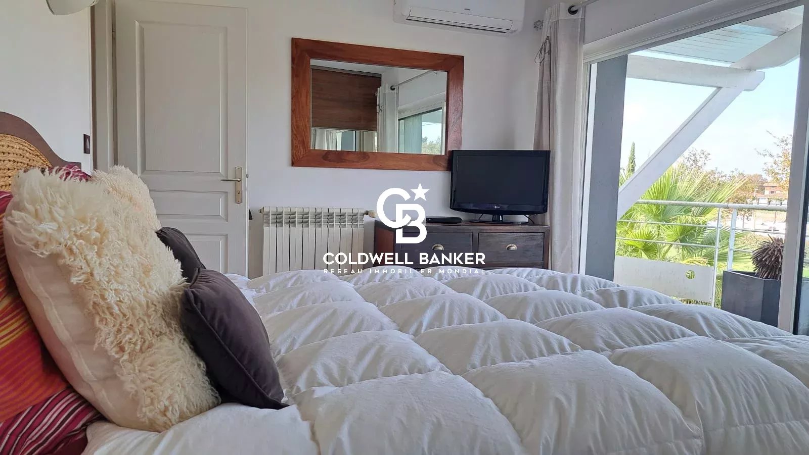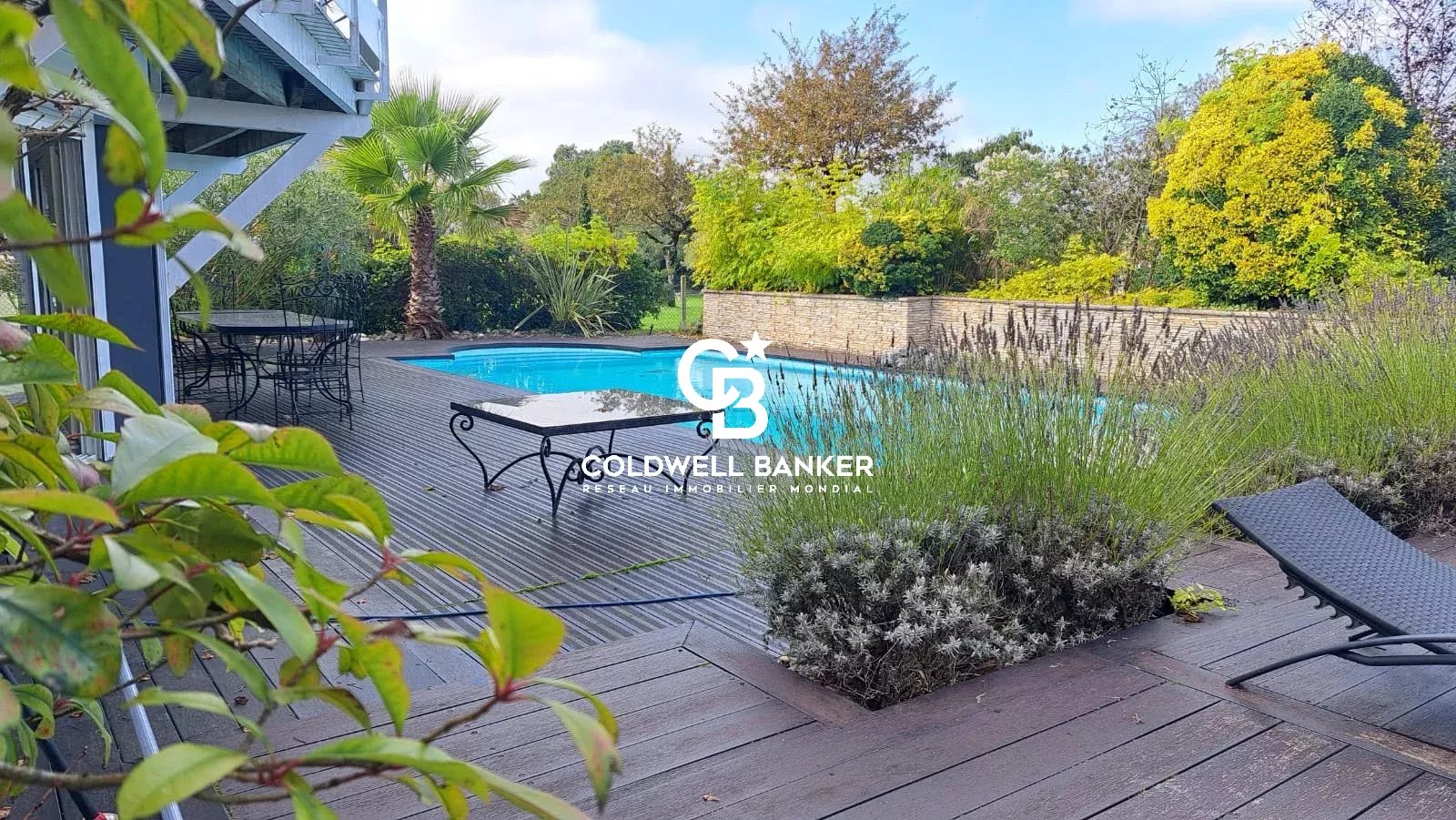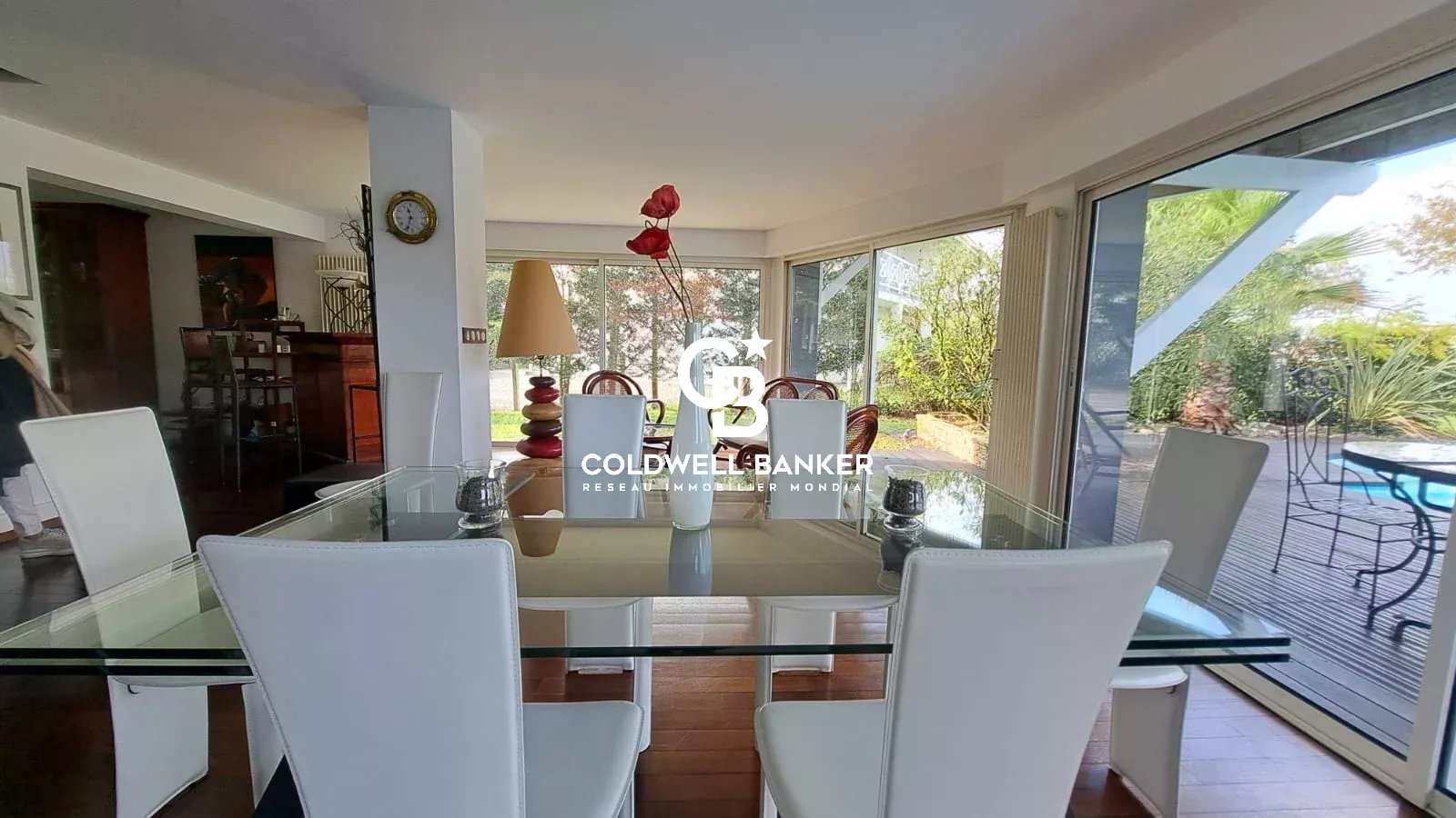 Coldwell Banker Immoba Realty Agence immobilière Andernos-les-Bains vous propose cette élégante villa contemporaine. Elle s'illustre par ses attributs remarquables. Au rez-de-chaussée, une vaste pièce de vie déployant plus de 100 m² s'ouvre gracieusement sur la terrasse et la piscine, tout en abritant une suite parentale d'exception. Un espace buanderie ainsi qu'un spacieux garage attenant complètent cet espace avec raffinement. À l'étage premier, une mezzanine abrite un espace de bureau qui distribue avec élégance trois chambres, dont deux sont des suites luxueuses. Toutes les chambres offrent l'accès à de ravissants balcons ou terrasses. Au dernier étage, aménagé actuellement en salle de sport, vous aurez le privilège de contempler une vue incomparable sur le bassin. Le jardin paysager, rehaussé par une profusion d'essences végétales, s'enrichit d'une piscine chauffée par pompe à chaleur au sel. Chauffage au gaz, climatisation réversible et cheminée ! Le Diagnostic de Performance Énergétique est de catégorie C (124 kWh/m²/an), les émissions de Gaz à Effet de Serre sont de catégorie B (9 kg CO²/m²/an). Les coûts énergétiques annuels pour le logement sont estimés entre 1 720 € et 2 400 €. Le prix du bien est 1 148 900 € HAI, les honoraires de l'agence de 48 900 euros TTC équivalant à 4,45 % du prix Net Vendeur, sont inclus et à la charge de l'acquéreur. Les informations relatives aux risques potentiels inhérents à cette propriété sont accessibles via le site Géorisques : www.georisques.gouv.fr. Pour tout complément d'information, nous vous invitons à contacter Madame Christine BIANCHI, dont l'inscription au RSAC est enregistrée sous le numéro 854 067 626, RCP sous le numéro 60660388. Retrouvez tous nos biens sur IMMOBA.