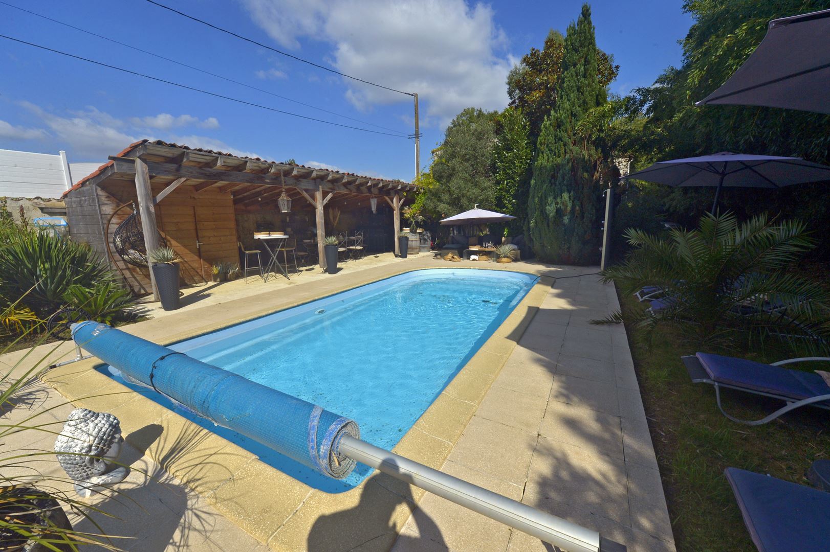 Le pool house, d'environ 40 mètres carrés, est semi-ouvert et comprend une zone de repas, un coin cuisine, une douche et un WC. La propriété permet de stationner plusieurs véhicules et est équipée d'un portail électrique motorisé ainsi que d'un système d'alarme. À seulement un kilomètre, vous trouverez tous les commerces, écoles et établissements de santé. La maison est située à quinze kilomètres environ de Royan et des plages, et à vingt minutes de Saintes et de l'autoroute.