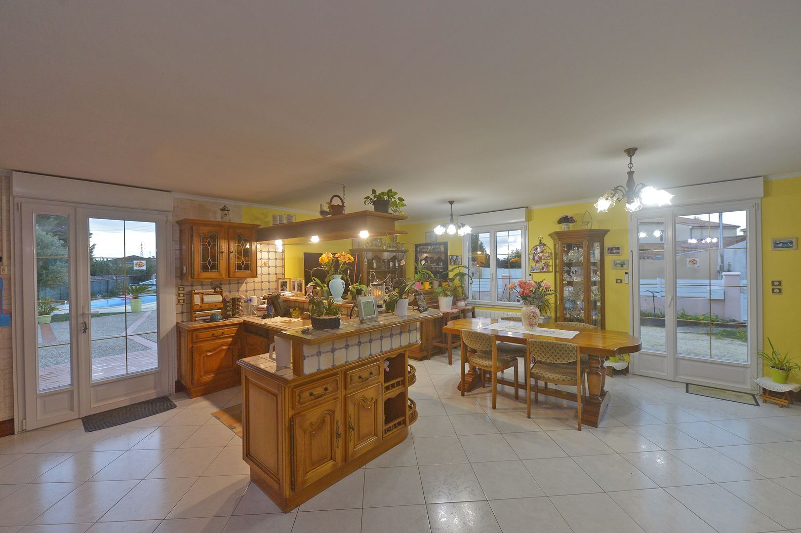 Secteur Saujon, dans le sud de la Charente-Maritime, se trouve une grande maison familiale orientée plein sud, d'une surface de 125 mètres carrés, sur un terrain entièrement clos de près de 922 mètres carrés. À l'entrée, une loggia mène à un vaste hall qui dessert un bureau pouvant servir de chambre, une salle de bains équipée d'une baignoire et d'une douche à l'italienne, une belle chambre, un WC indépendant, ainsi qu'un salon et un séjour comprenant une grande cuisine en chêne massif. Vous trouverez également une buanderie, un second WC indépendant et un garage avec accès à un petit grenier par un escalier. Le séjour s'ouvre sur une terrasse surplombant le jardin et la piscine.