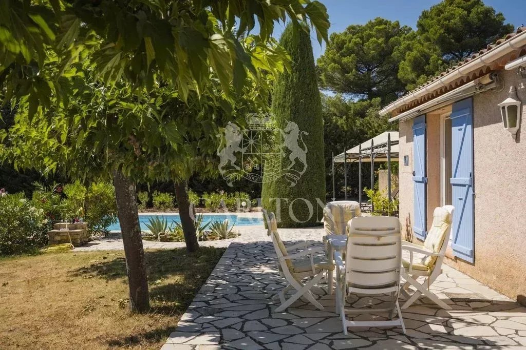 Ce domaine s'étend sur 1,6 hectare de terrain et comprend une maison principale, une maison d'amis/concierge et un autre gîte adjacent à la piscine de 5 x 15 m. La maison principale (143,53 m²) offre un vaste séjour avec une cheminée monumentale équipée d'un insert, une cuisine entièrement équipée avec un îlot, une salle à manger, trois chambres chacune avec sa propre salle de bains ou salles d'eau, et la chambre principale qui donne directement sur les grandes terrasses partiellement couvertes. Vous pourrez y profiter du calme et prendre vos repas en plein air. Derrière la maison principale se trouve la maison d'amis/concierge (119,27 m²), avec un séjour spacieux, une cuisine entièrement équipée avec cellier, un bureau, et 2 chambres chacune avec leur propre salle de bains, ouvrant sur plusieurs terrasses. Cette maison est également équipée de chauffage au sol. Plus loin sur la propriété, à côté de la piscine, se trouve le deuxième gîte (70,24 m²) avec un grand séjour, une cuisine équipée, 2 chambres avec leurs propres salles de bains en suite, toutes avec un accès direct à la terrasse et à la piscine. La piscine est entourée de terrasses, offrant une vue sur l'oliveraie d'environ 100 oliviers, un verger, une petite vigne, un potager, une terrasse avec un barbecue/four à pizza, un terrain de pétanque, et en arrière-plan, les collines avec le beau village de Tourtour. Derrière les arbres fruitiers se trouve une ancienne grange en pierre actuellement utilisée pour ranger le matériel de jardinage, mais qui (après modifications) pourrait être réaffectée. Chaque maison dispose d'un carport, 2 grands pour plusieurs voitures, et il y a un espace de stationnement supplémentaire. Trois portails électriques séparés donnent accès à chaque maison du domaine. Toutes les maisons sont parfaitement entretenues. Un ensemble harmonieux, idéal pour une grande famille avec une maison pour les parents et/ou le personnel, ou pour générer un revenu confortable grâce à la location saisonnière. Les frais d'agence sont à la charge du vendeur. Les détails du certificat de performance énergétique (CPE) pour chaque maison sont disponibles sur demande. Réf. : 15461