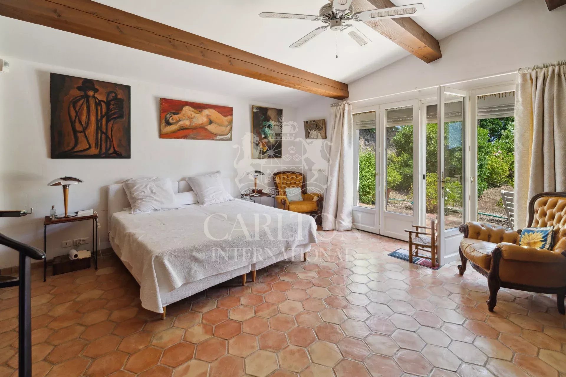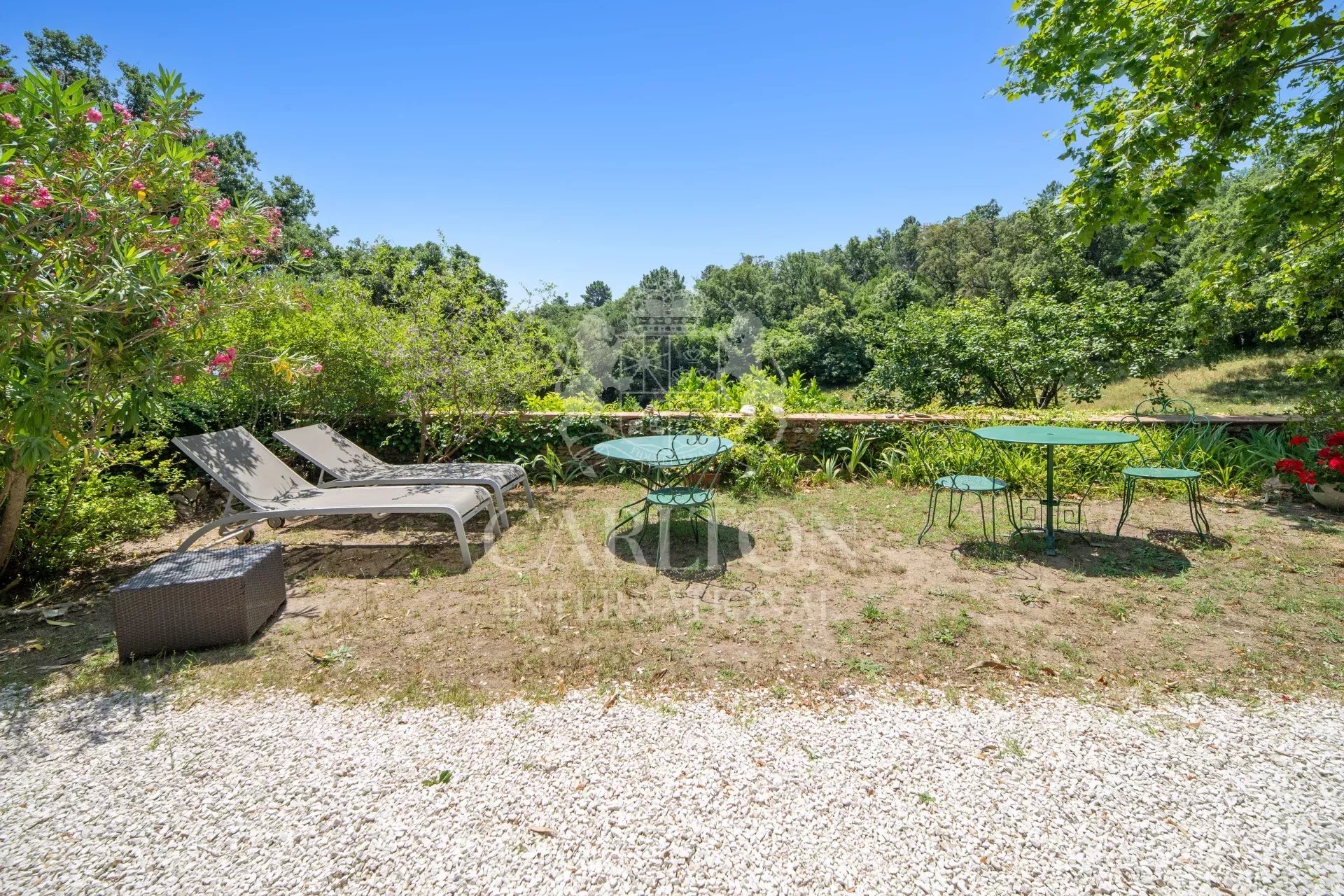 À seulement 5 minutes du village de La Garde-Freinet, sur plus de 10 hectares de terrain, une rareté dans la région, découvrez cette ancienne bergerie qui allie à la perfection charme de l’ancien et confort moderne, comprenant une maison de gardien ou d’amis indépendante ainsi qu’un double garage. Idéal pour les amateurs de tranquillité et d’authenticité, tout en restant proche des plages et du cadre de vie glamour de Saint-Tropez. Le bâtiment principal, avec ses murs en pierre apparente et ses poutres en bois, comprend une entrée avec cheminée, une cuisine entièrement équipée avec buanderie séparée et cave à vin. Le séjour de 75 m² offre un accès direct à l’extérieur. Il dispose également d’une spacieuse suite parentale avec portes-fenêtres ouvrant sur le jardin, une salle d’eau et des toilettes séparées. À l’étage se trouvent trois chambres, dont une avec cheminée, ainsi qu’une salle de bains avec baignoire. La maison de gardien, à rénover, est située à 75 mètres de la bâtisse principale. Elle comprend un séjour avec cheminée, une cuisine, trois chambres, une salle de bains et la climatisation réversible. Elle bénéficie également d’un grand terrain et d’agréables vues dégagées. La propriété offre la possibilité de créer une piscine, bénéficie de l’eau de la ville et dispose de deux sources idéales pour l’arrosage du jardin. Fibre optique à proximité. Un grand espace de rangement sur le côté gauche de la maison pourrait être transformé en une pièce supplémentaire. De plus, un double garage indépendant avec espace de stockage complète l’ensemble. Parfait pour une vie paisible dans un cadre naturel, ce domaine rare est un véritable havre de paix, à proximité de toutes les commodités. Réf. 15740