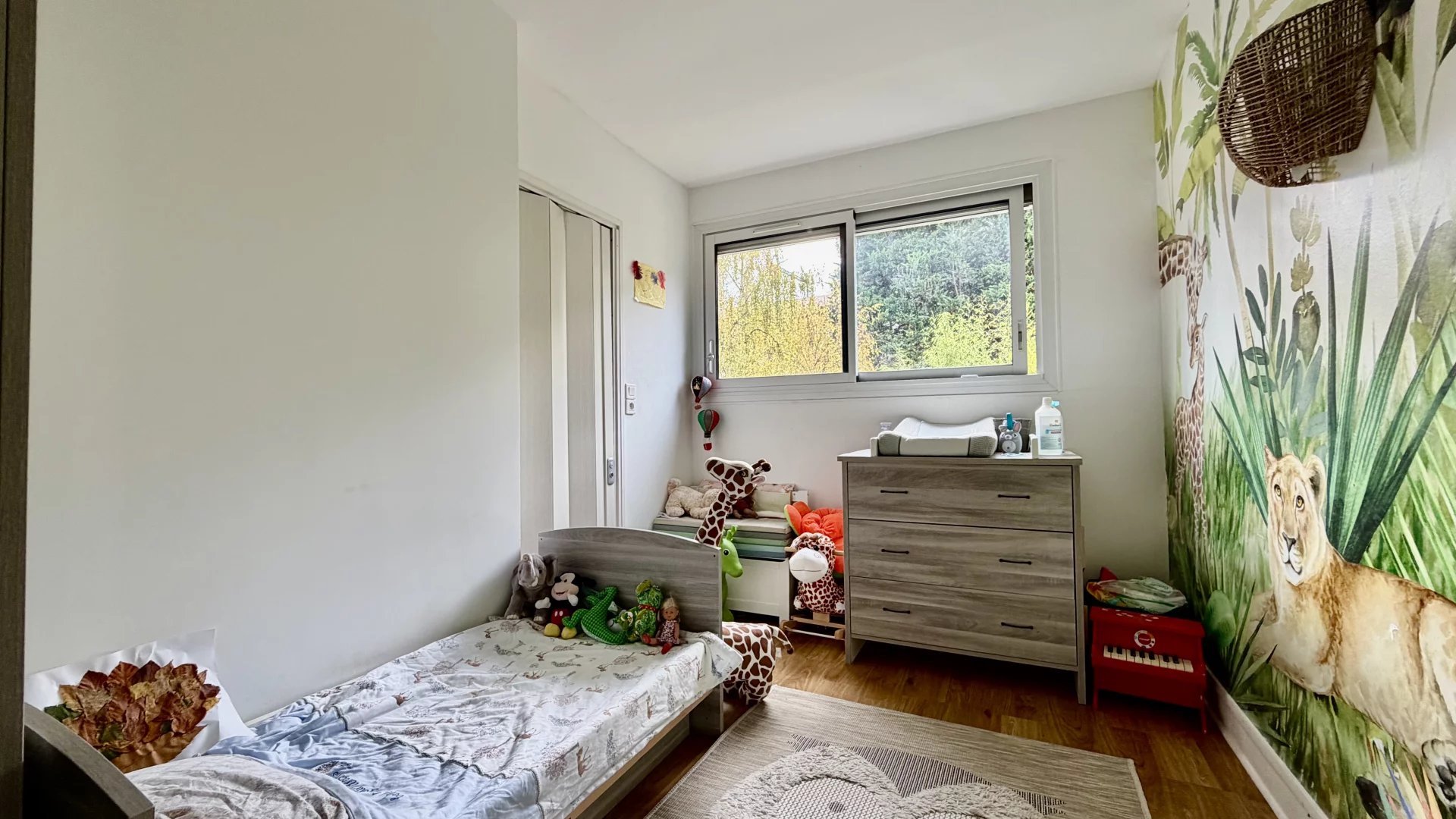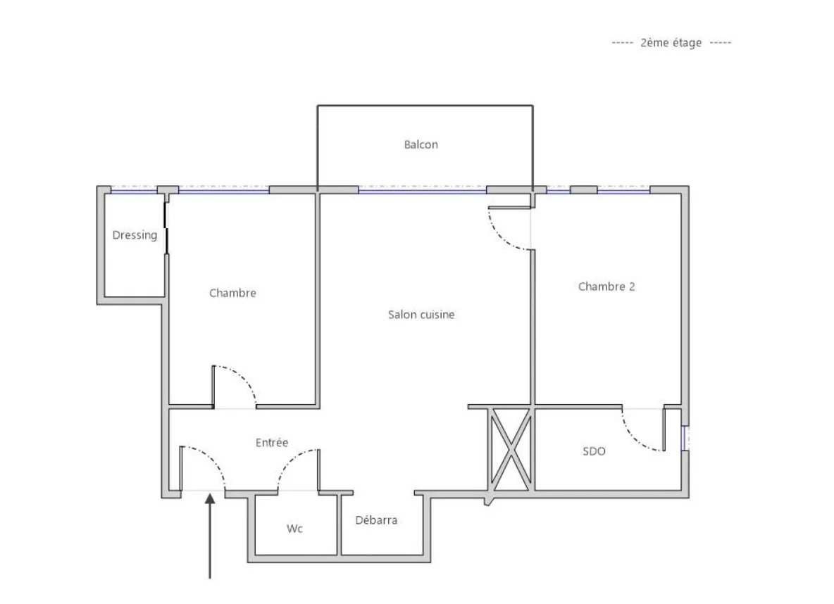 Cet appartement, idéal pour une petite famille, se compose d'une entrée, un séjour ensoleillé avec cuisine ouverte, plein sud et sans vis-à-vis sur un grand balcon, une chambre d'enfant avec petit dressing, et une chambre parentale avec salle de douche attenante. Un WC se trouve dans l'entrée. L'appartement est en bon état. Le chauffage est collectif. Il est possible de louer un parking dans la copropriété.