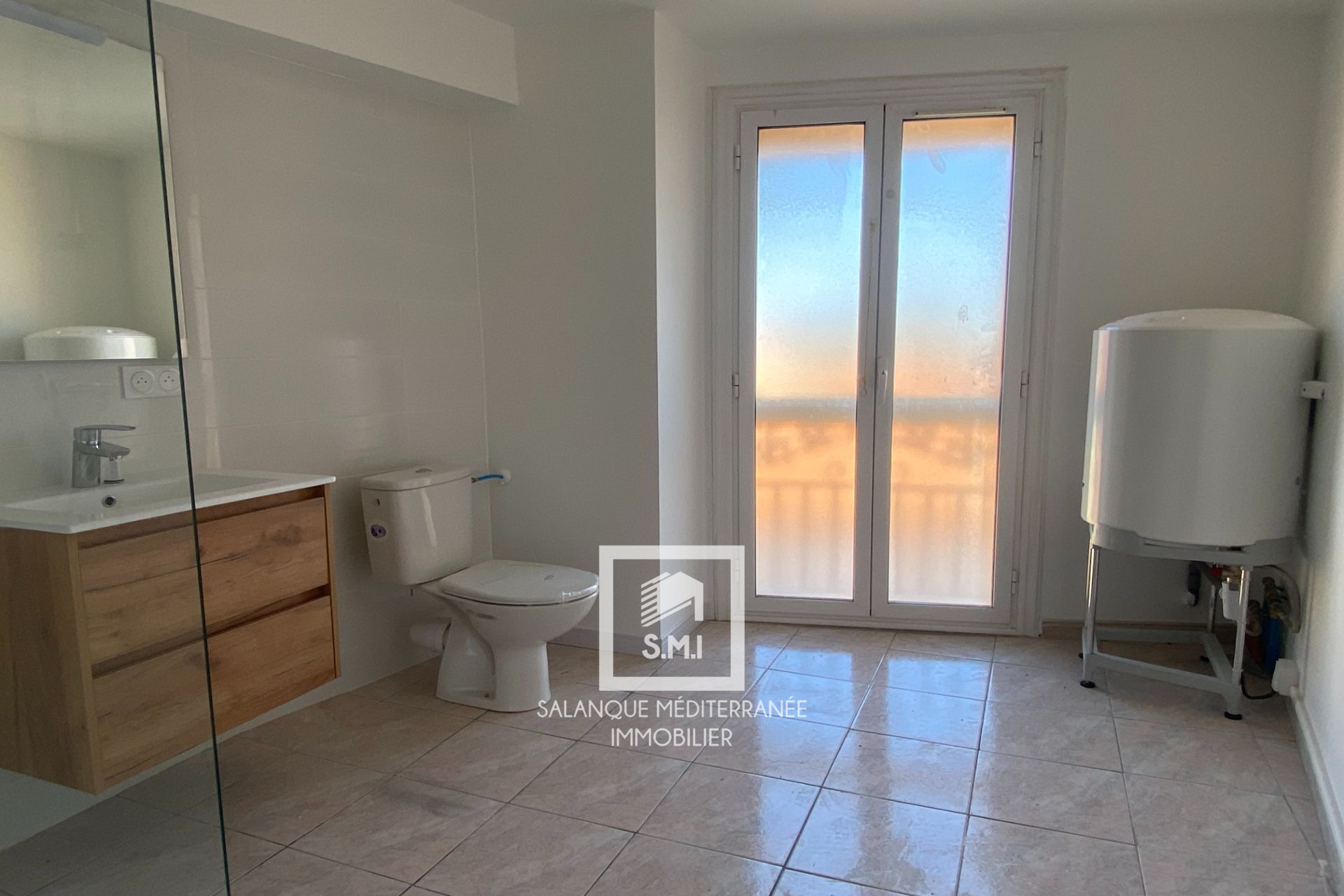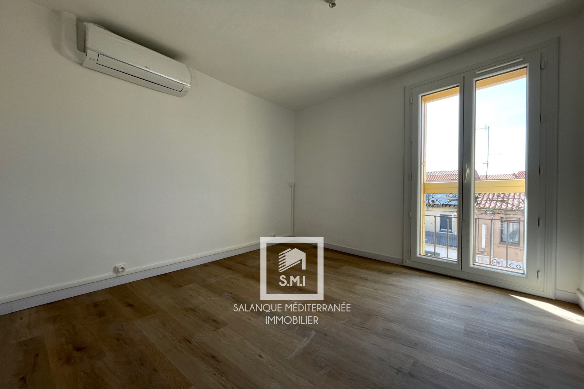 Cet appartement T3 entièrement rénové, se situe au deuxième étage d'un petit immeuble au centre-ville de Salses-le-château.