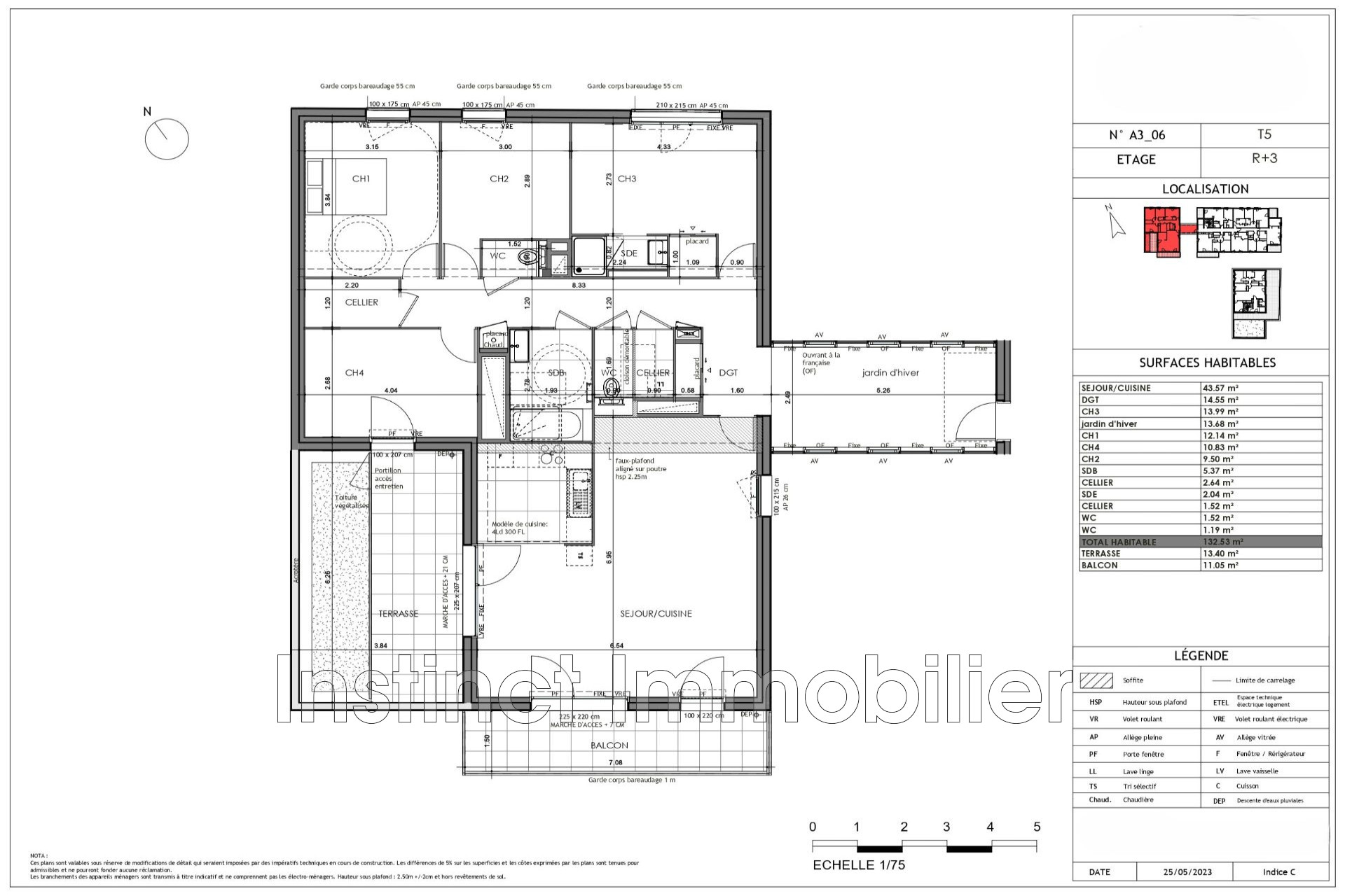 Situé au 3ème étage d'une résidence neuve à l'architecture contemporaine, cet appartement 5 pièces de 132.53 m² séduit par ses volumes généreux, sa lumière naturelle et son jardin d'hiver de 13.68 m², rare sur le marché.