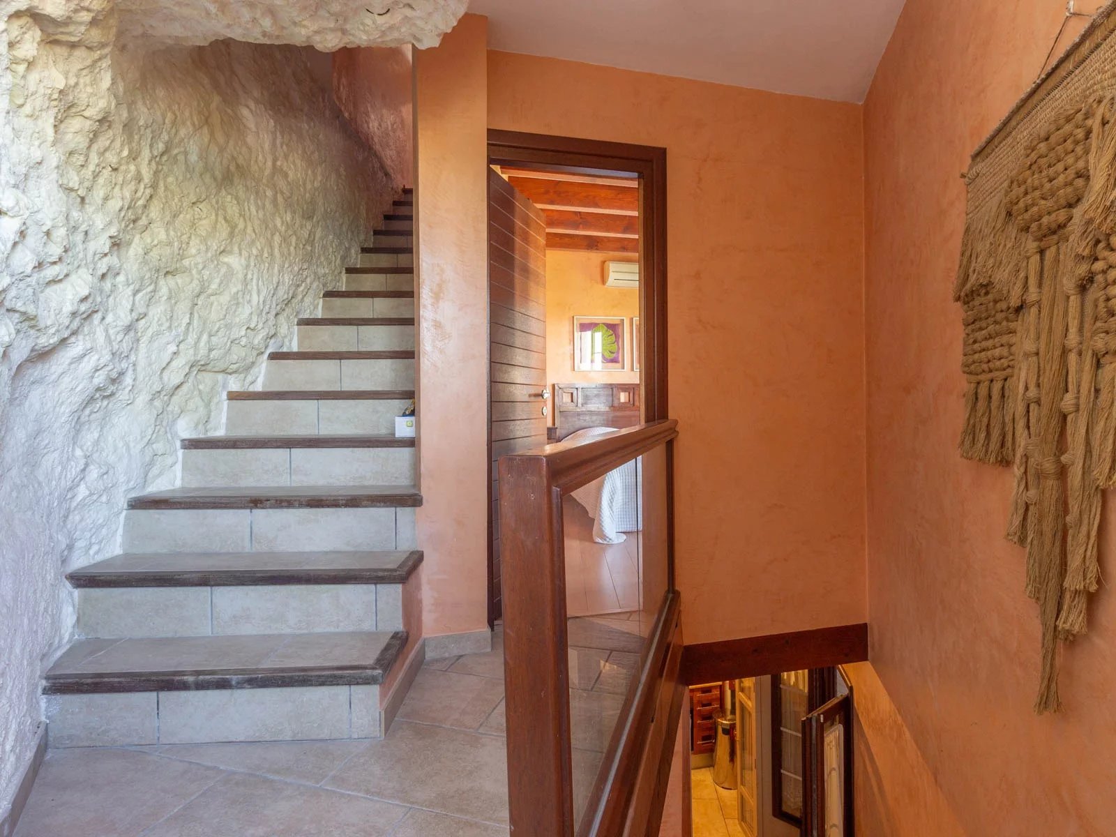 Située en plein centre-ville, avec vue sur la mer cette maison est atypique car elle est "accrochée à la roche". Répartie sur trois niveaux, elle allie confort et élégance dans un cadre exceptionnel avec une vue spectaculaire sur le port de Mahon, la capitale de Minorque. Au rez-de-chaussée, un salon chaleureux s'ouvre dans la roche, puis une salle à manger avec cuisine équipée et une salle de bains. Au premier étage, une grande chambre avec salle de bains attenante et balcon privé offrant une vue imprenable sur la mer. Au deuxième étage vous trouverez une seconde chambre avec salle de bains privative et une terrasse panoramique. Une occasion de vivre dans une maison unique, entouré de tranquillité, de confort et de beauté naturelle, tout en restant au cœur de la ville, proche des commerces et des transports.