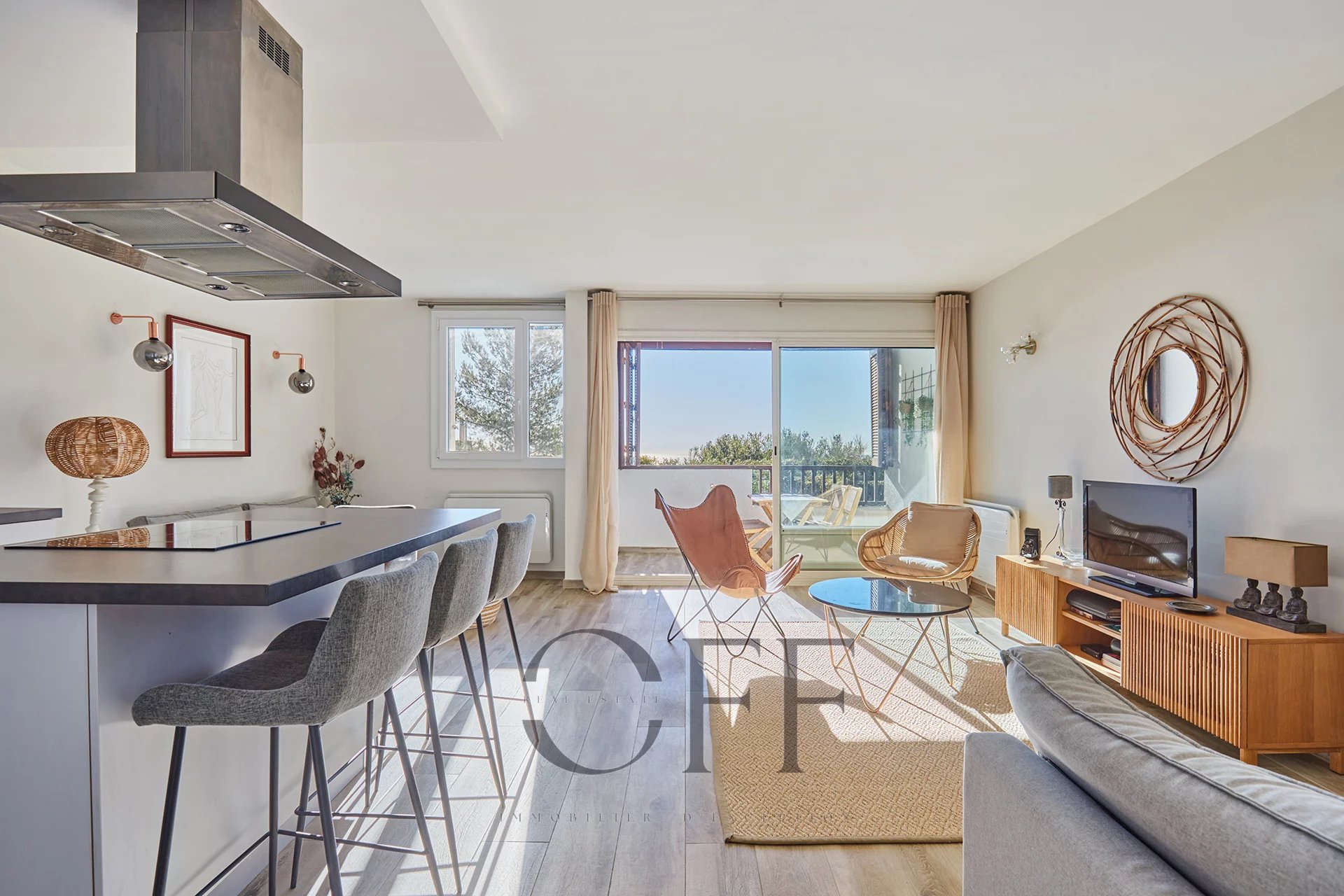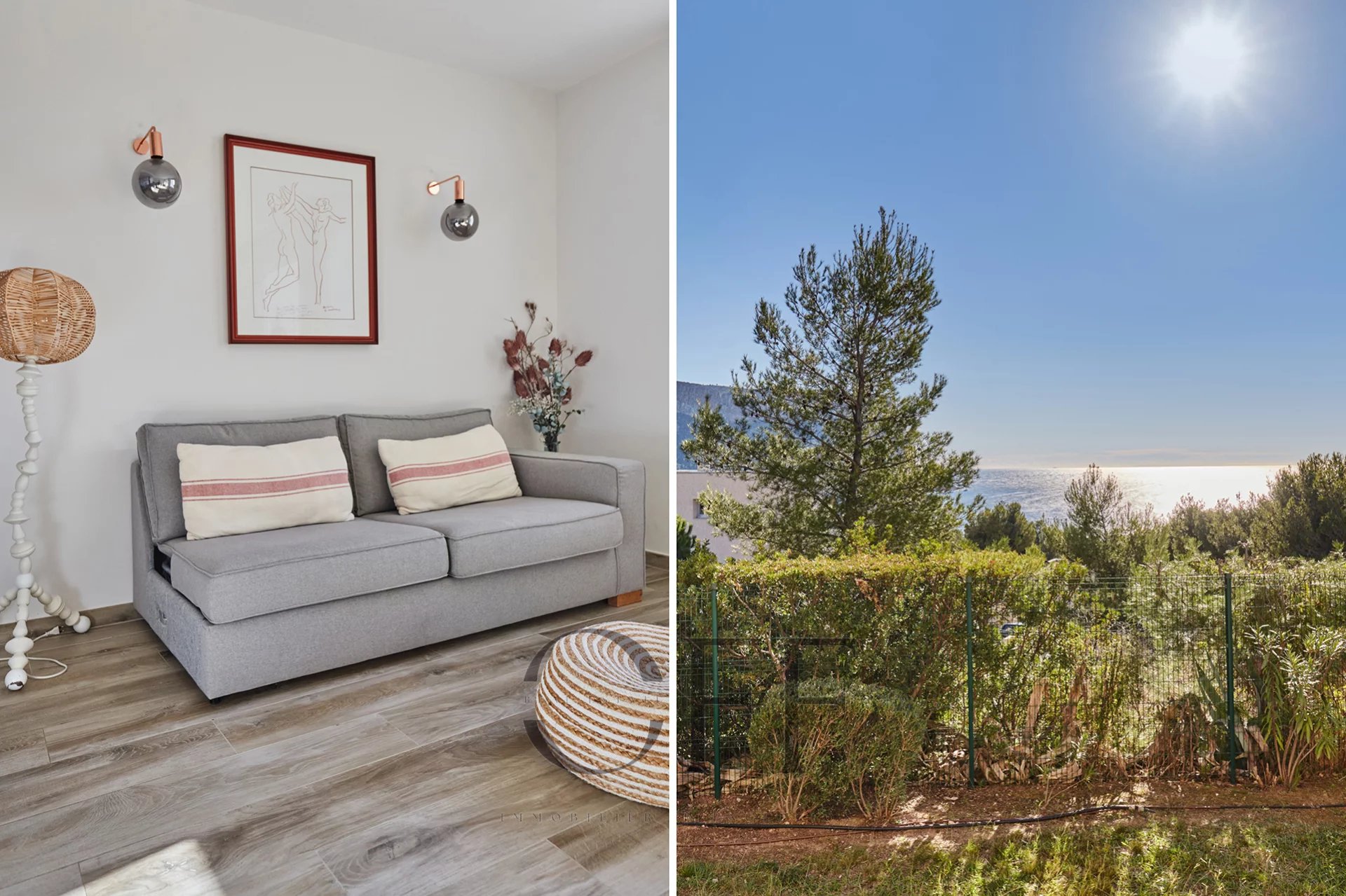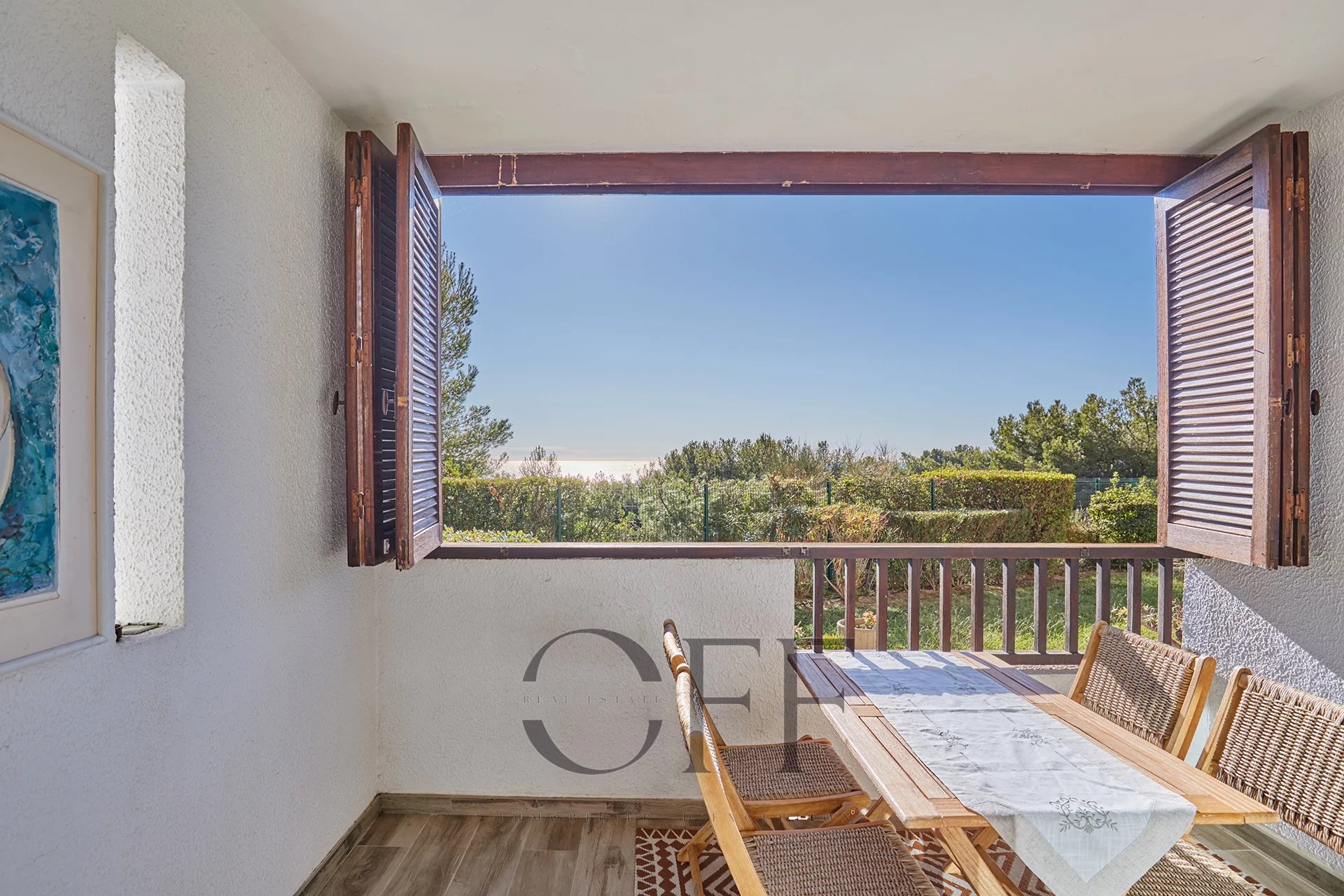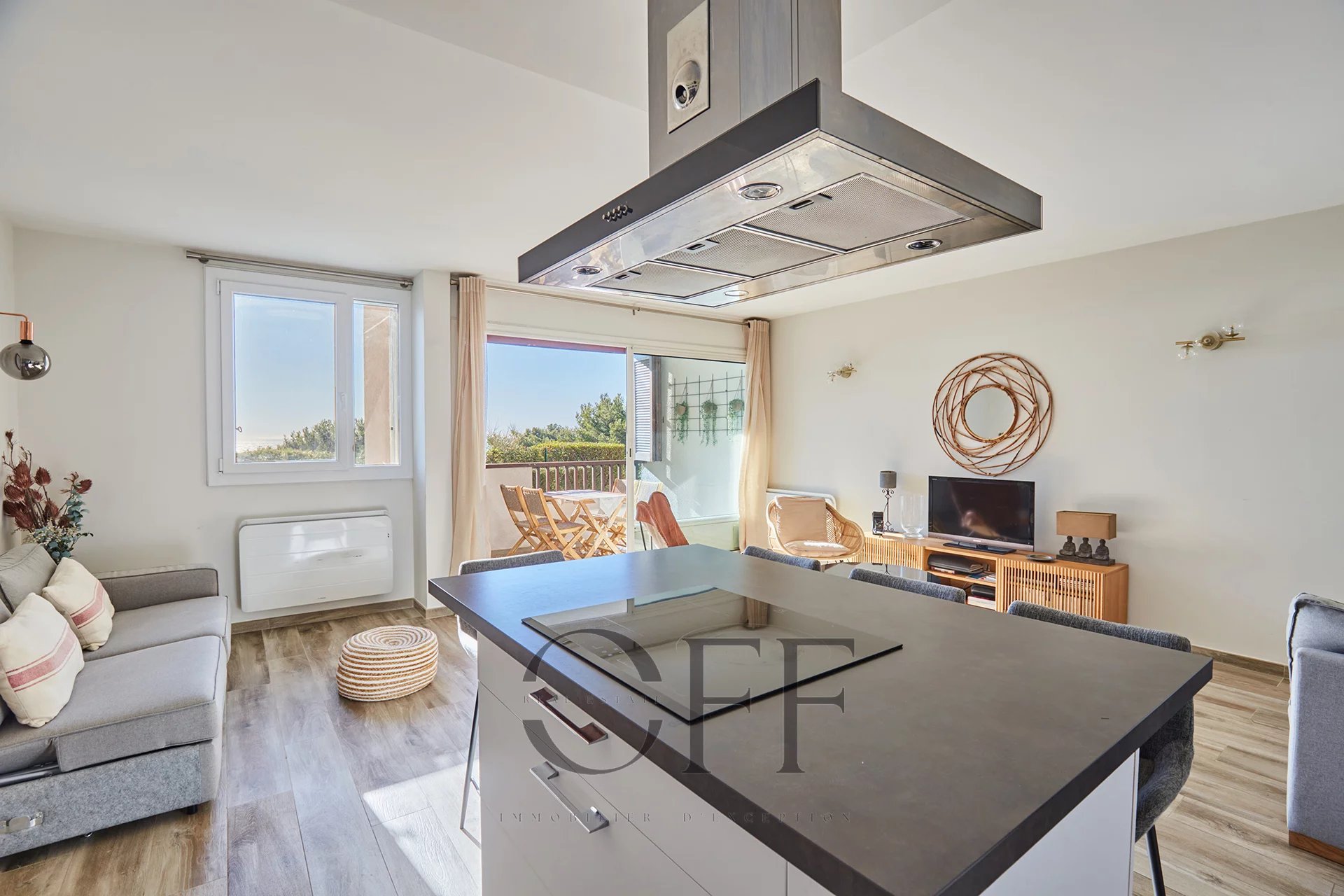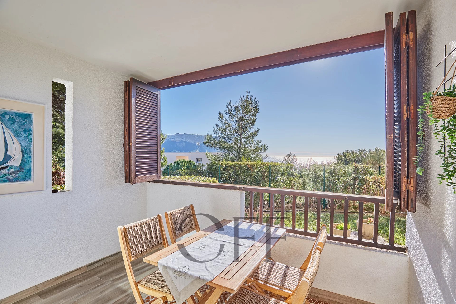 A quelques minutes du port et des calanques, en hauteur sur les collines, bel appartement situé en rez-de-jardin avec vue sur la mer sans vis-à-vis, au sein d'une résidence arborée avec une grande piscine, 2 courts de tennis, un terrain de pétanque, un terrain de football, 2 tables de ping-pong et 2 gardiens. Cet appartement se compose d'un vaste séjour avec une cuisine américaine équipée, d'une grande chambre avec fenêtre orientée Est et donnant sur jardin, d'une salle d'eau avec ouverture extérieure et d'un WC indépendant. Une terrasse couverte de 7m2 environ donne sur un jardin et ouvre sur une très jolie vue mer sans vis-à-vis. Une place de stationnement privative à proximité au sein de la résidence ainsi qu'une cave collective complètent ce bien. Pour plus d'informations et visites, contactez : Christine CAROUGE : +33 (0) 6 82 92 27 75 OFF REAL ESTATE : +33 (0) 4 91 36 40 29 RSAC 809 396 336 - Taxe foncière : 1204€/an - Honoraires inclus de 5% à la charge du vendeur - Surface : 59,44 m2 (loi carrez) Date de réalisation du diagnostic énergétique : 14/04/2025 - Classe énergie C et classe climat C - Consommation conventionnelle : 75kWh/m²/an - Estimation des émissions : 5kgCO2/m²/an - Montant estimé : entre 850€ et 1 180€ par an. - Charges de copropriété 167€/mois Les informations sur les risques auxquels ce bien est exposé sont disponibles sur le site : https://www.georisques.gouv.fr Conformément à l'article L.561-5 du Code Monétaire et Financier, veuillez prévoir une pièce d'identité lors de l'organisation de la visite.