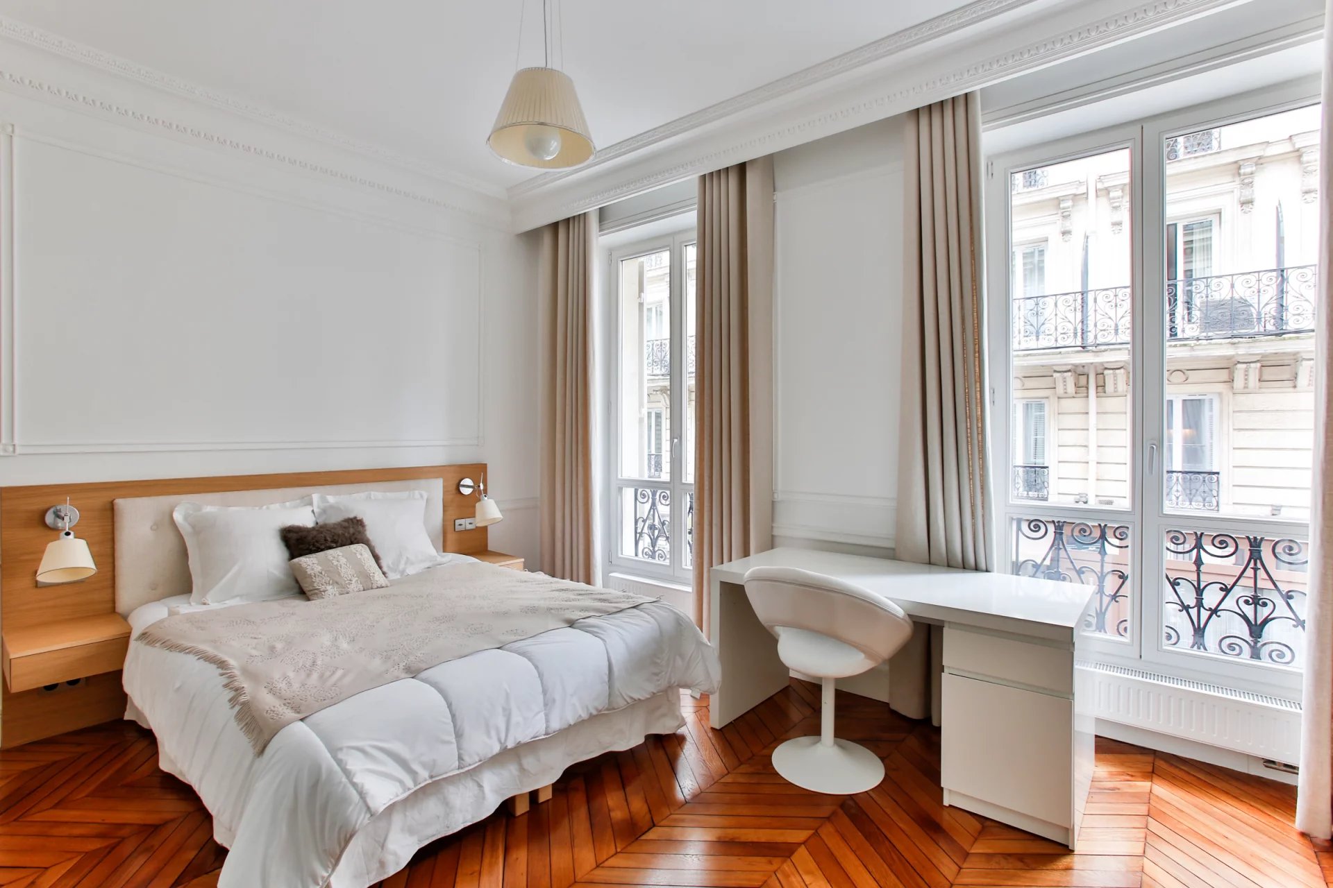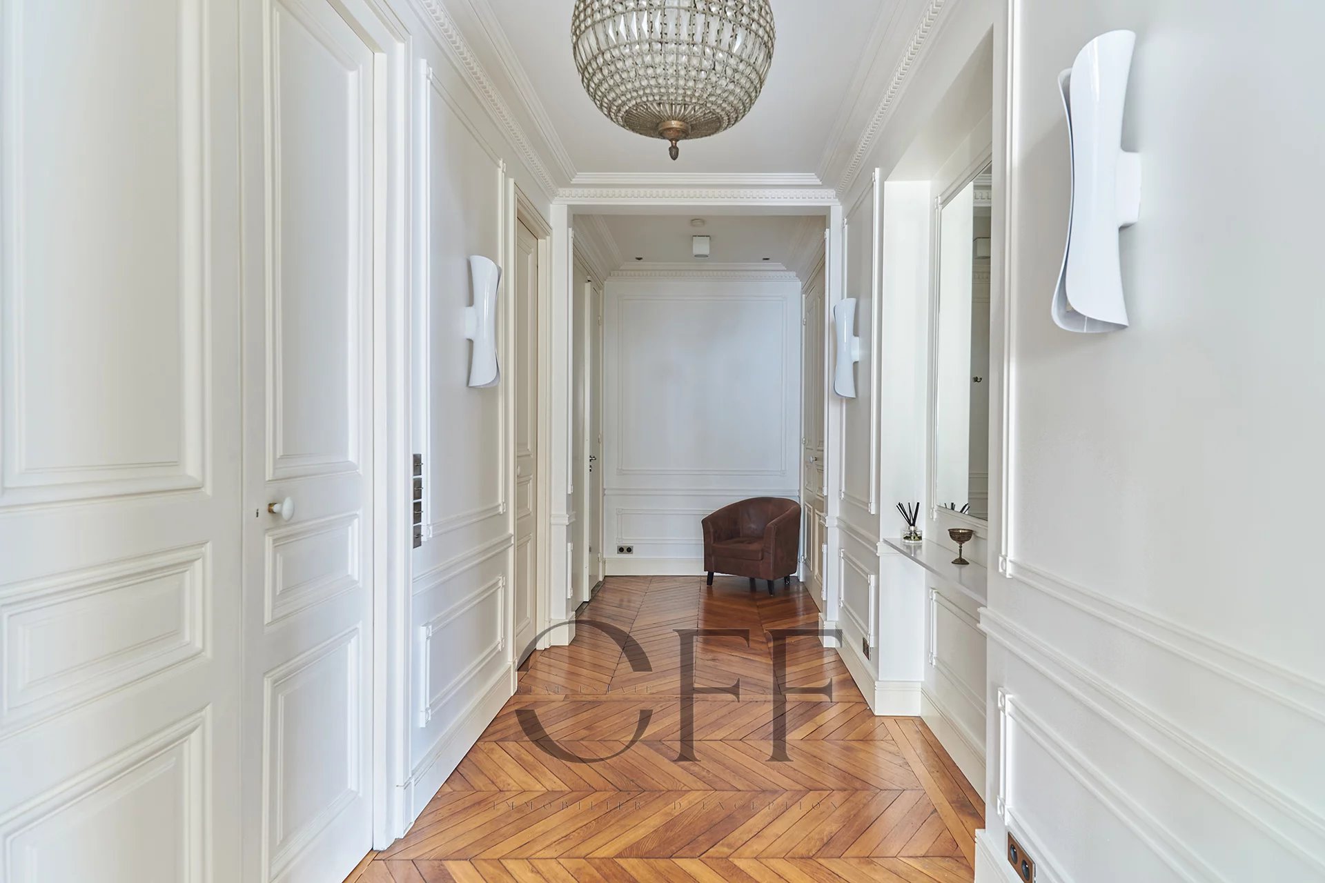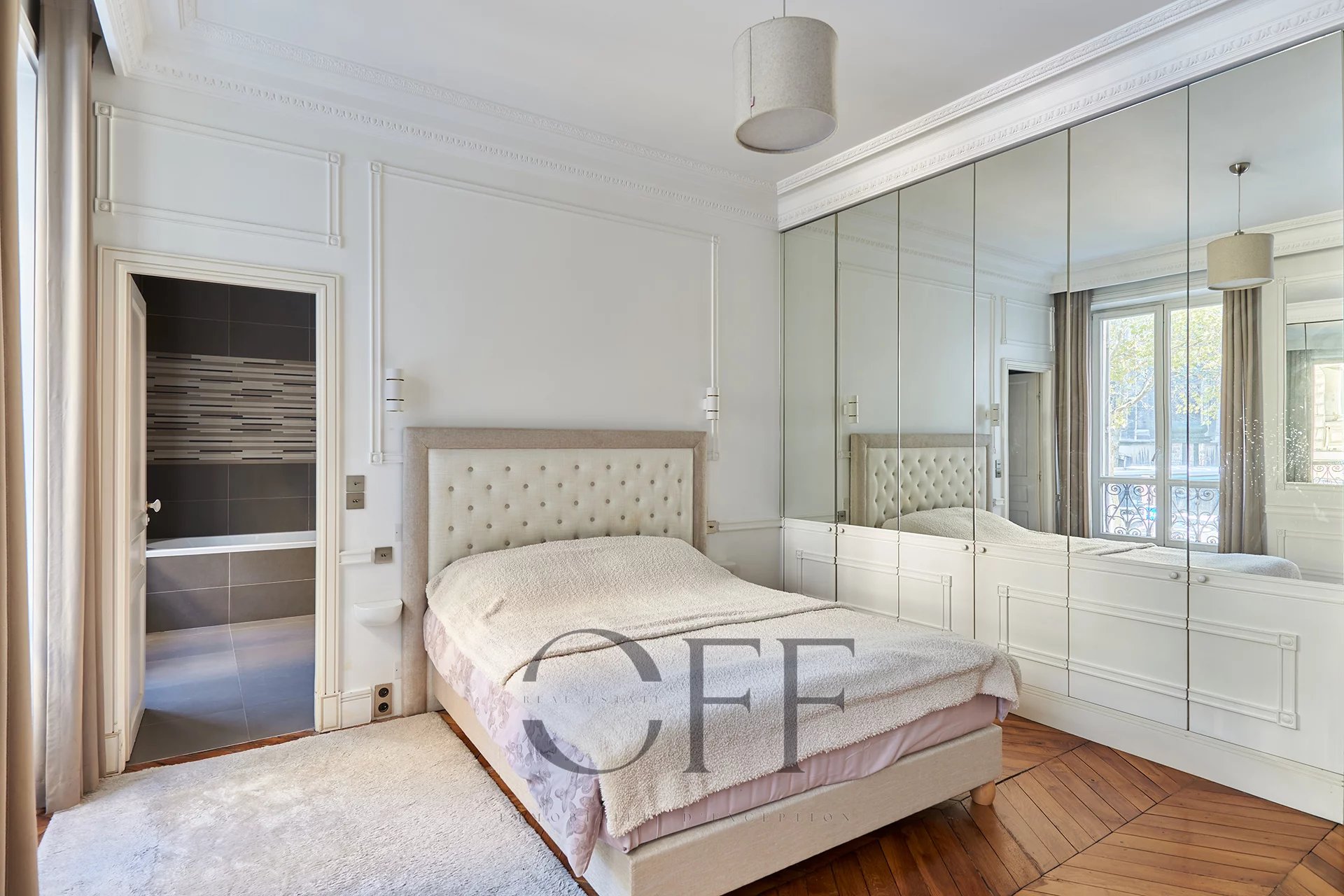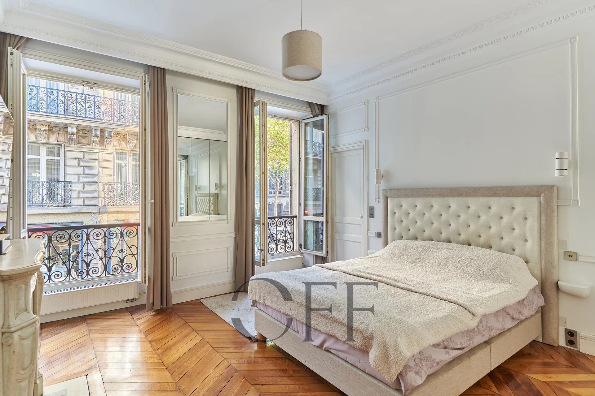 Dans un immeuble 1870, élégant appartement d’angle de 112 m² situé au 3ᵉ étage avec ascenseur. Il se compose d’un vaste séjour lumineux avec cheminée et moulures d’origine, d’une cuisine entièrement équipée, et de deux chambres. Chaque chambre dispose de sa propre salle de bains ou salle d’eau avec toilettes. Toilettes invités séparés. Hauteur sous plafond, parquet, charme et élégance des classiques haussmanniens. Une cave saine et parfaitement entretenue complète ce bien. Adresse recherchée, à proximité immédiate des commerces, des transports et des grandes artères du 8ᵉ arrondissement.