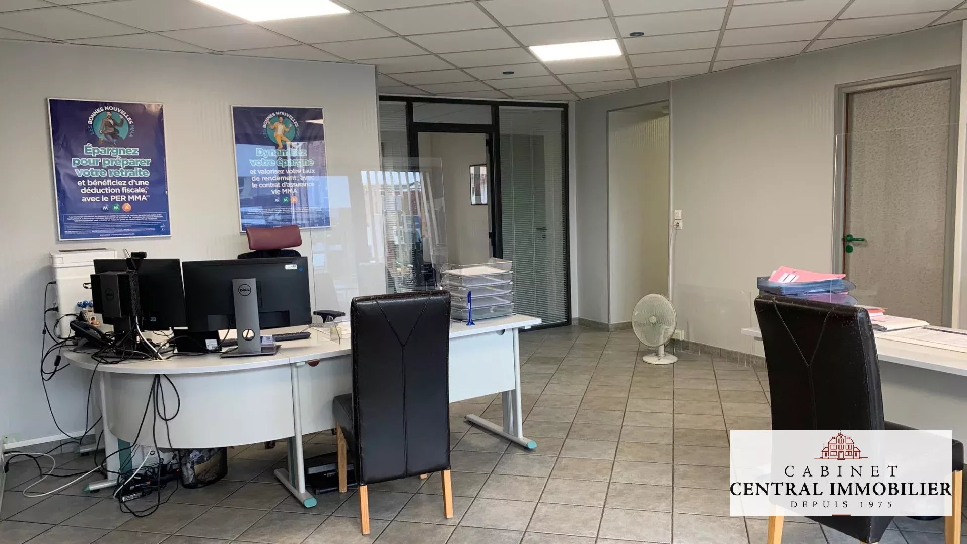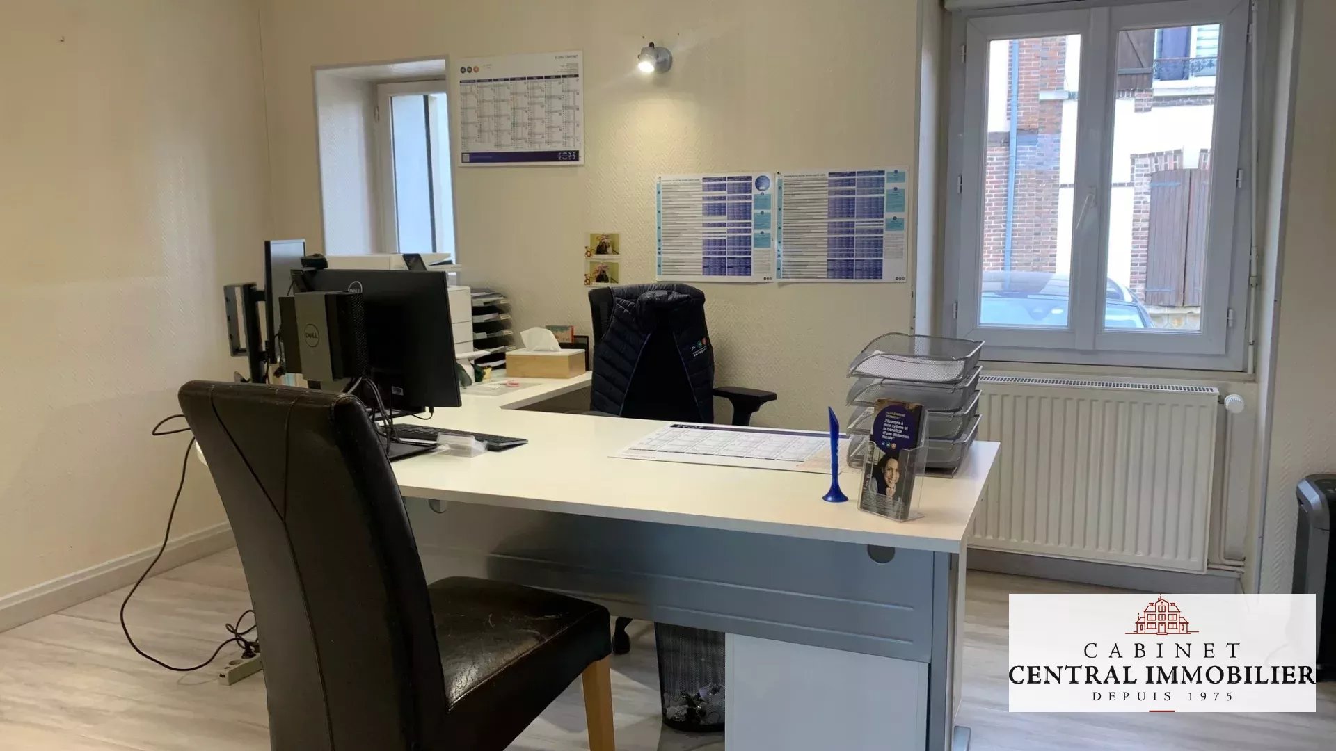 En hyper centre ville, emplacement idéal et visibilité maximum pour cet ensemble immobilier commercial comprenant 2 niveaux : - Au RDC loué 1900€ par mois : Un open space de 30.95m² avec vitrine et rangements, un bureau en parquet flottant de 15.10m², un débarras en sol vinyl de 3.34m², une pièce carrelée de 10.30m², une salle des archives de 6.50m², un WC avec lave mains, une chaufferie carrelée de 11m² avec accès cour arrière et accès cave, un bureau parquet flottant de 12.90m². - Au 1er étage libre : Une pièce palière en parquet chêne de 11m², une chambre en parquet chêne de 20.60m² avec une salle de bain de 7.60m², un WC et placard, une cuisine sol vinyl de 18.30m² avec évier, un dégagement avec accès aux combles(2 pièces), un séjour en parquet de 12m² avec cheminée et placards, une pièce parquet de 13.57m², deuxième accès aux combles aménageables. Chaudière gaz de ville. Double vitrage/PVC. Parking privé. Tout à l'égout.