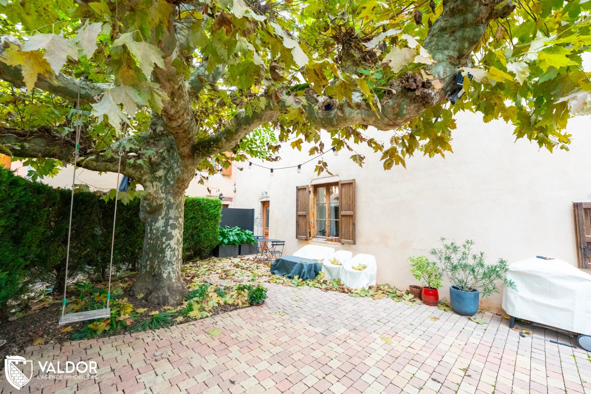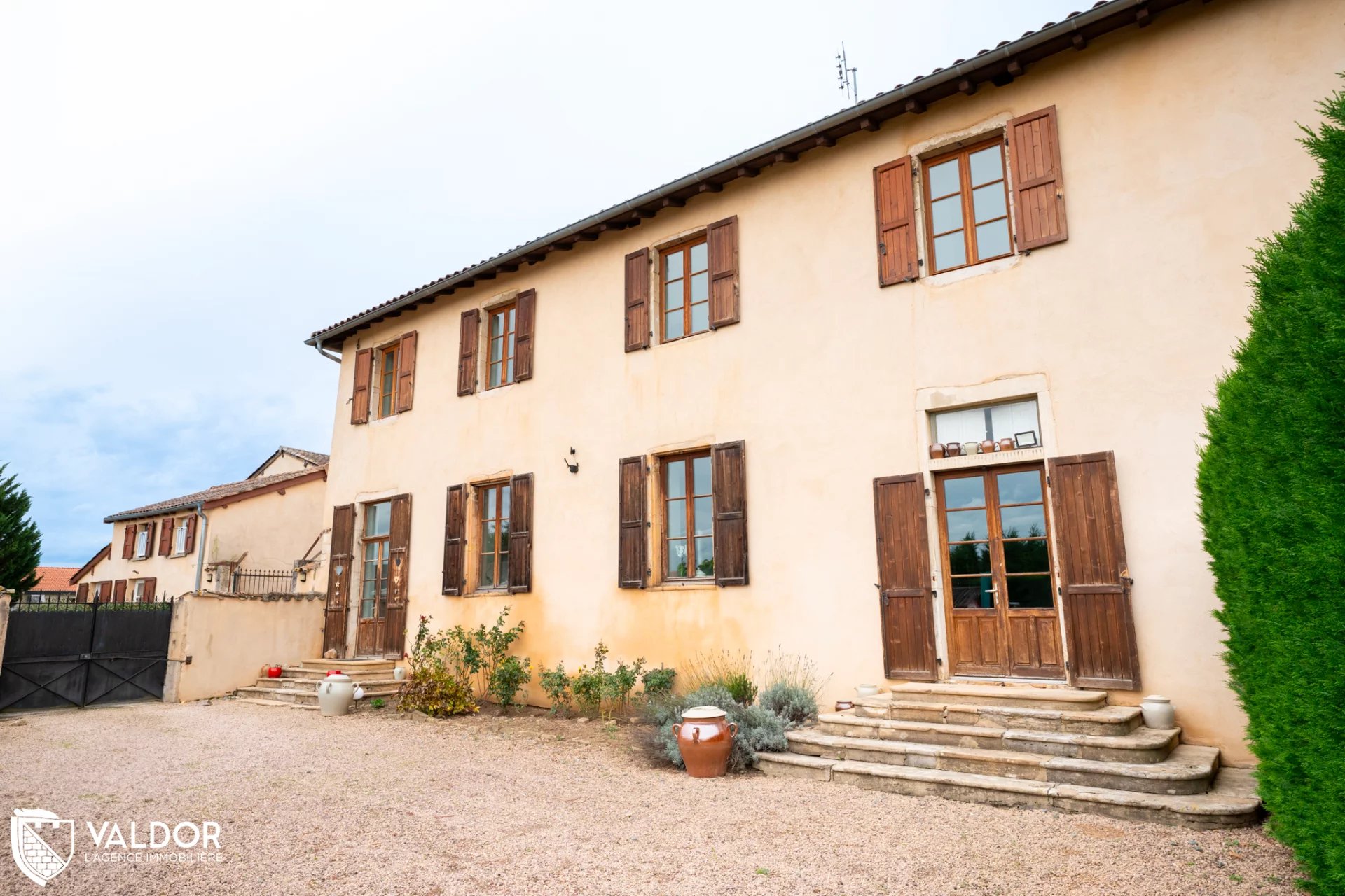 Exclusivité Catherine Sagnes agence Valdor Belleville Sur la commune de Taponas, dans une copropriété de 11 lots, venez découvrir cette maison mitoyenne ancienne et rénovée de 165m² sur 2 niveaux. Au rez-de-chaussée vous trouverez un hall d'entrée avec des toilettes, une pièce de vie spacieuse et fonctionnelle avec sa cuisine ouverte, un salon donnant accès à l'extérieur. A l'étage, un couloir dessert une salle d'eau, 3 chambres de 17 à 25m² et des toilettes. A l'extérieur une parcelle de 720² répartis en deux espaces exposés Est et Ouest et deux places de parking privatives pour vos invités. Pas de travaux à prévoir Si ce projet vous intéresse, n'hésitez-pas à me contacter pour organiser une visite. Catherine Sagnes : 06 58 00 73 35 Agence du Valdor Belleville RSAC Bourg en Bresse :848 238 721 Les informations sur les risques auxquels ce bien est exposé sont disponibles sur le site Géorisques: www.georisques.gouv.fr