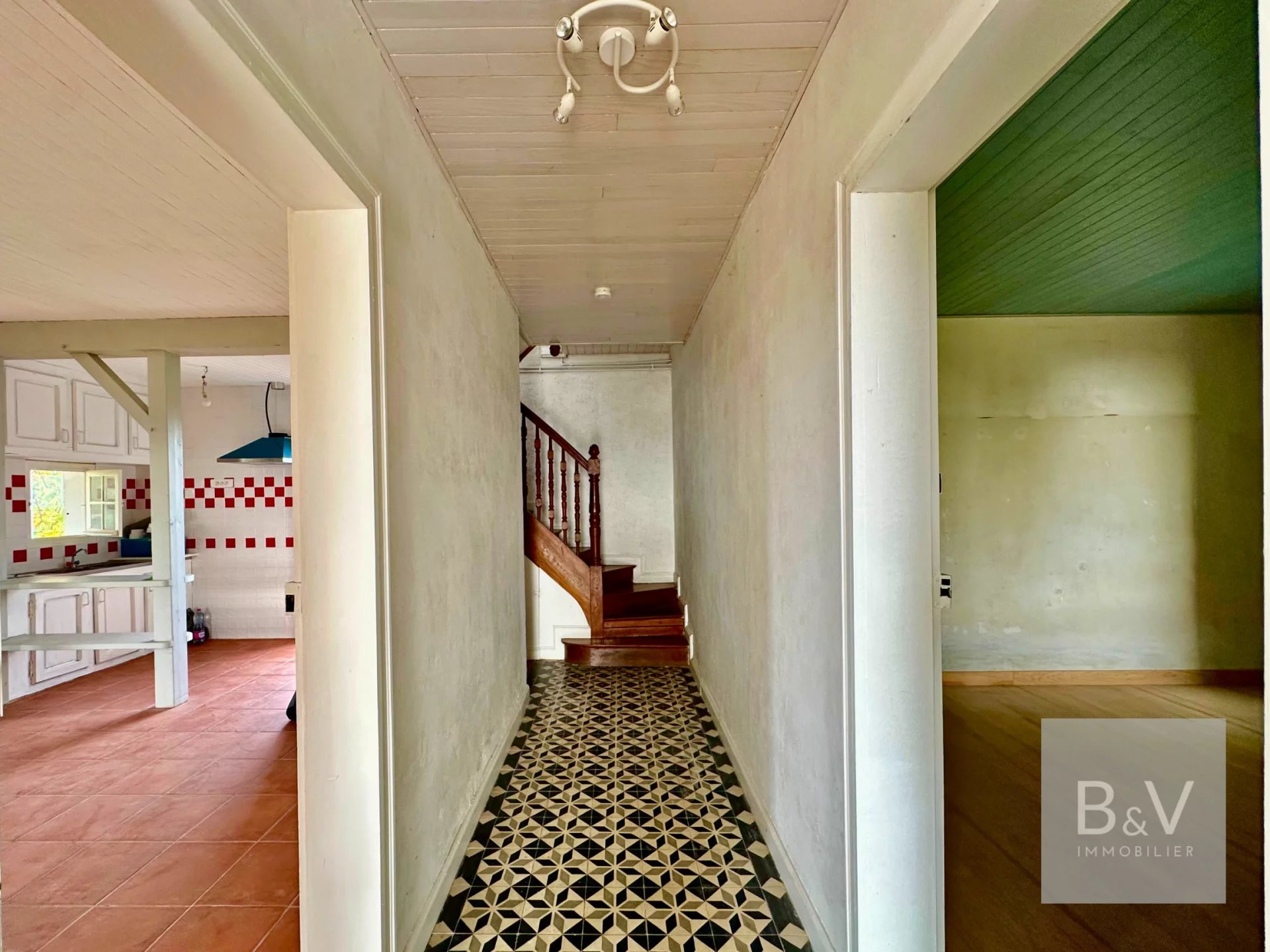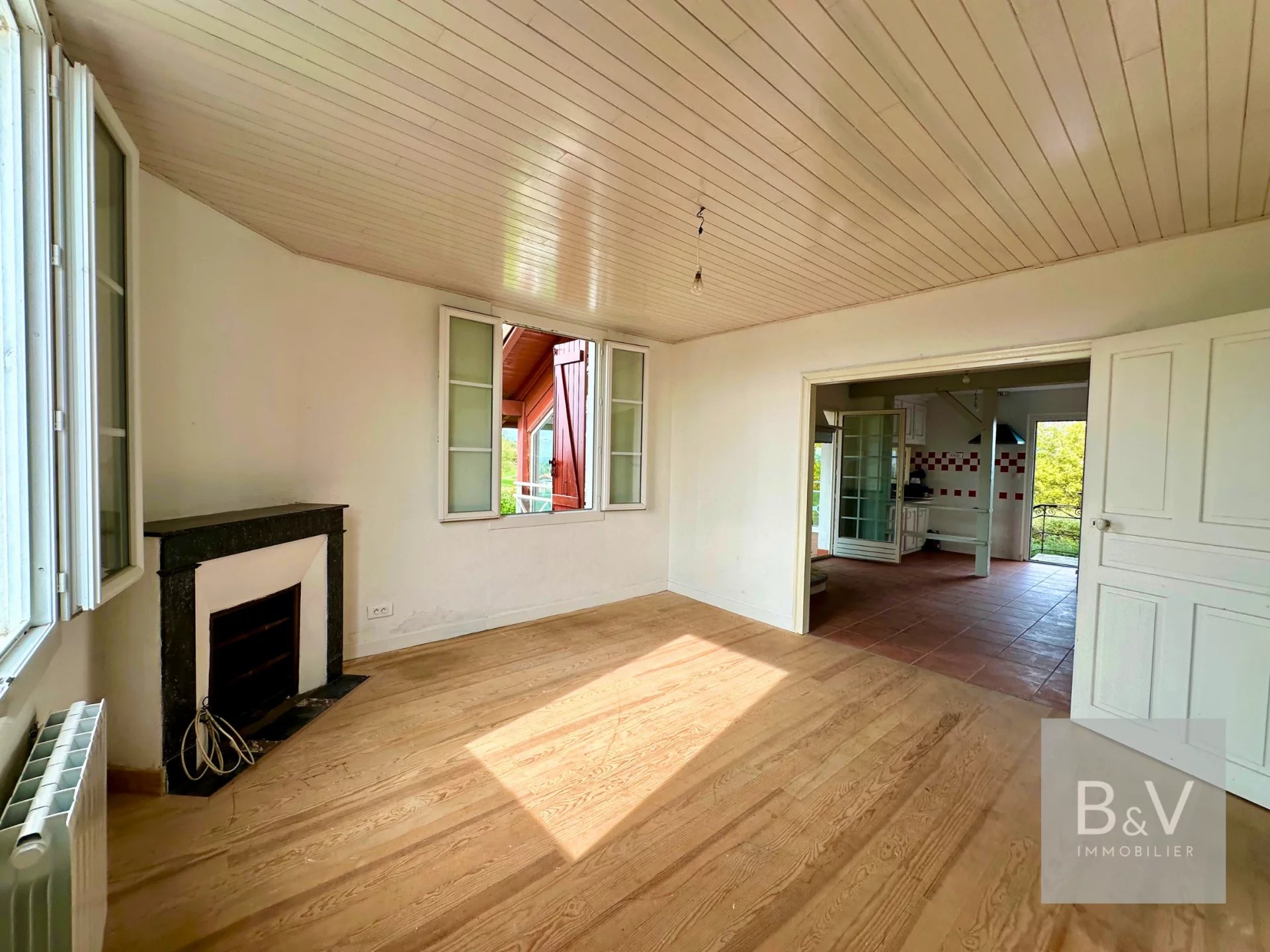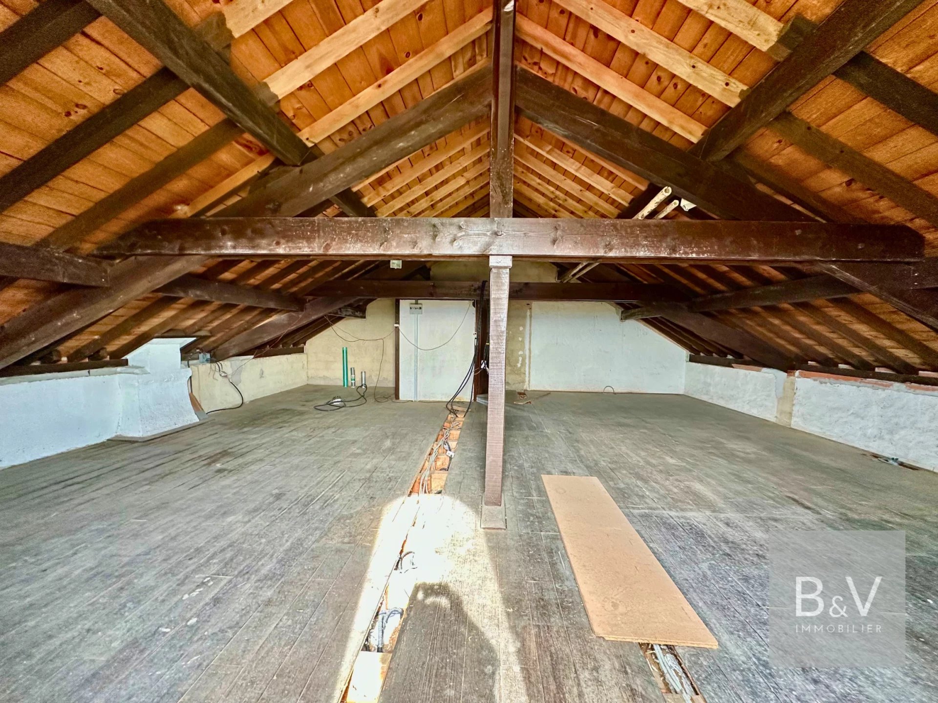 Scoprite questa piacevole casa di 83 m² + 15 m² di luminosa veranda in alluminio con doppi vetri (marchio Technal) al piano terra + 70 m² di mansarda trasformabile che beneficia di un'ottima altezza sotto l'intelaiatura del tetto a vista, permettendo di creare una vera e propria zona giorno (da 2 a 3 camere supplementari) grazie alla scala già presente.