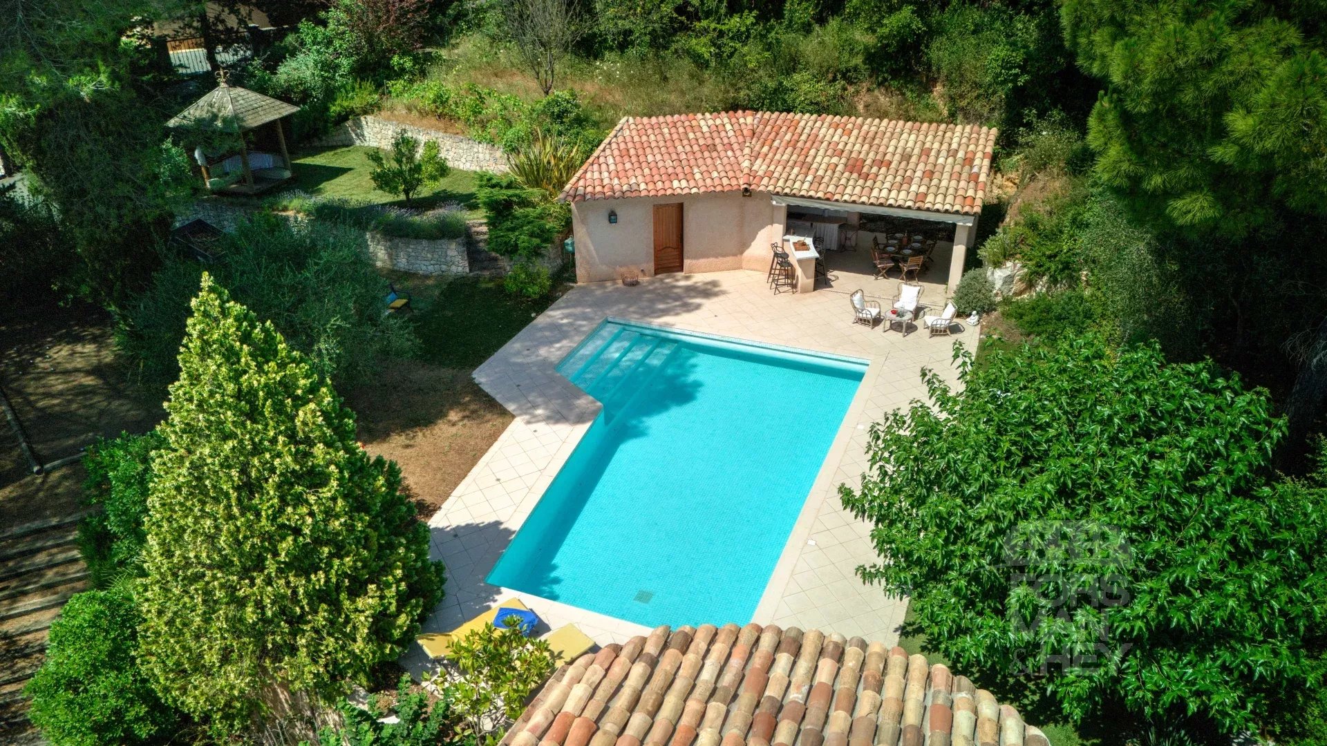 Côté extérieur, vous profiterez d’une grande piscine accompagnée de son pool house équipé : salle de douche, cuisine d'été, et un hammam pour vos moments de détente.