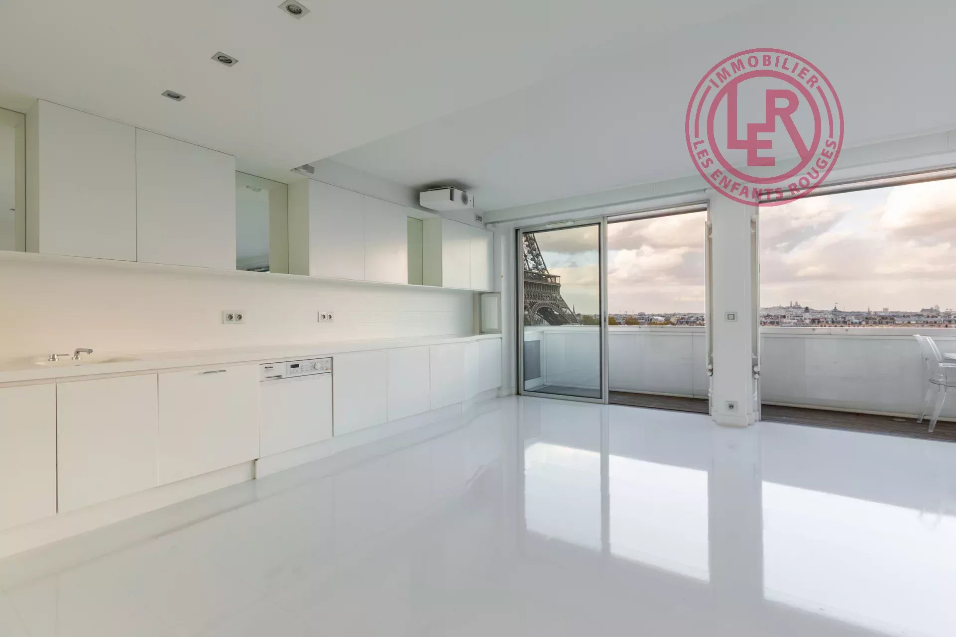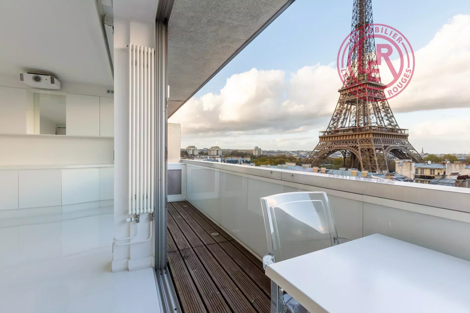 Exceptionnel et rare - Au 11ème étage, dans un immeuble de grand standing, appartement traversant rénové par architecte, d'une surface de 84m² loi Carrez avec 16m2 de balcons filant, composé d'un séjour baigné de lumière avec cuisine américaine aménagée, bénéficiant d'une Vue panoramique sur tous les MONUMENTS parisiens et Balcon Terrasse donnant sur la Tour Eiffel ainsi que le Trocadéro, le Sacré Cœur, le Grand Palais, l'Opéra Garnier, les Invalides, Notre Dame et le Panthéon, d'une chambre avec balcon également, vaste dressing sur mesure et salle de bains avec baignoire jacuzzi, et douche "Rainfall/Hammam/Sauna" Plan modulable permettant la création d'une seconde chambre ou bureau Appartement rénové par architecte, prestations haut de gamme alliant élément High Tech: Confort domotique, HiFi intégré, Home Cinéma, Climatisation, TV Satellite, et qualité des matériaux Immeuble sécurisé, avec gardien résident, aucun travaux à prévoir Une cave et un emplacement de parking (au 2e sous sol) complètent ce bien exceptionnel. Les informations sur les risques auxquels ce bien est exposé sont disponibles sur le site Géorisques : www.georisques.gouv.fr. Agent commercial immatriculée au Registre spécial des agents commerciaux du greffe du tribunal de commerce de PARIS, sous le numéro 483 083 077.